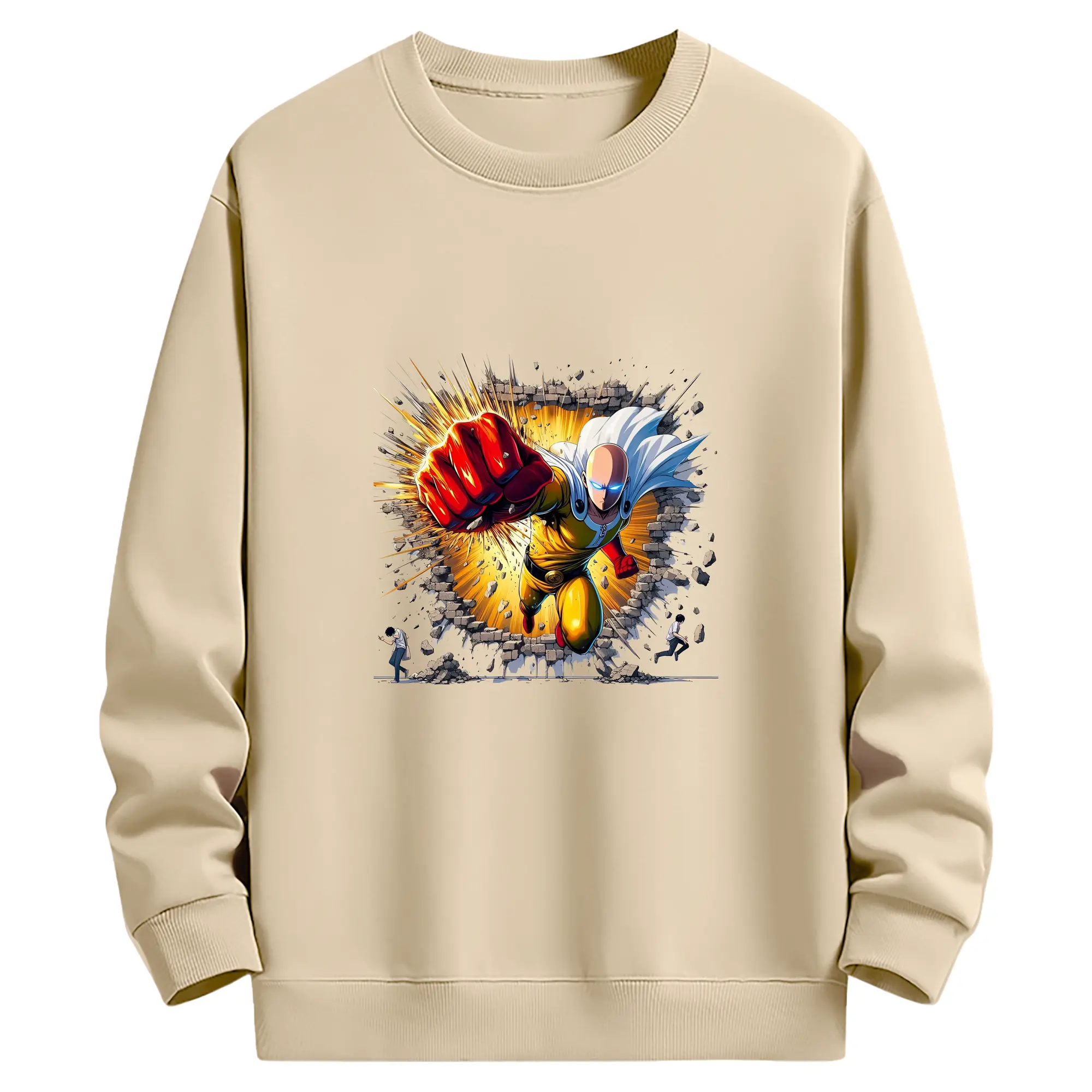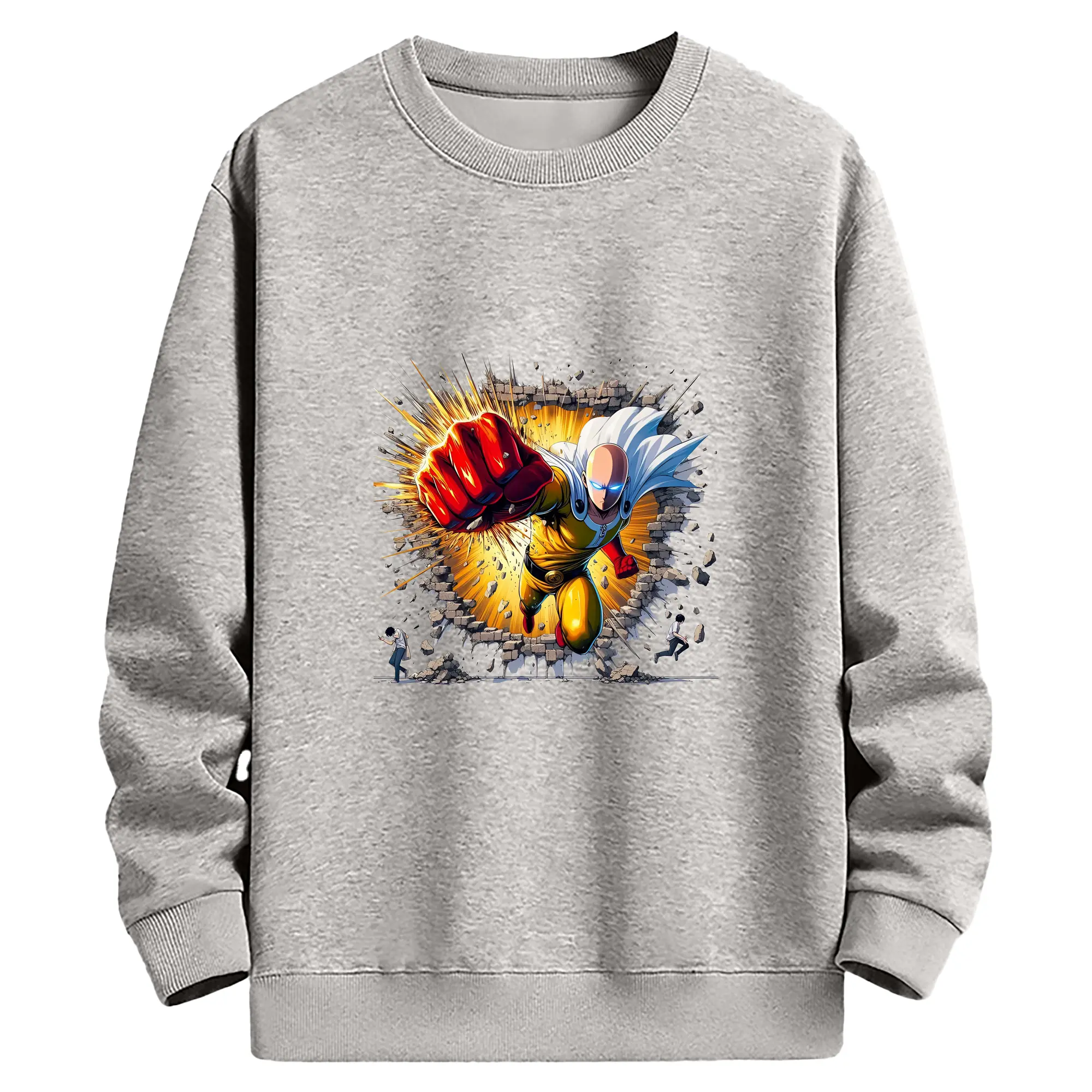 ワンパンマン グッズ サイタマ - 薄手 クルーネック スウェット 裏毛260g · ポリエステル 春秋向け カジュアル 男女兼用 · トレーナー デイリー スポーツ 散歩に最適