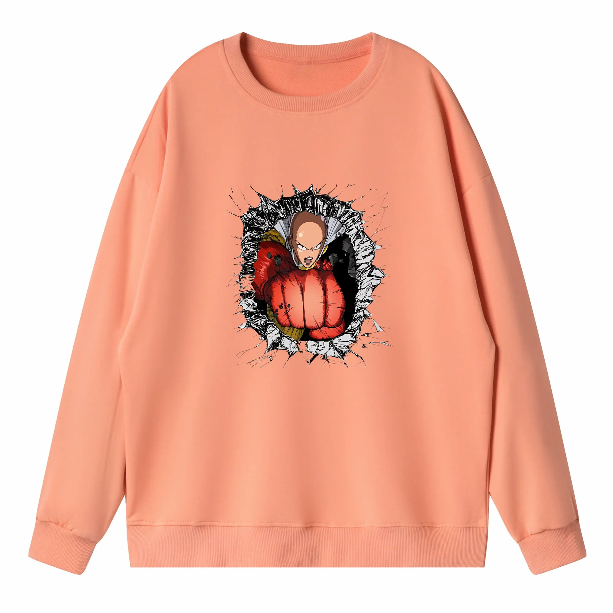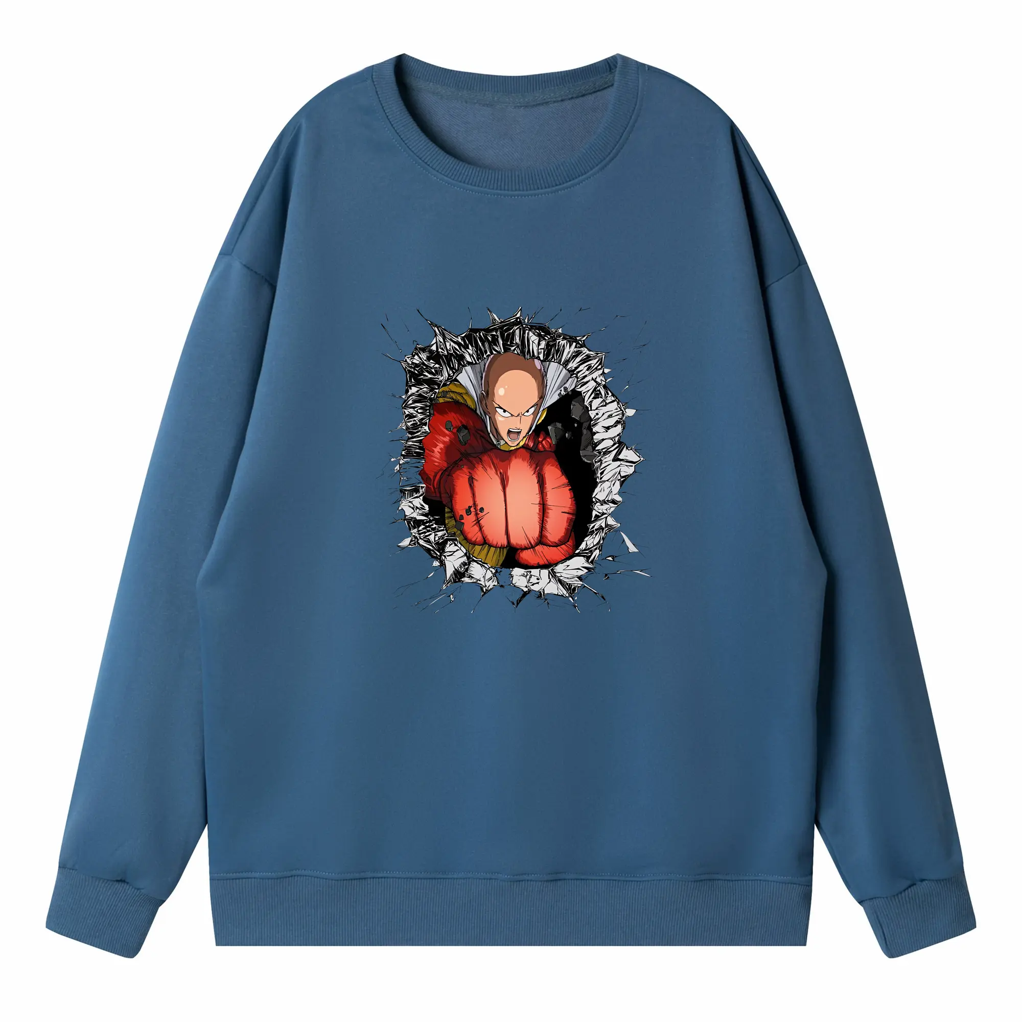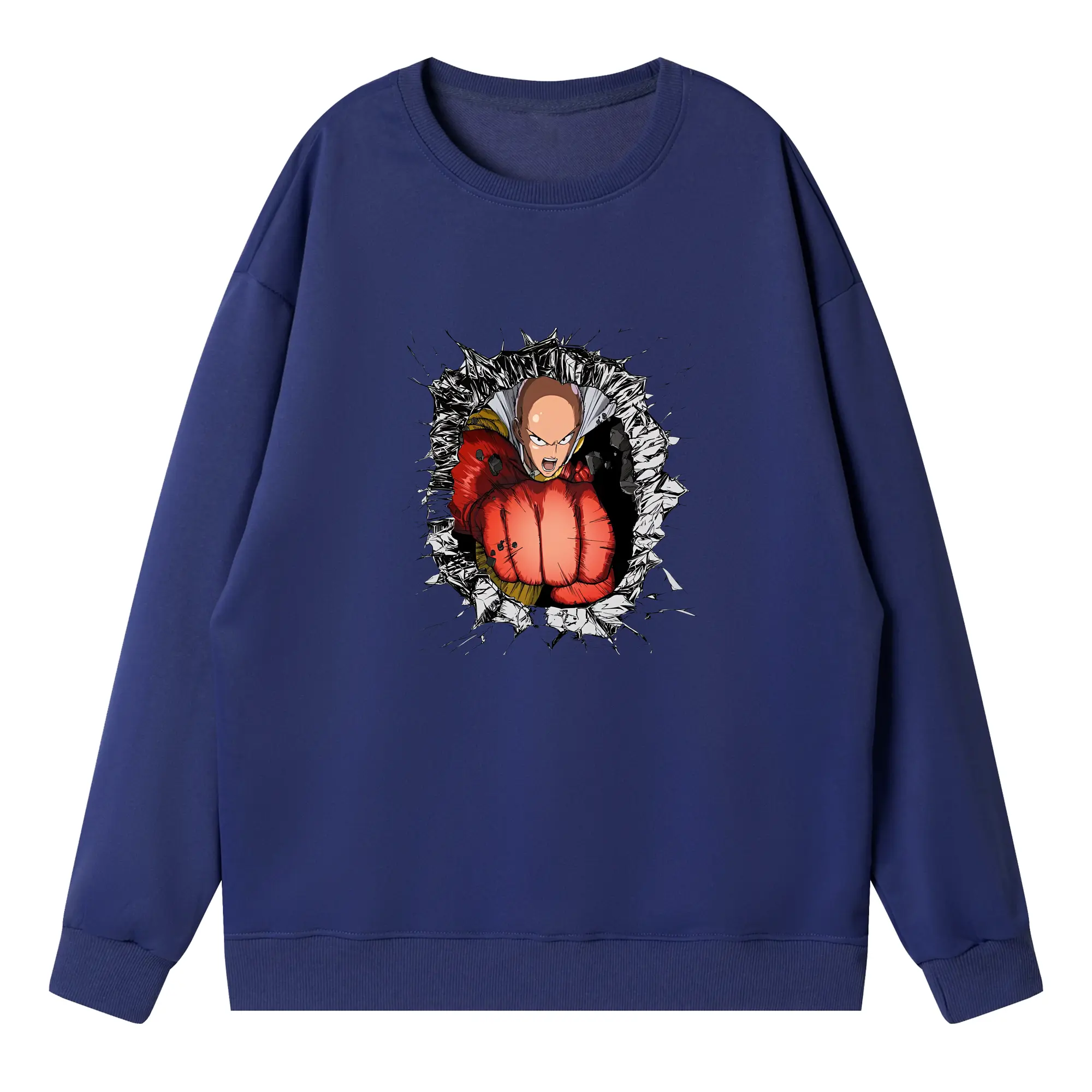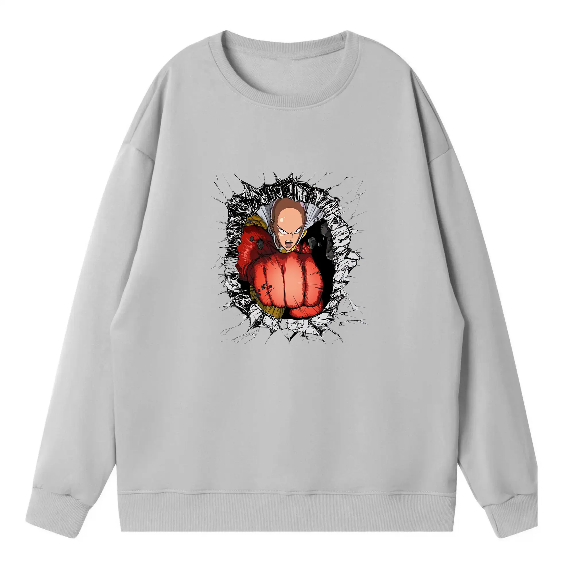 ワンパンマン グッズ サイタマ - 高品質 クルーネック スウェット ・ コットン59% ポリエステル41% ・ ユニセックス 長袖 トレーナー ・ カジュアル デイリー スポーツ 散歩用