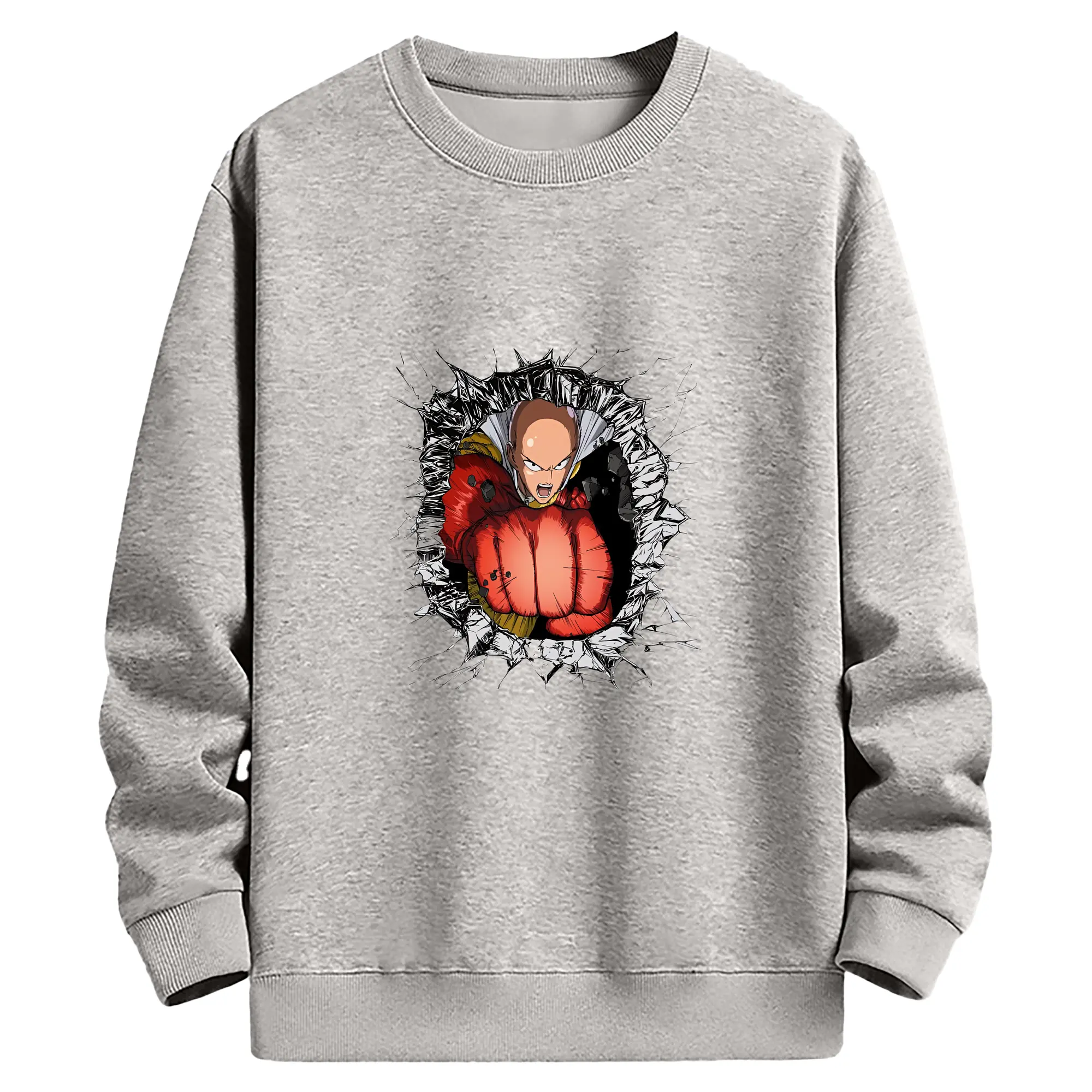 ワンパンマン グッズ サイタマ - 高品質 クルーネック スウェット ・ コットン59% ポリエステル41% ・ ユニセックス 長袖 トレーナー ・ カジュアル デイリー スポーツ 散歩用