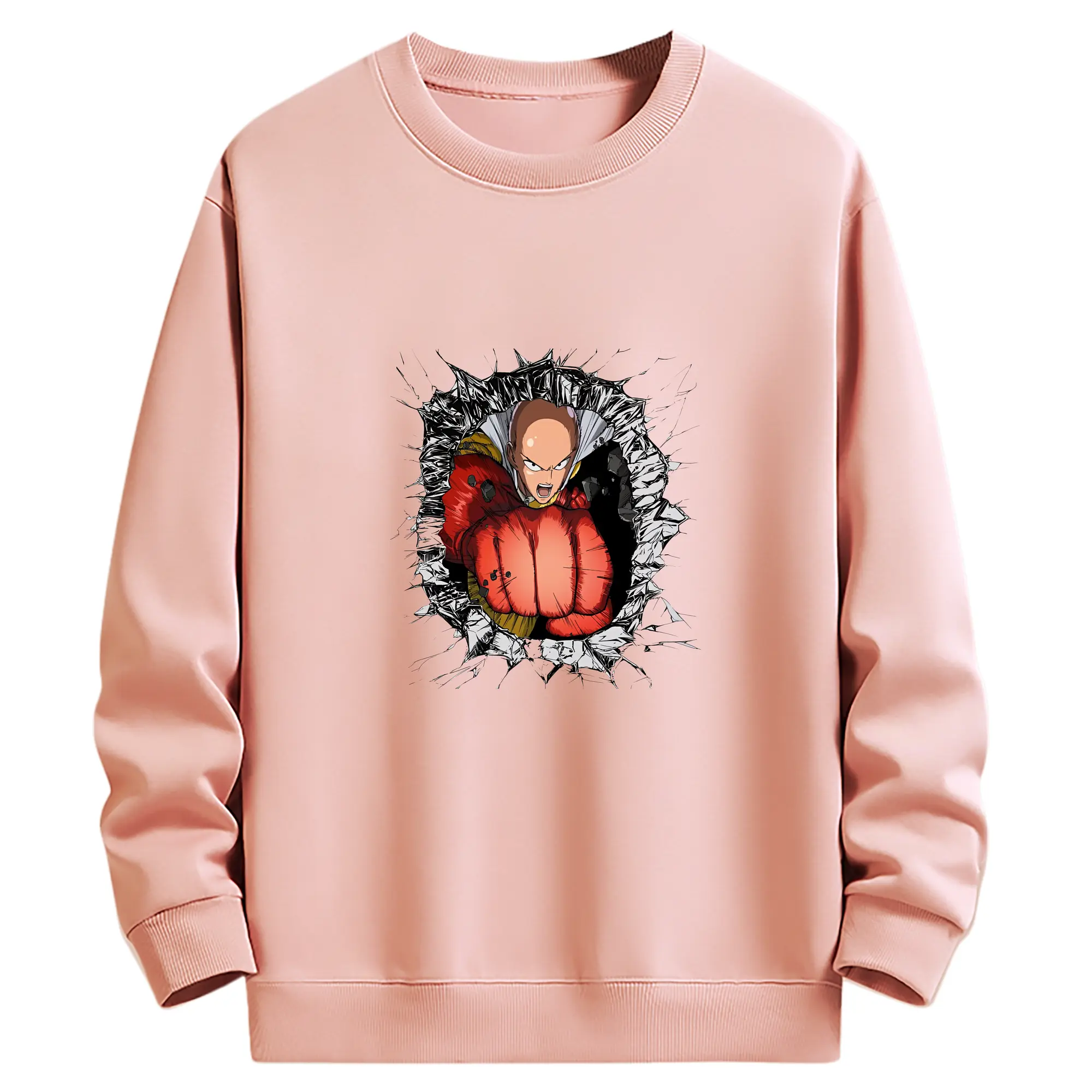 ワンパンマン グッズ サイタマ - 薄手 クルーネック スウェット 裏毛260g · ポリエステル 春秋向け カジュアル 男女兼用 · トレーナー デイリー スポーツ 散歩に最適