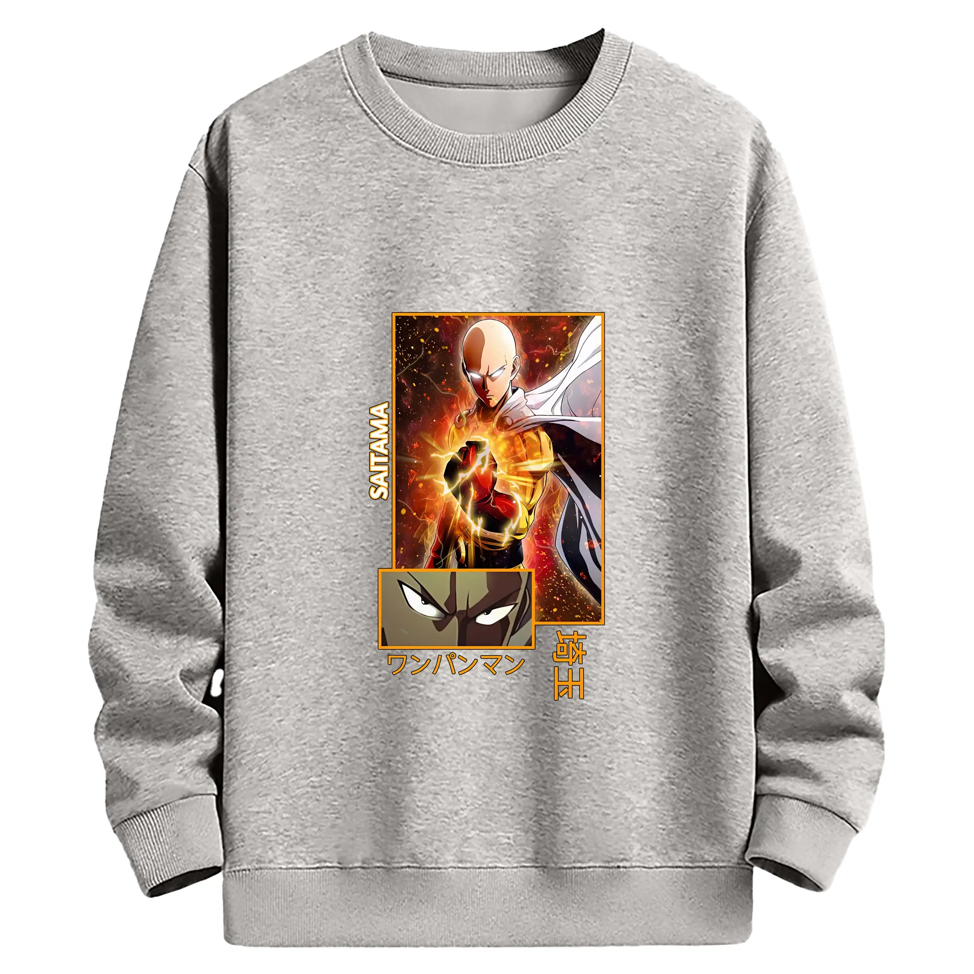 ワンパンマン グッズ サイタマ - 薄手 クルーネック スウェット 裏毛260g · ポリエステル 春秋向け カジュアル 男女兼用 · トレーナー デイリー スポーツ 散歩に最適