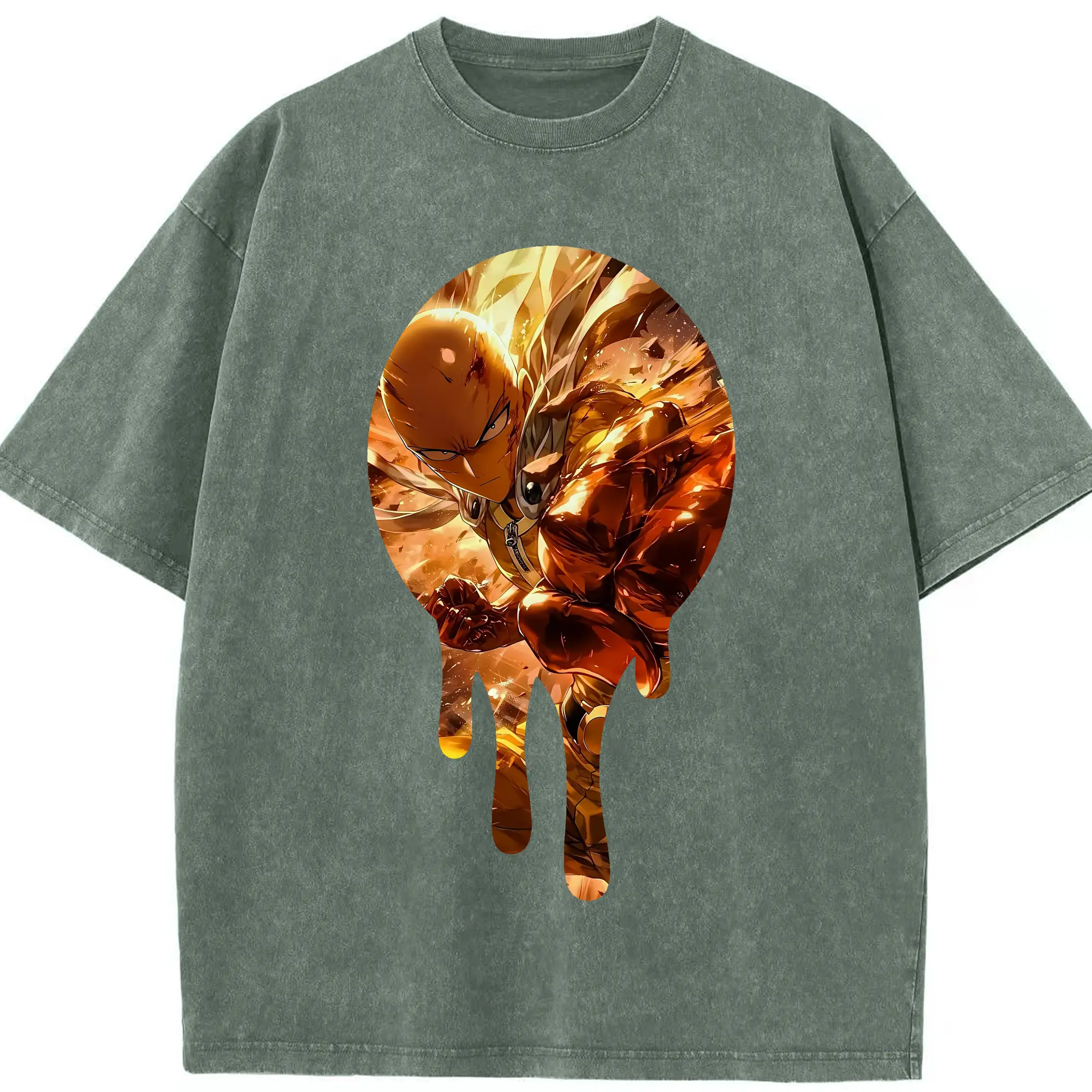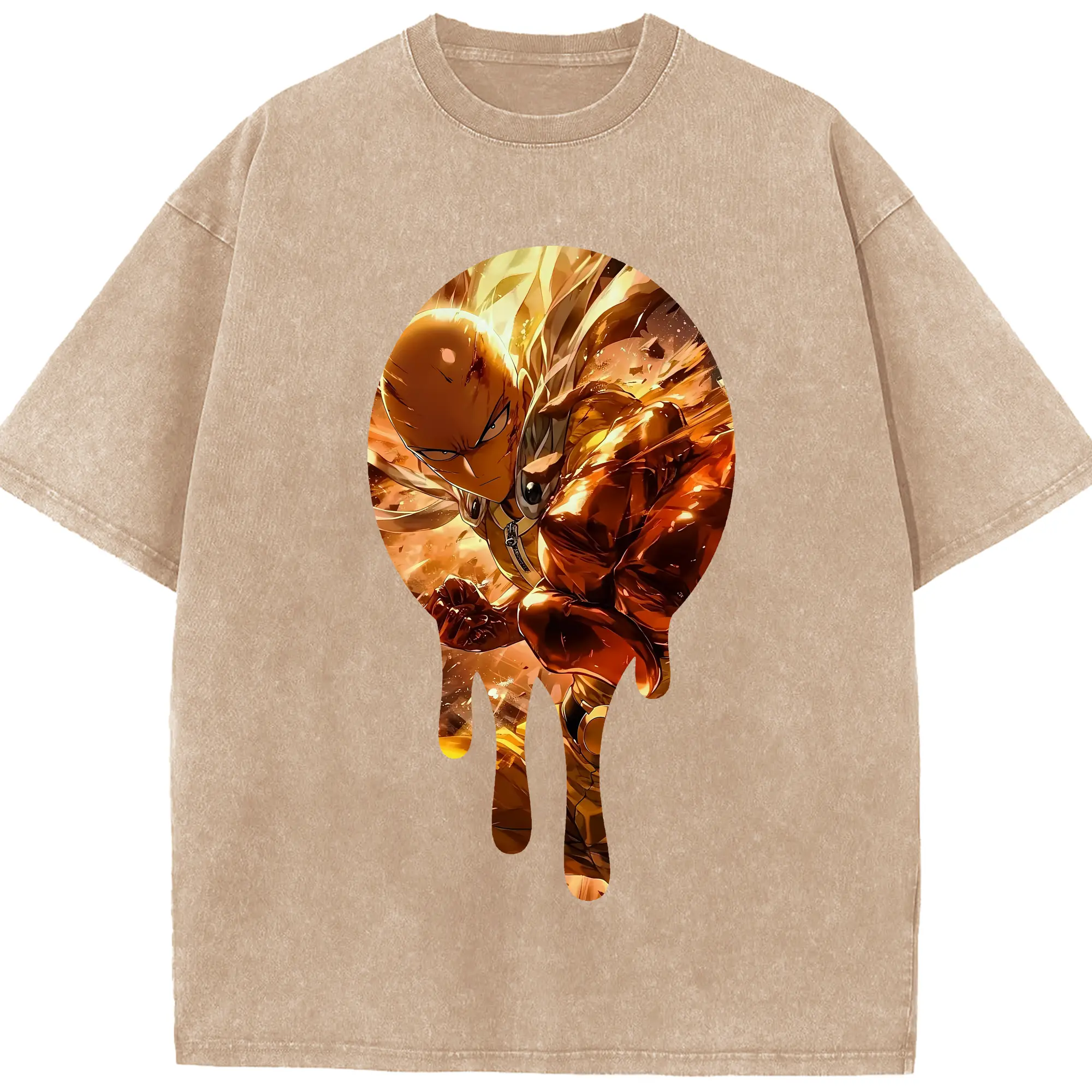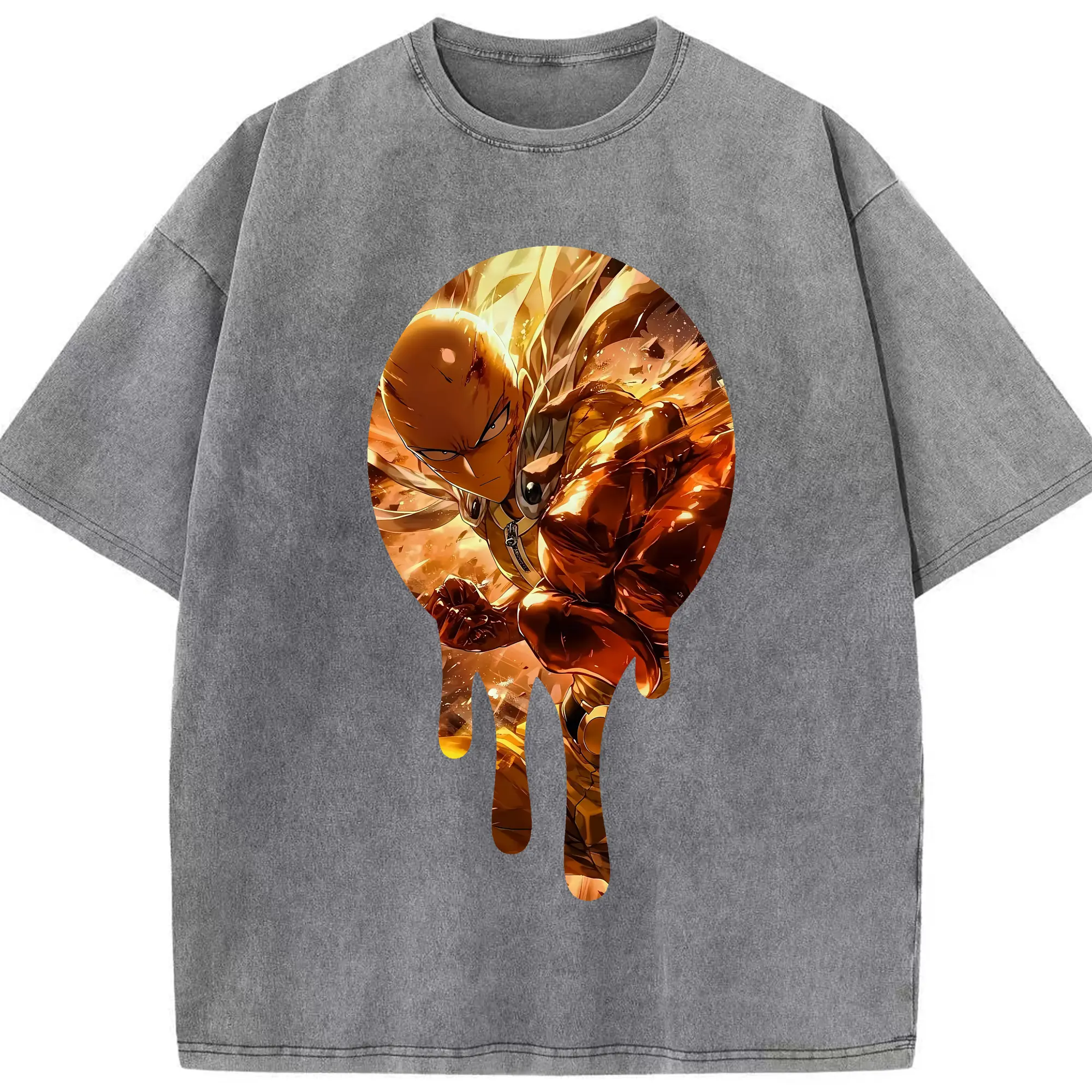 ワンパンマン グッズ サイタマ - 綿100% ヴィンテージ風 半袖Tシャツ ・ 背面プリント ・ 柔らか肌触り ・ 通気性 快適 ・ スポーツ カジュアル 外出用