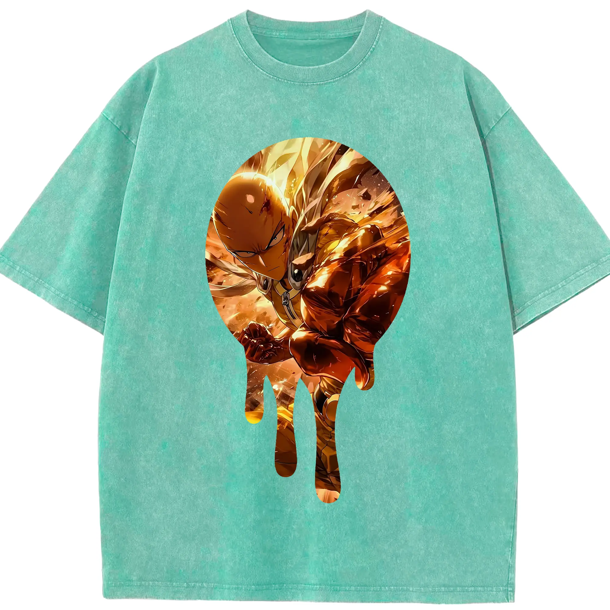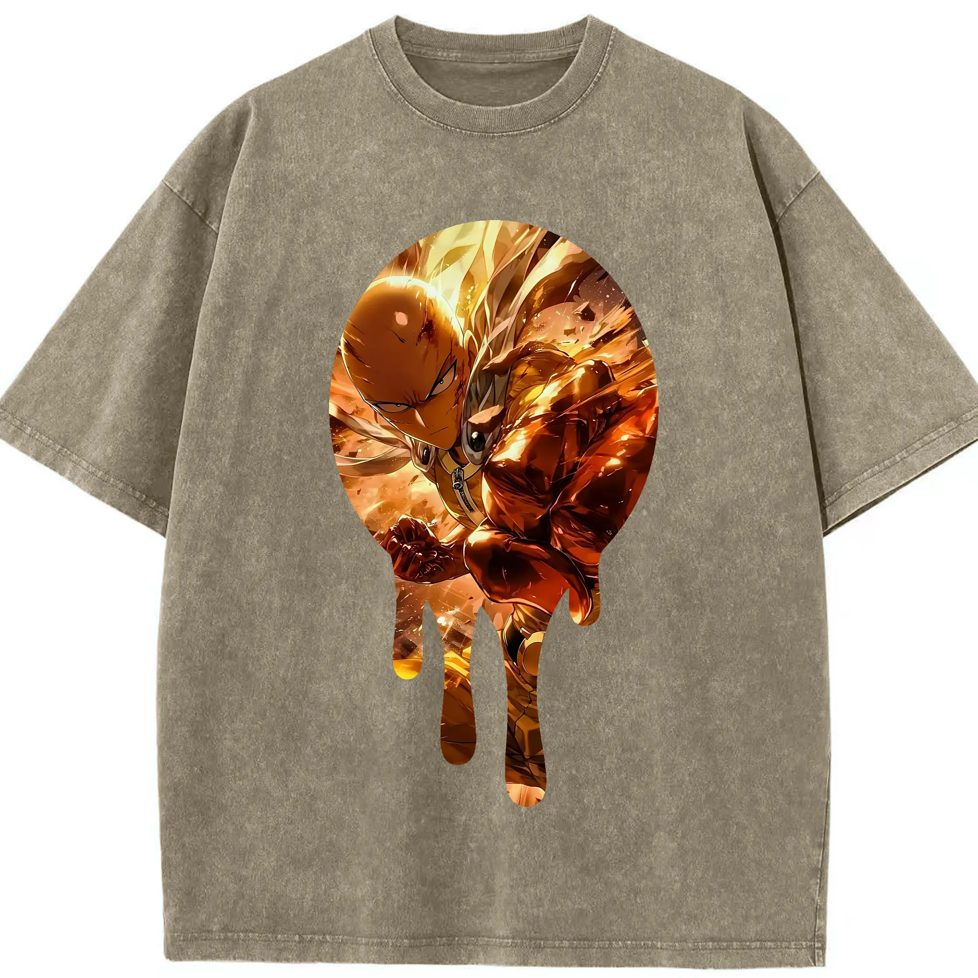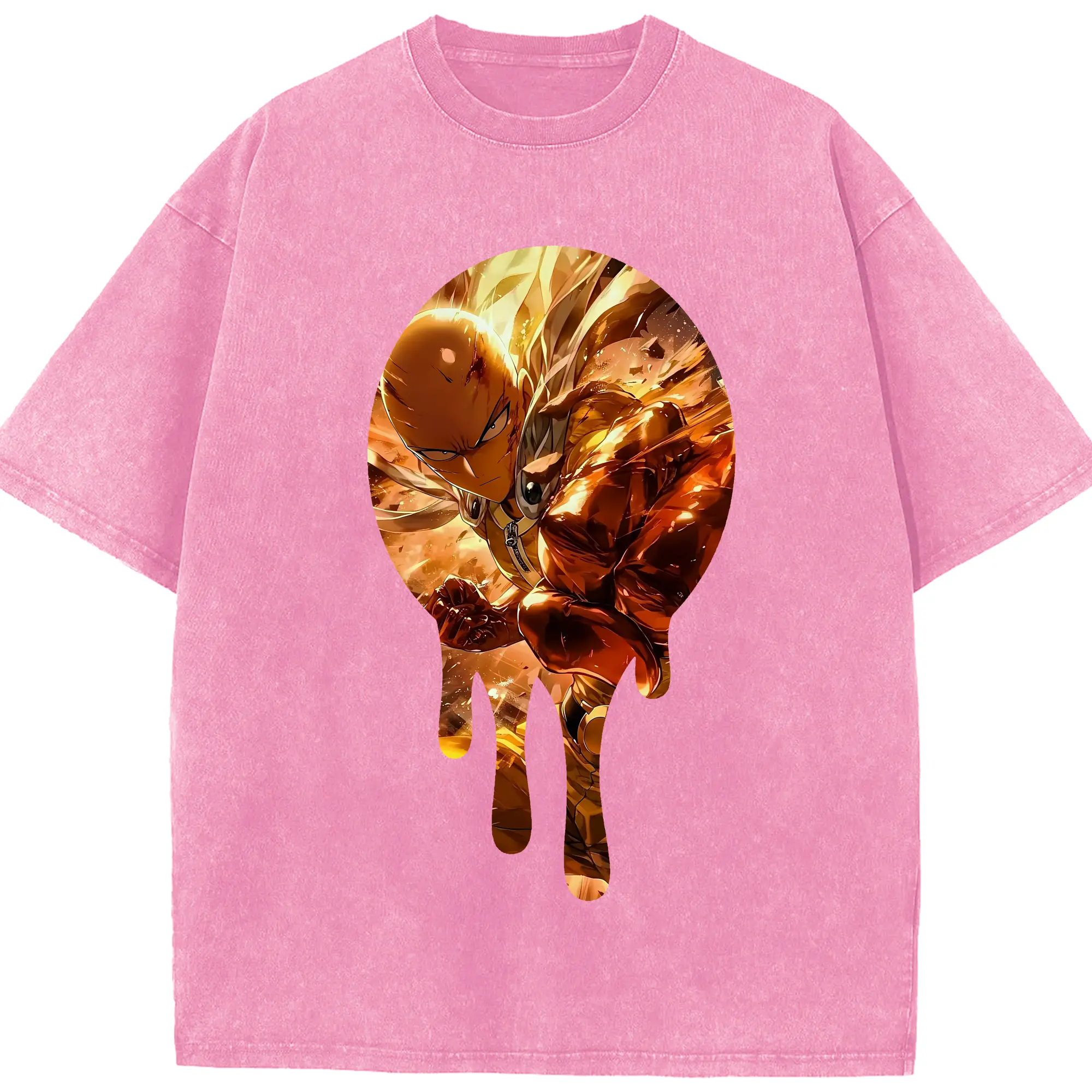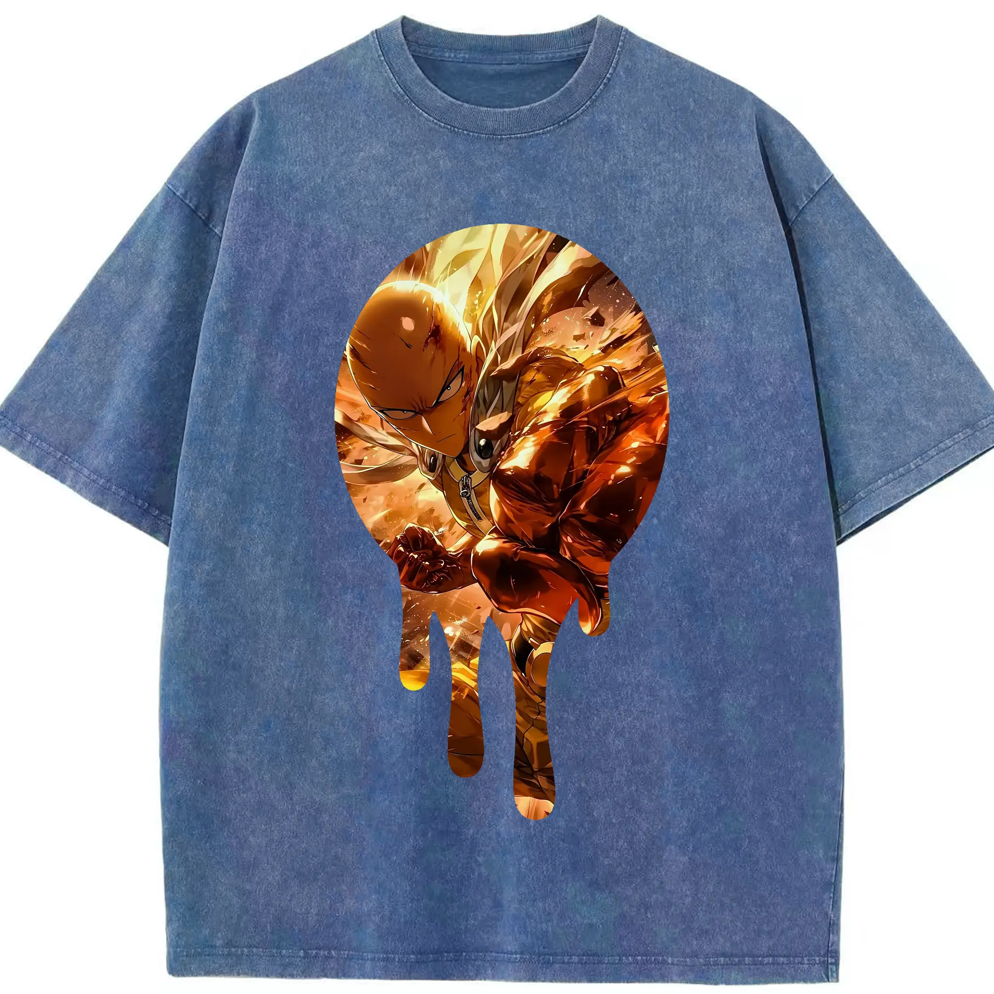 ワンパンマン グッズ サイタマ - 綿100% ヴィンテージ風 半袖Tシャツ ・ 背面プリント ・ 柔らか肌触り ・ 通気性 快適 ・ スポーツ カジュアル 外出用
