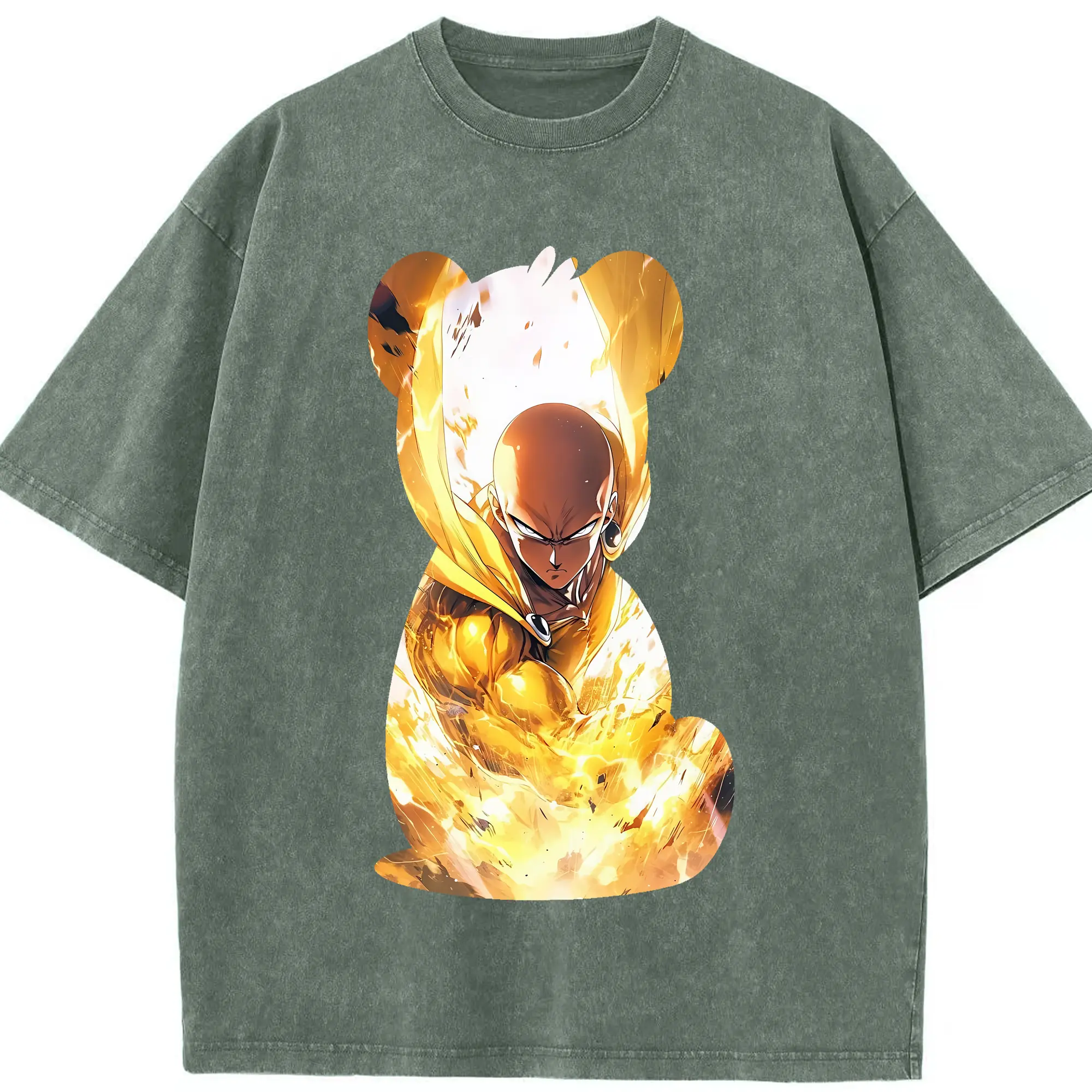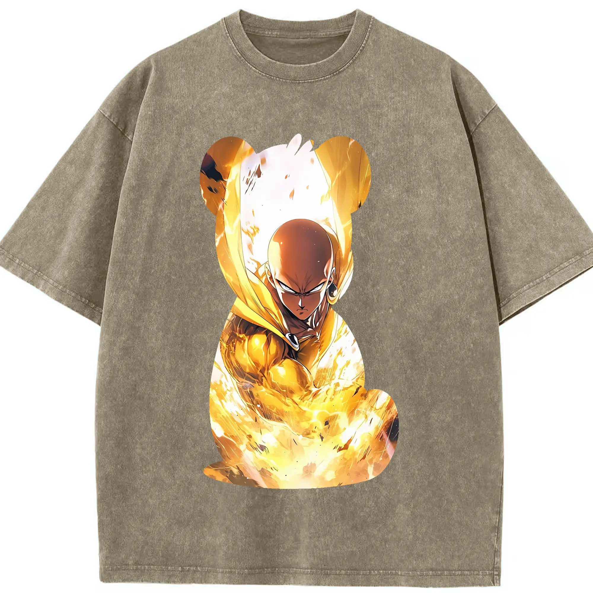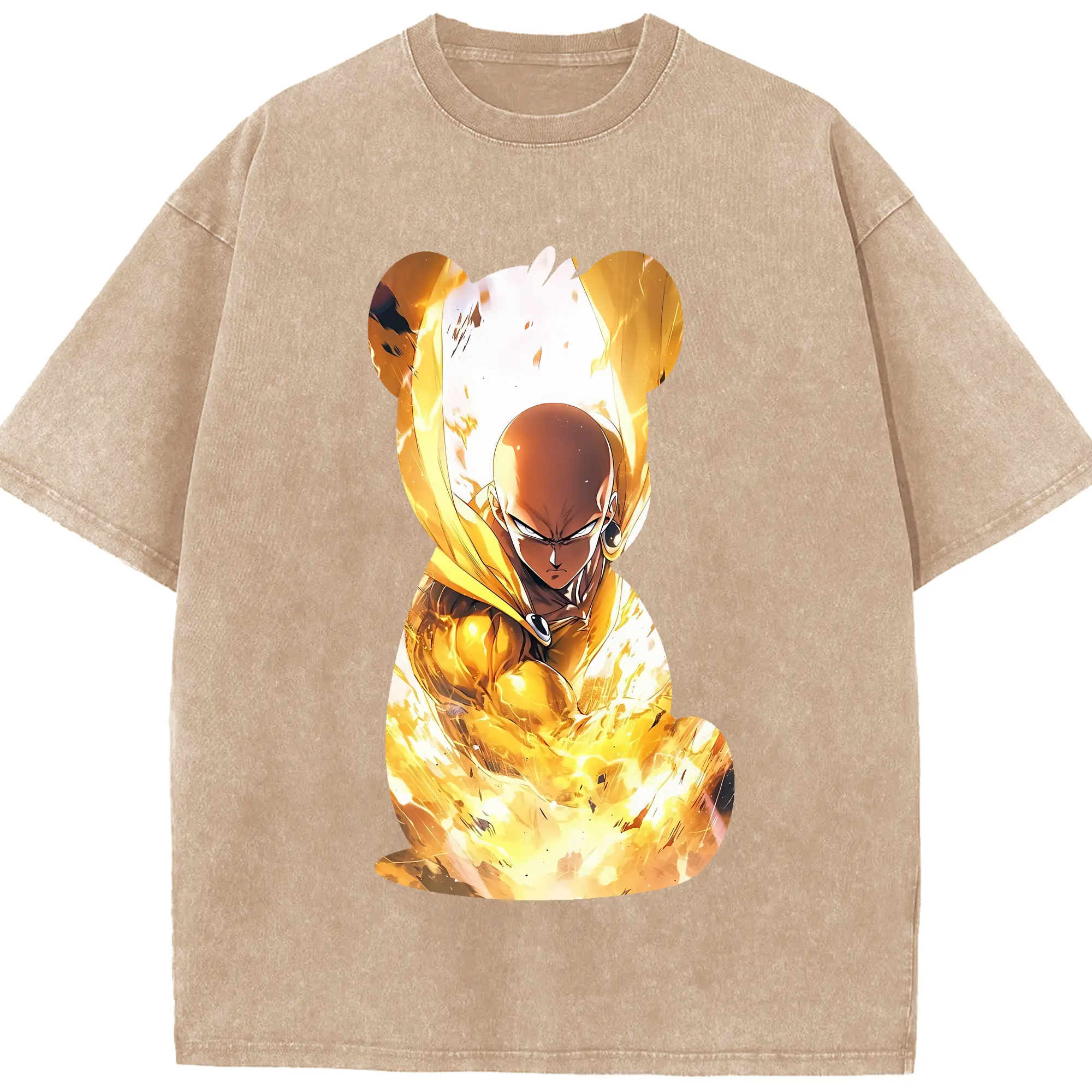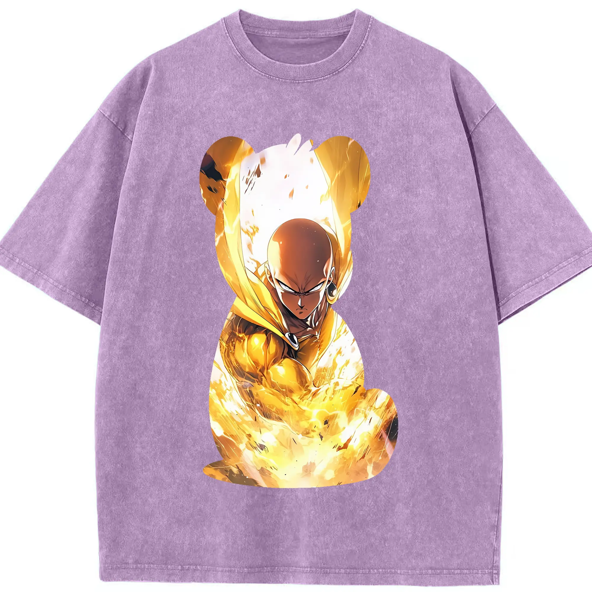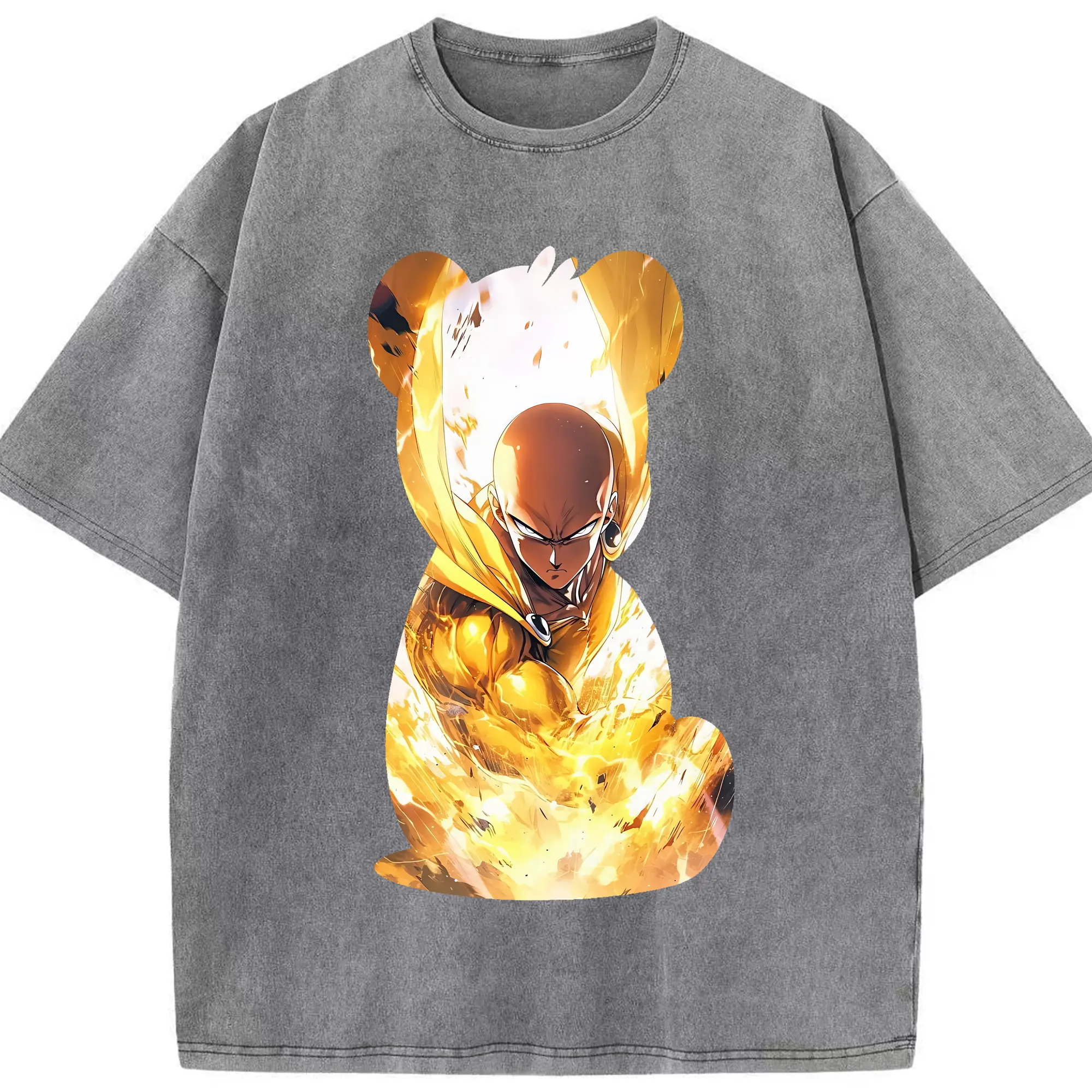 ワンパンマン グッズ サイタマ - 綿100% ヴィンテージ風 半袖Tシャツ ・ フロントプリント ・ 柔らか肌触り ・ 通気性 快適 ・ スポーツ カジュアル 外出用
