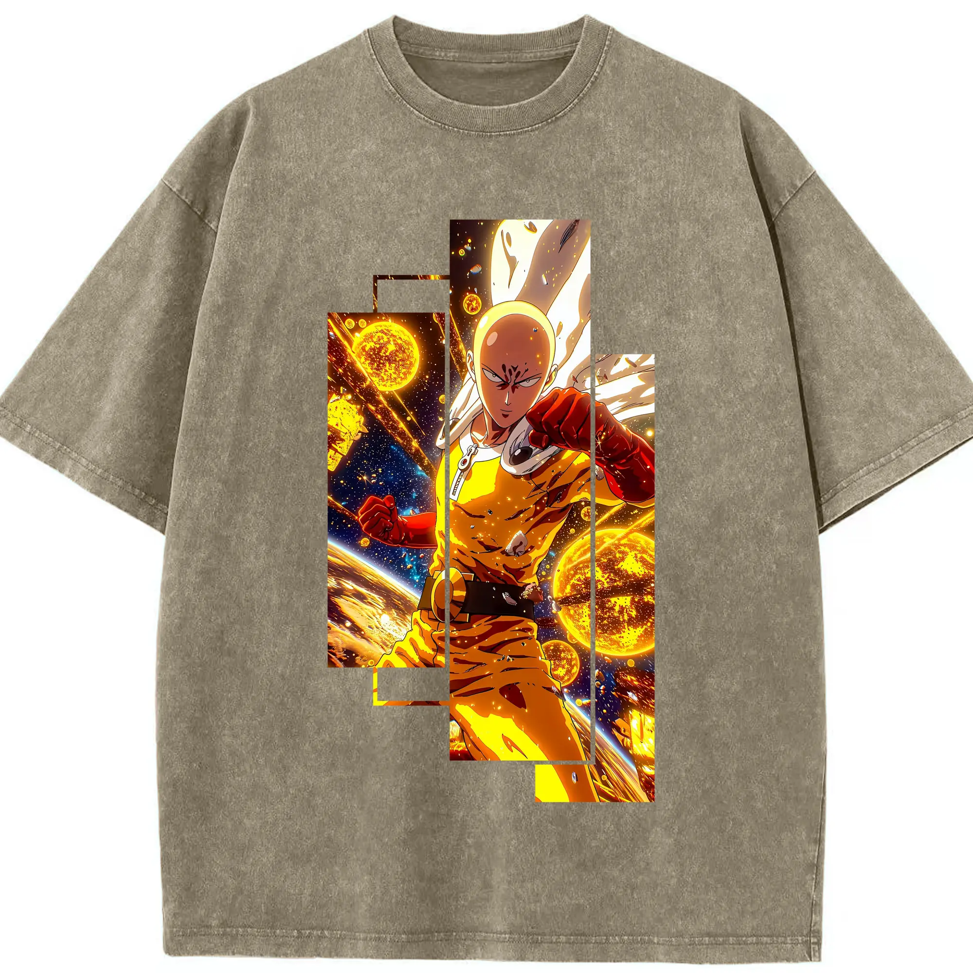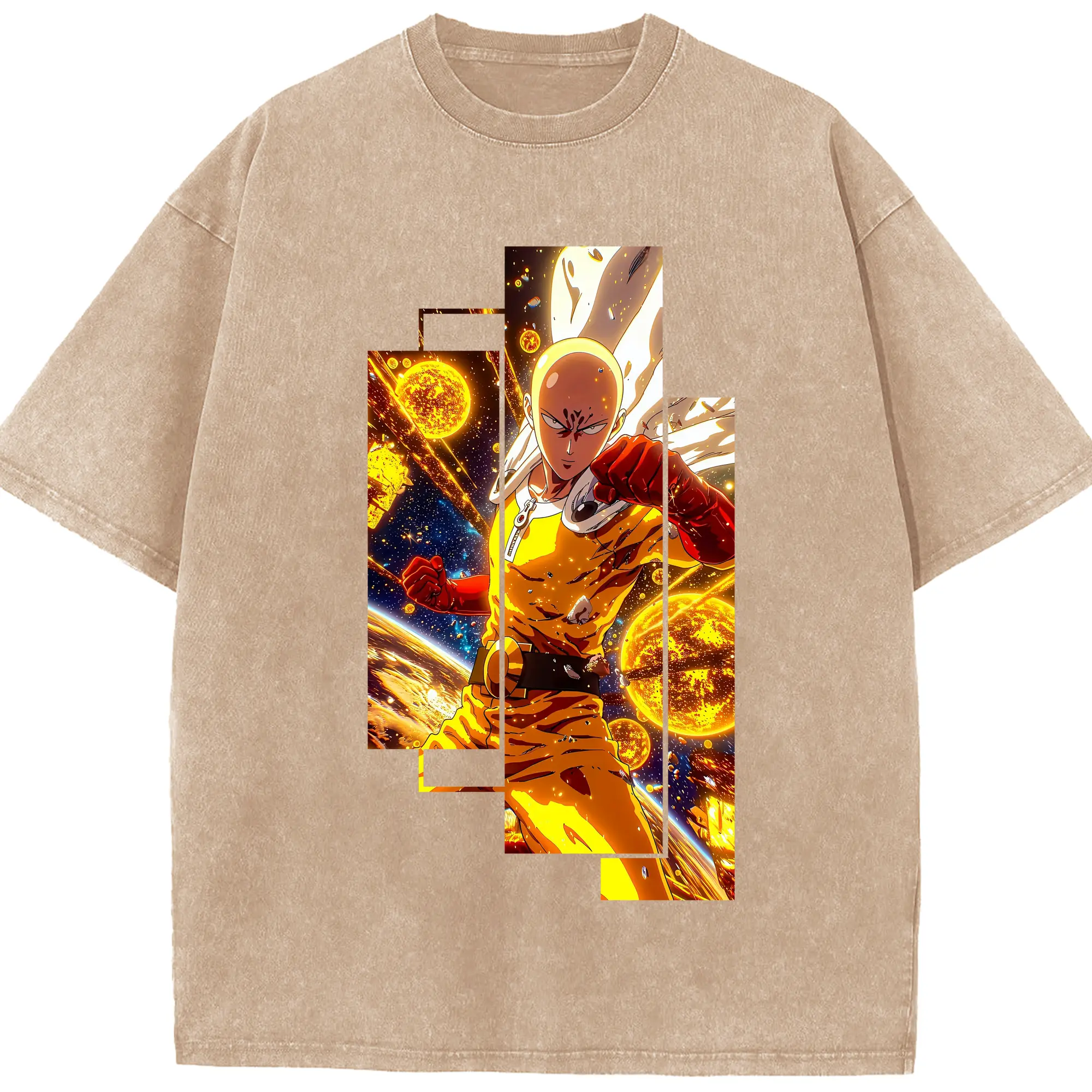 ワンパンマン グッズ サイタマ - 綿100% ヴィンテージ風 半袖Tシャツ ・ 背面プリント ・ 柔らか肌触り ・ 通気性 快適 ・ スポーツ カジュアル 外出用