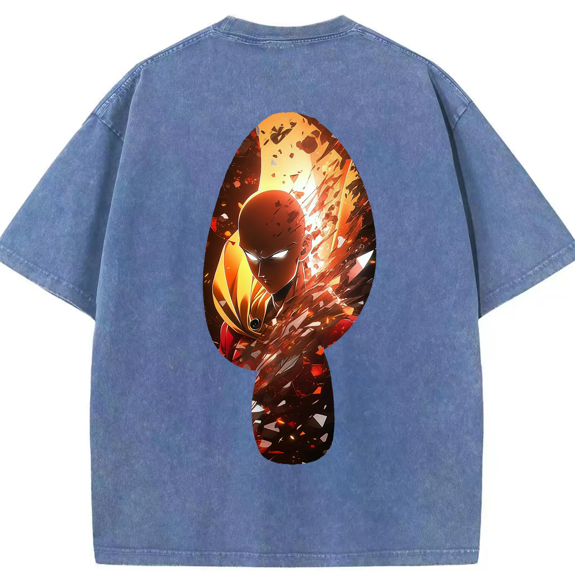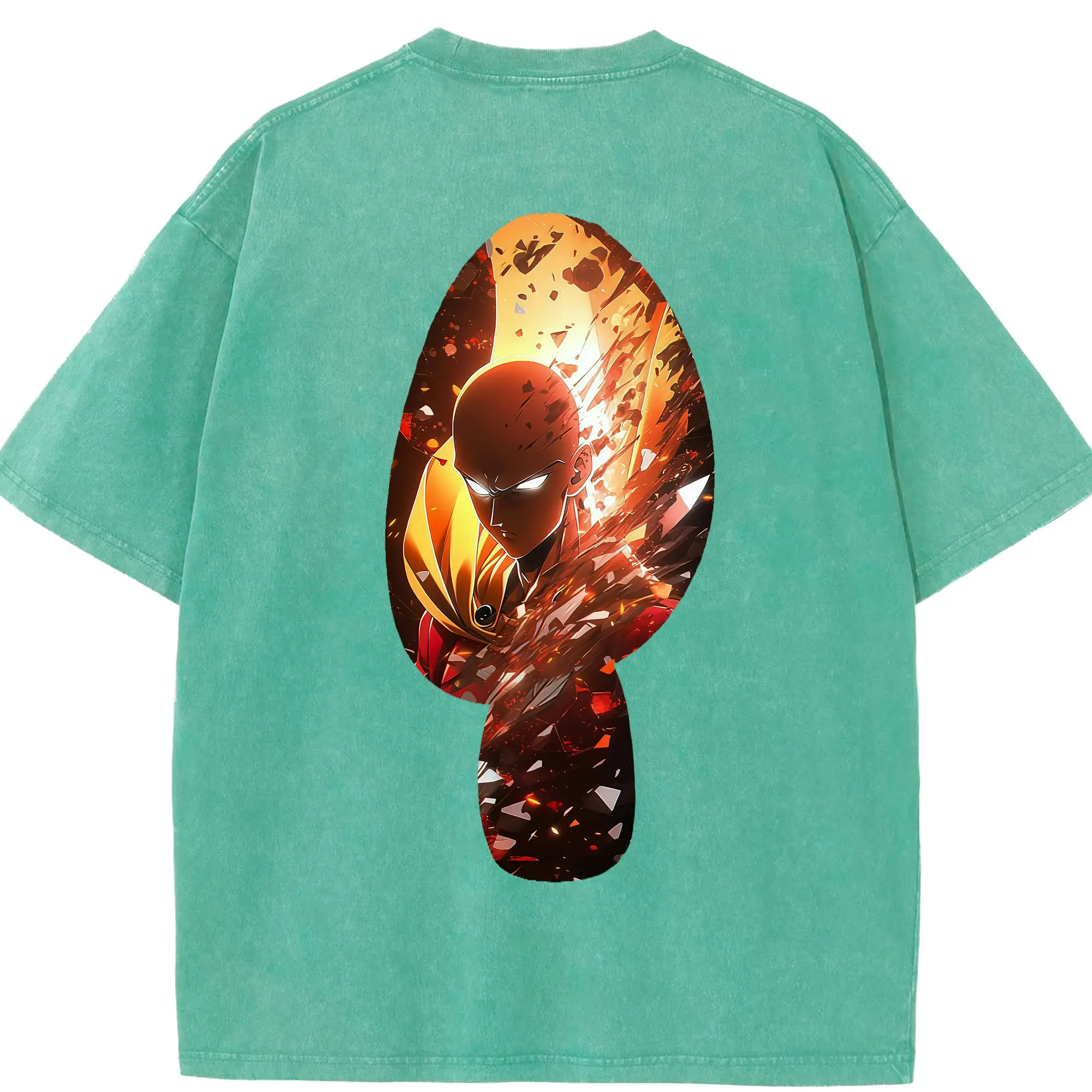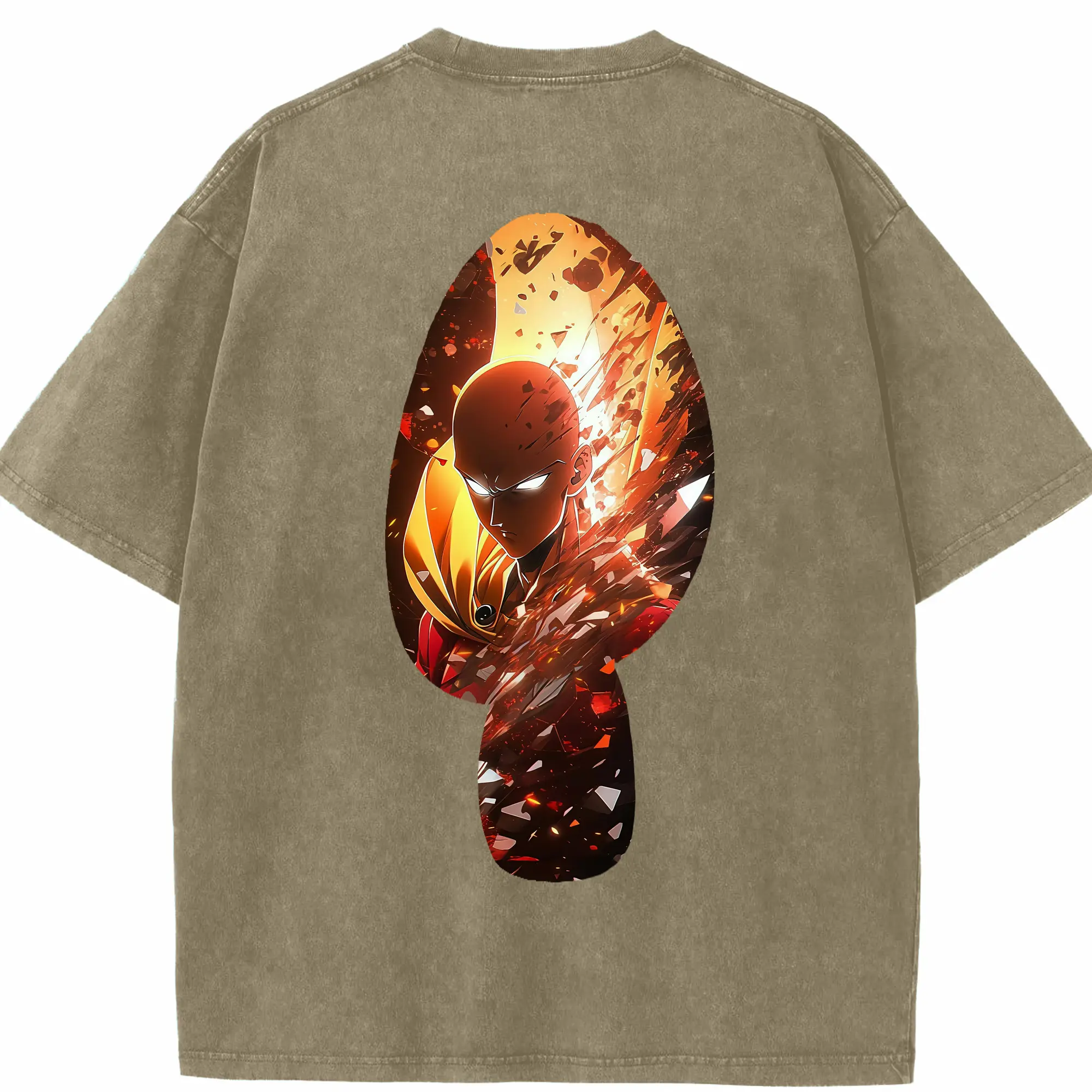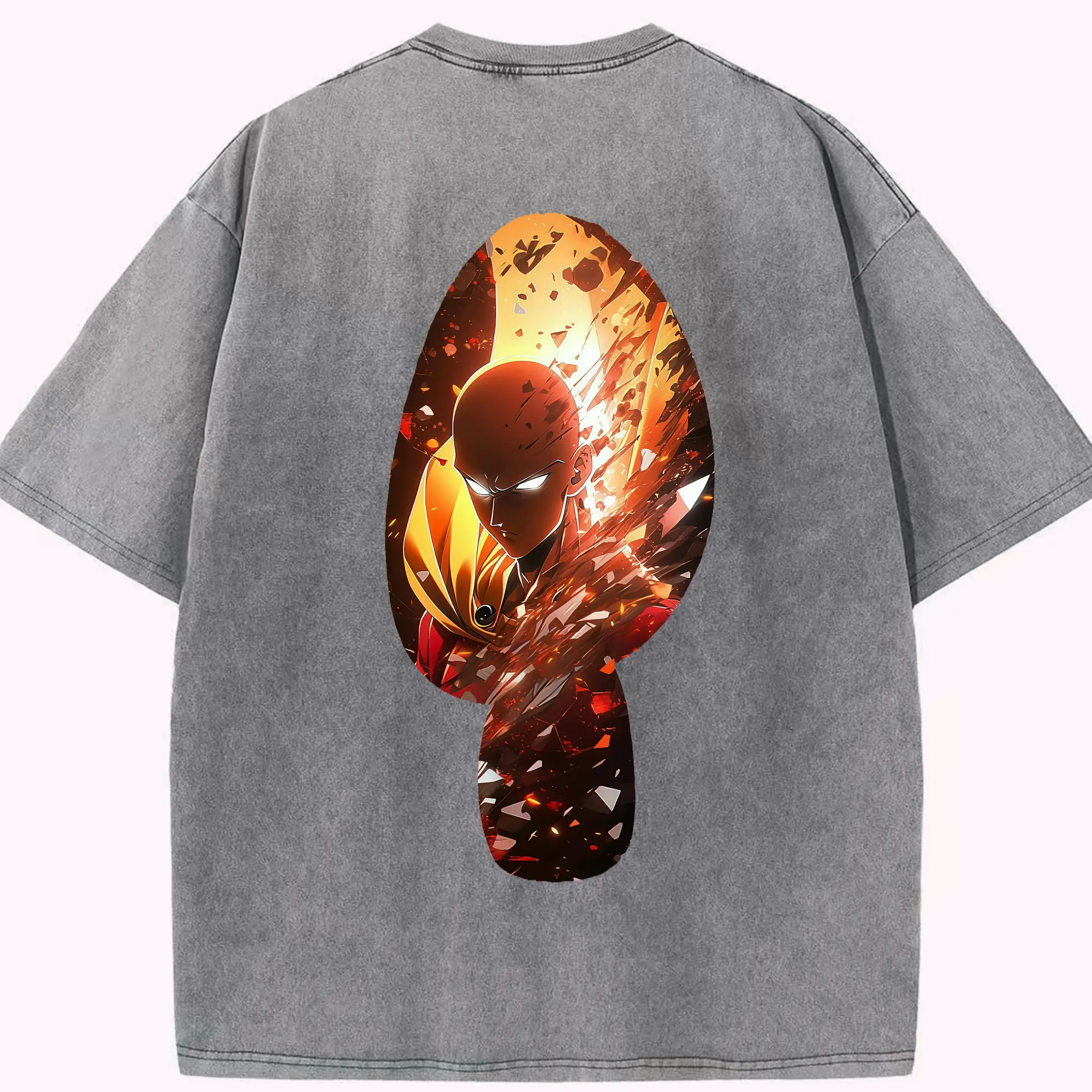 ワンパンマン グッズ サイタマ - 綿100% ヴィンテージ風 半袖Tシャツ ・ フロントプリント ・ 柔らか肌触り ・ 通気性 快適 ・ スポーツ カジュアル 外出用