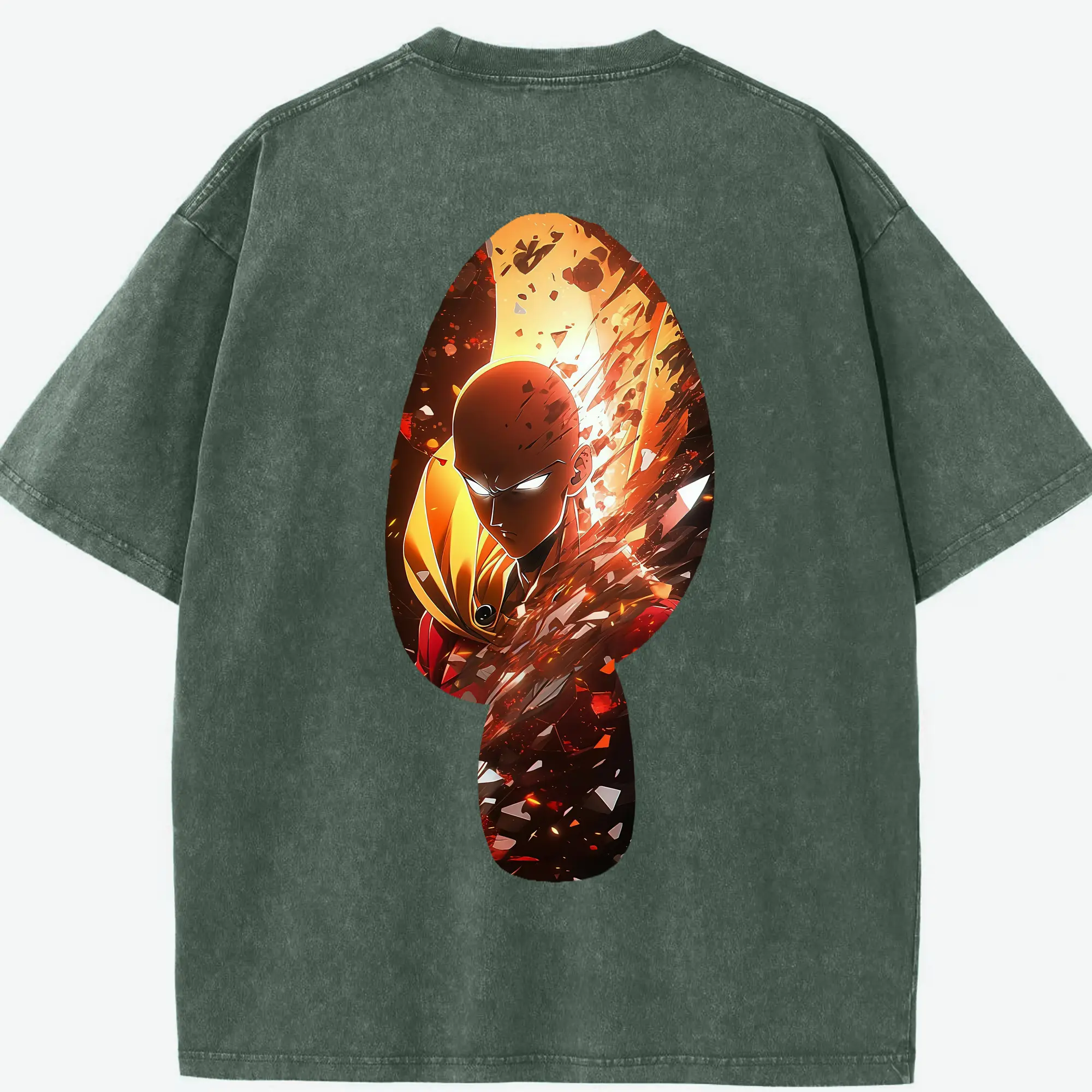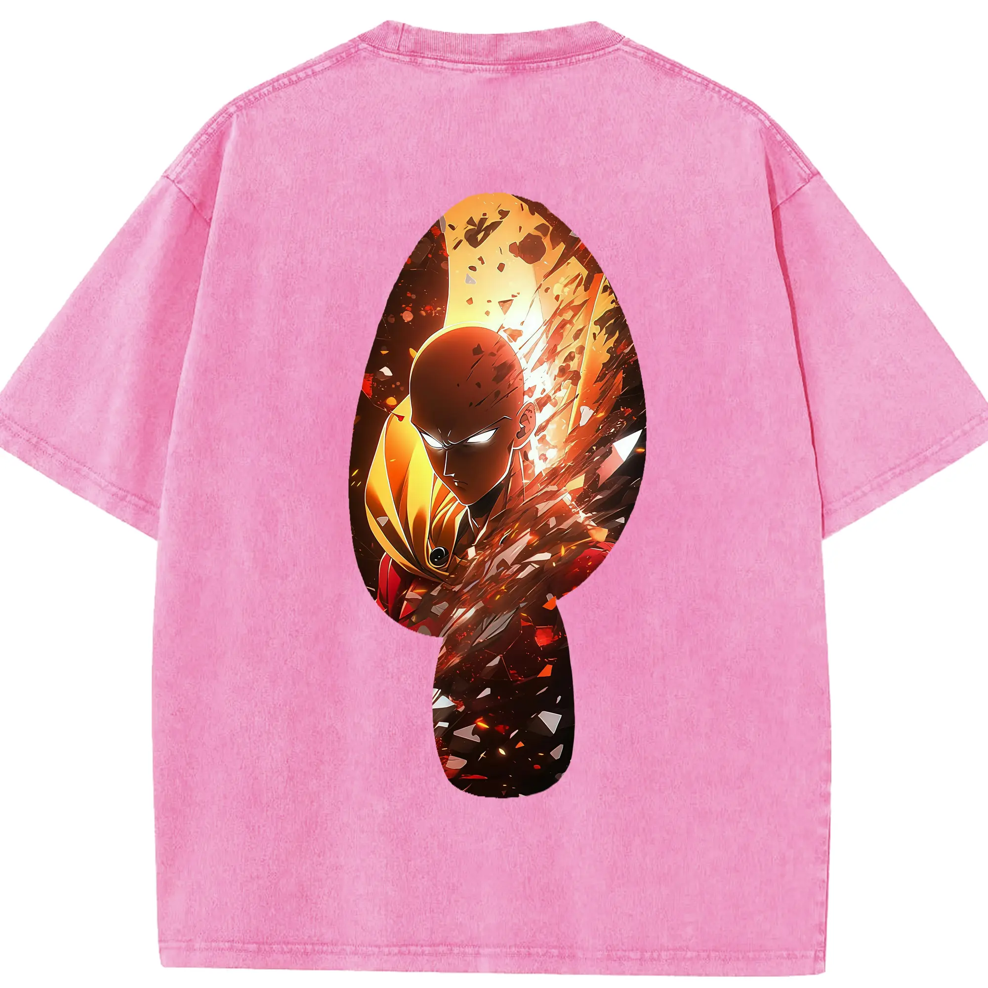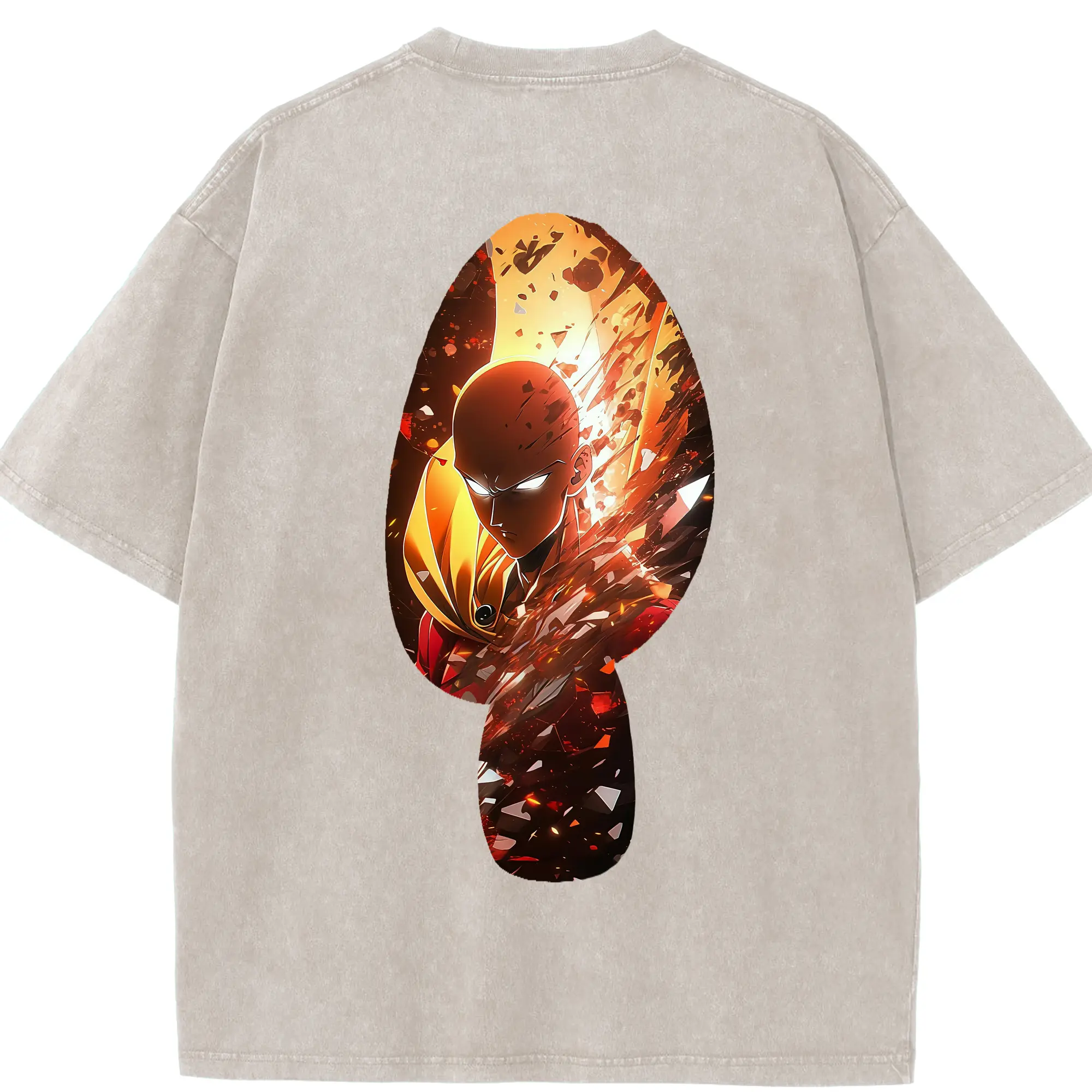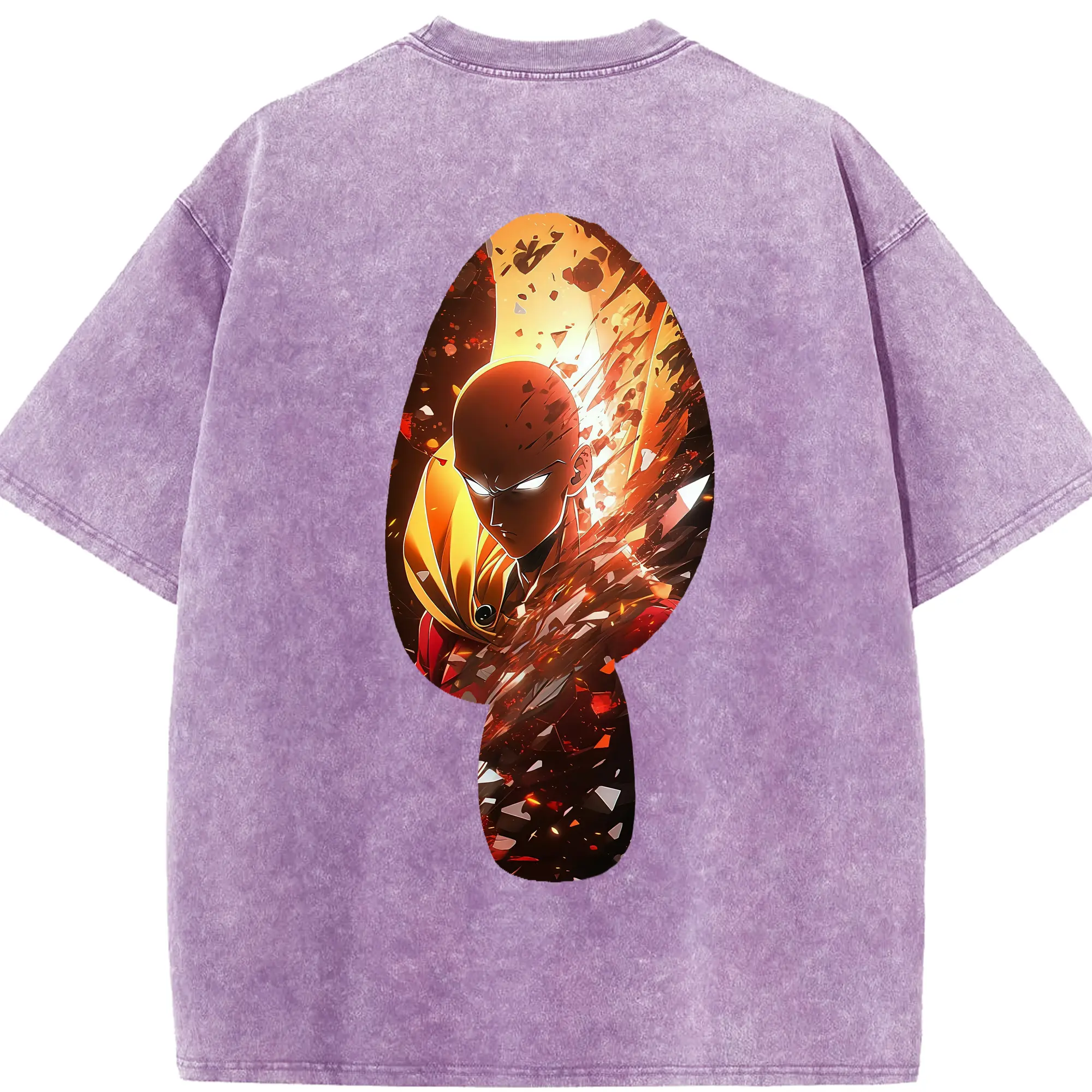 ワンパンマン グッズ サイタマ - 綿100% ヴィンテージ風 半袖Tシャツ ・ フロントプリント ・ 柔らか肌触り ・ 通気性 快適 ・ スポーツ カジュアル 外出用