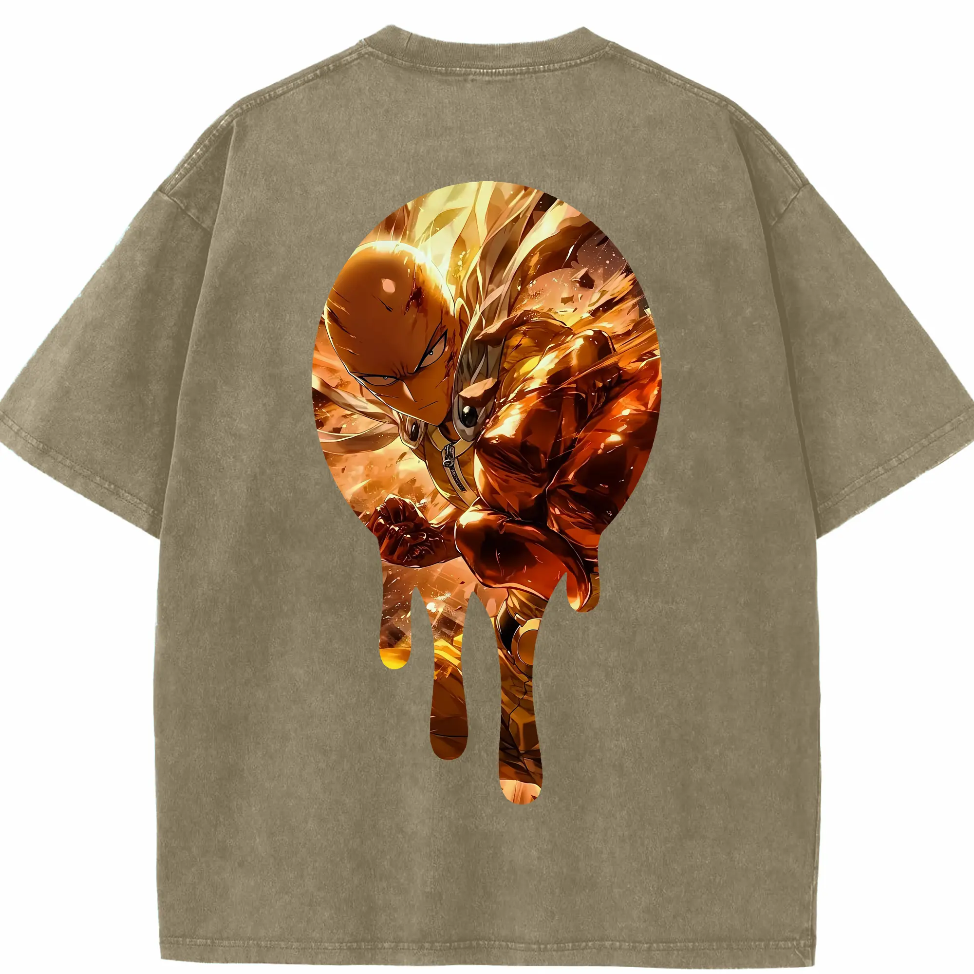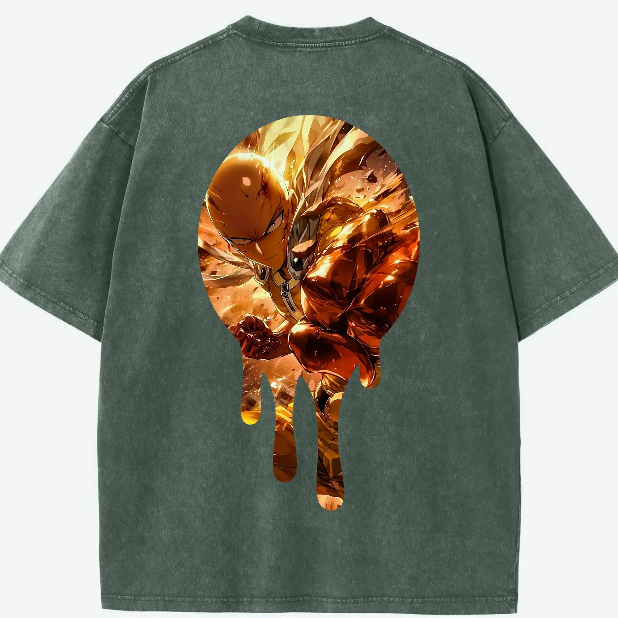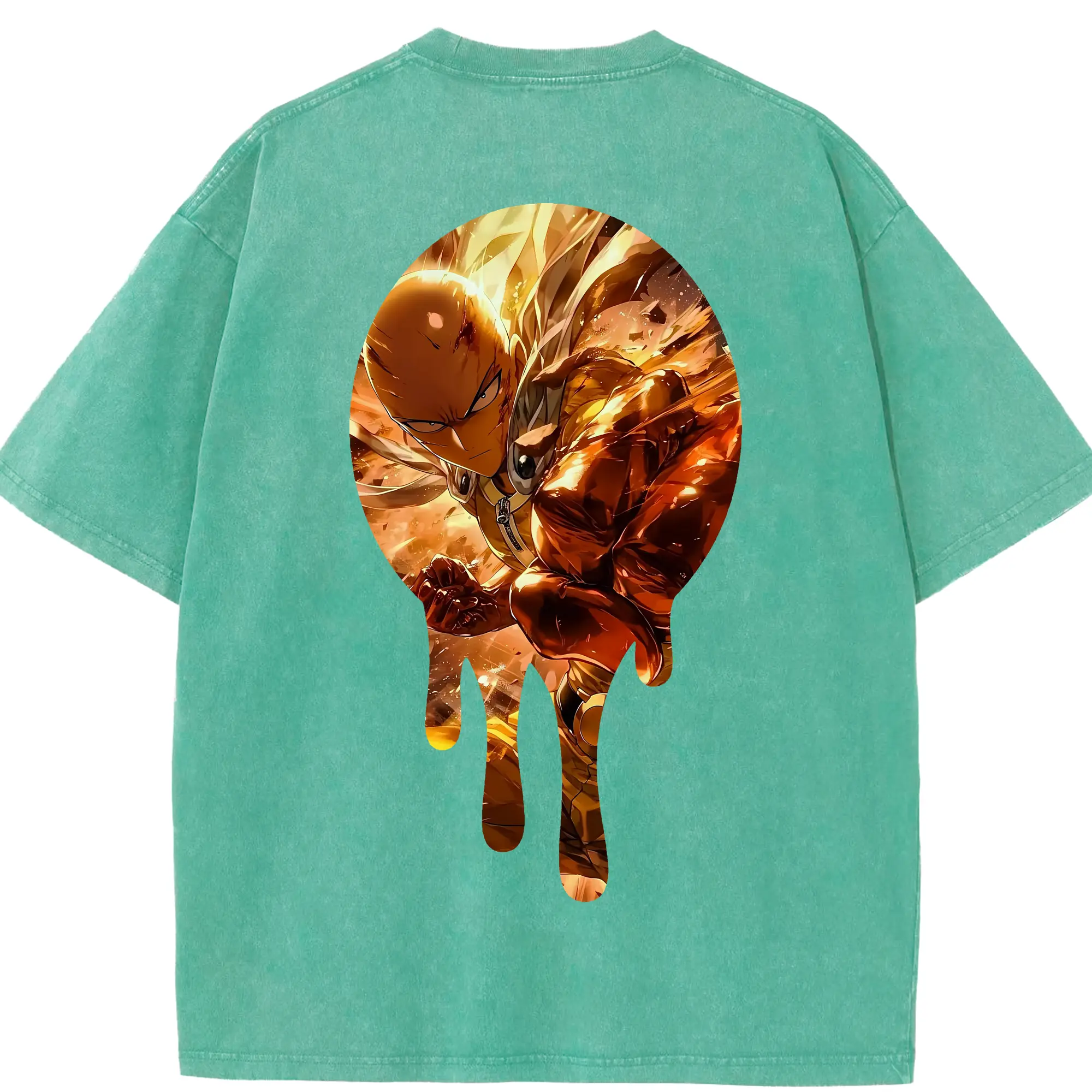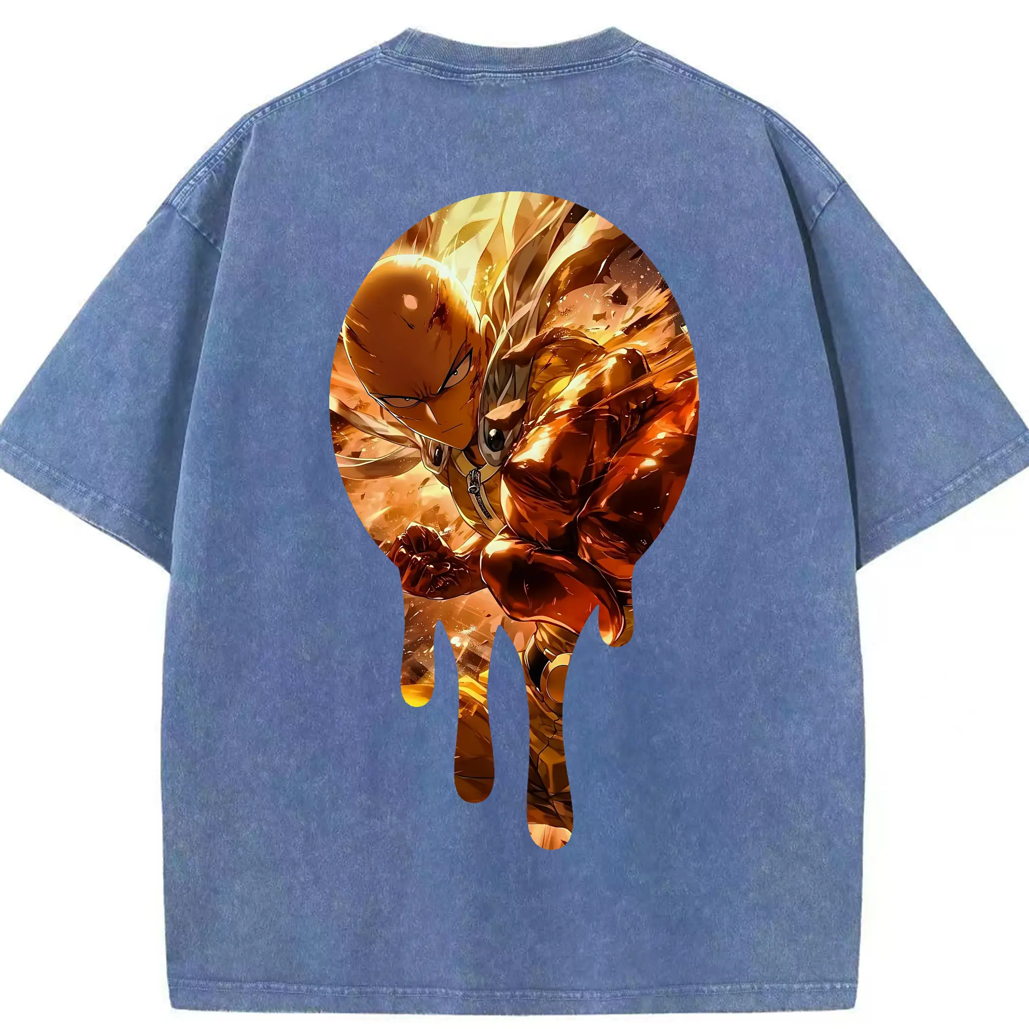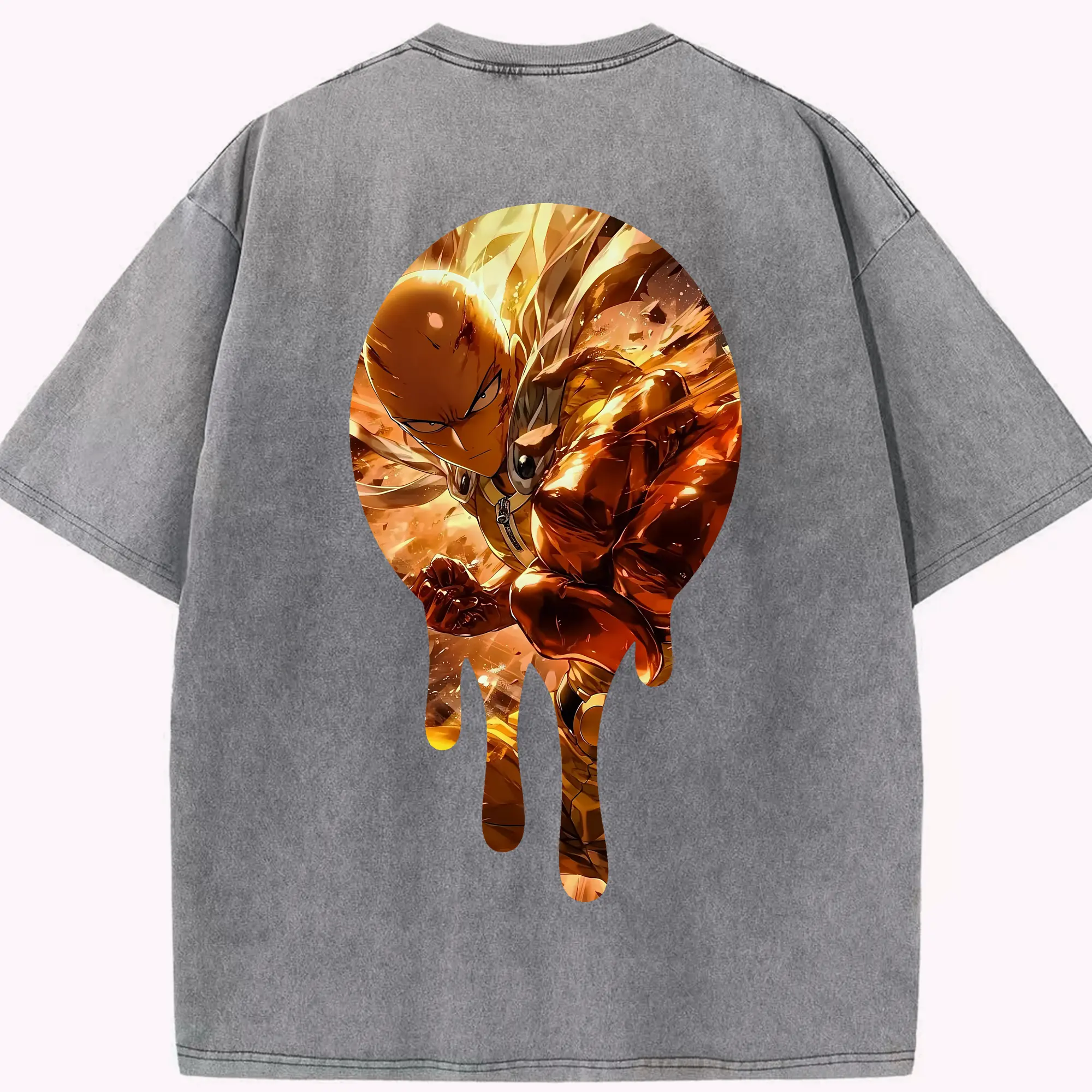 ワンパンマン グッズ サイタマ - 綿100% ヴィンテージ風 半袖Tシャツ ・ フロントプリント ・ 柔らか肌触り ・ 通気性 快適 ・ スポーツ カジュアル 外出用