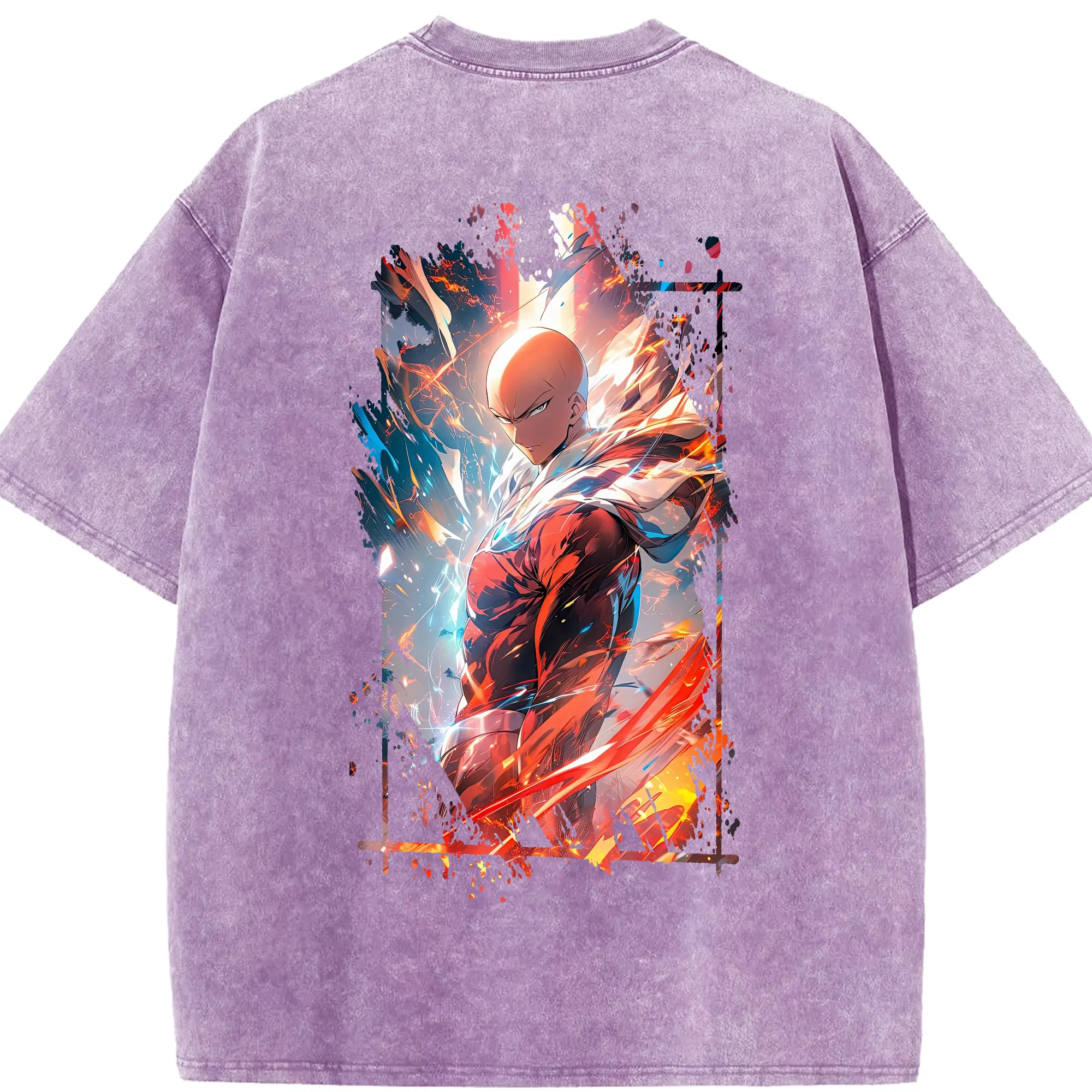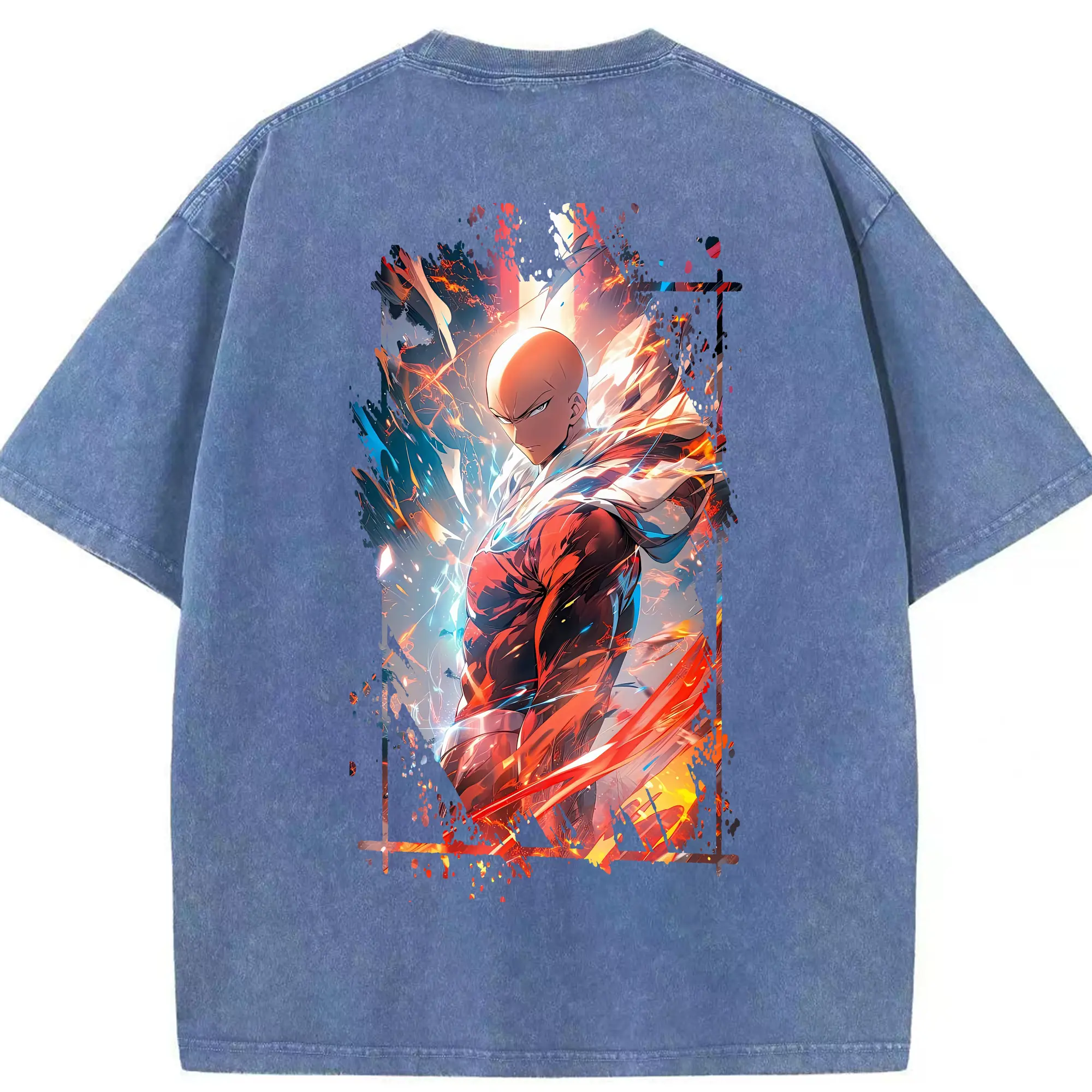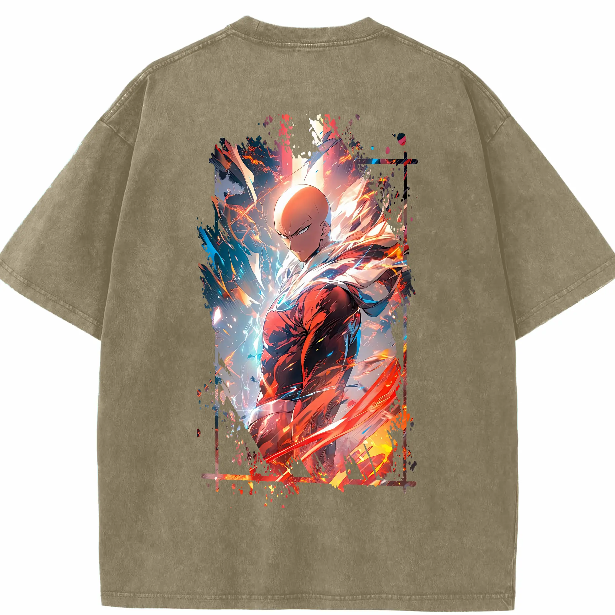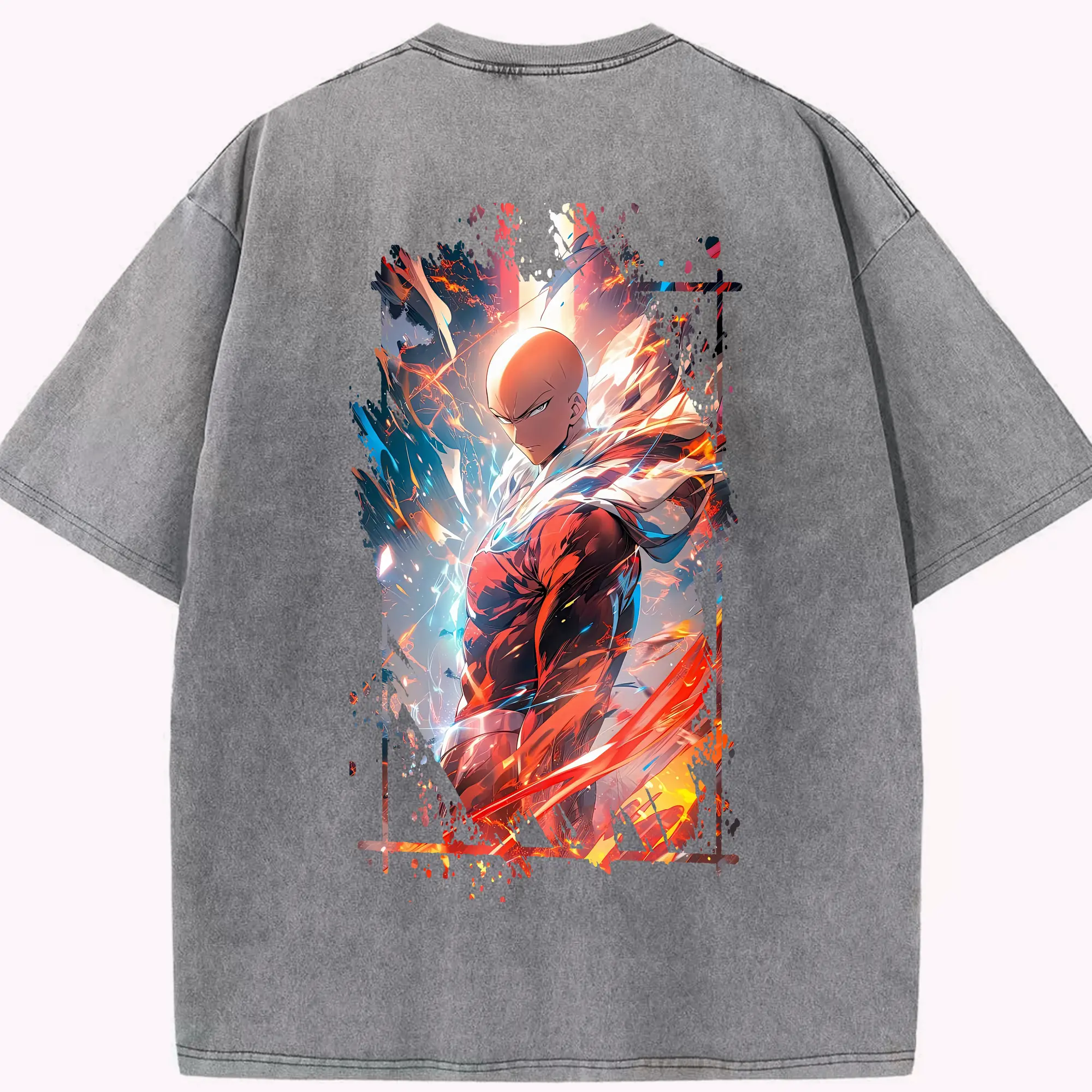 ワンパンマン グッズ サイタマ - 綿100% ヴィンテージ風 半袖Tシャツ ・ フロントプリント ・ 柔らか肌触り ・ 通気性 快適 ・ スポーツ カジュアル 外出用