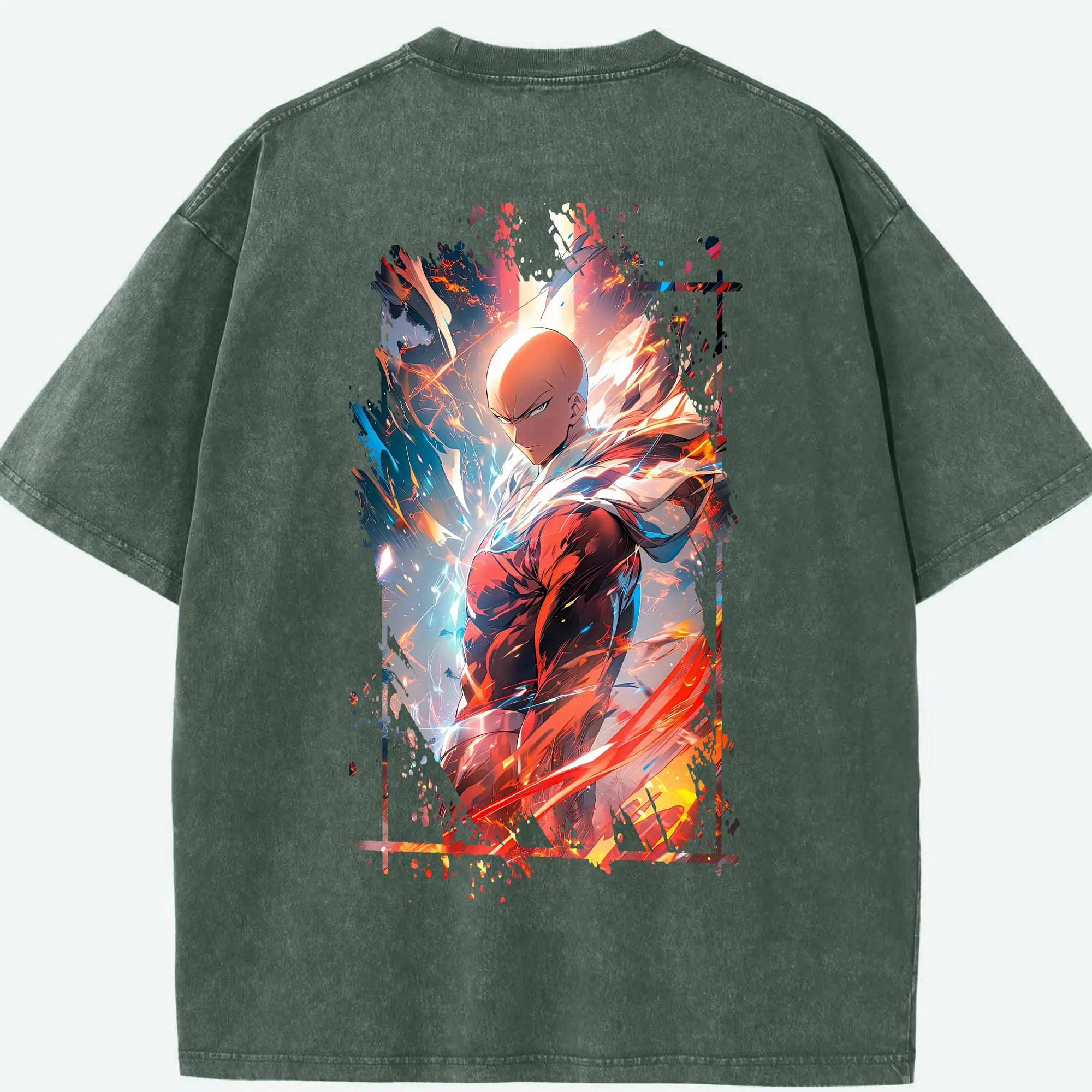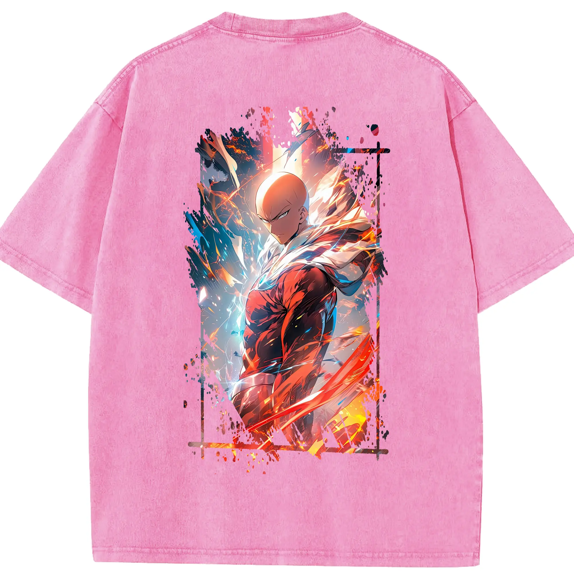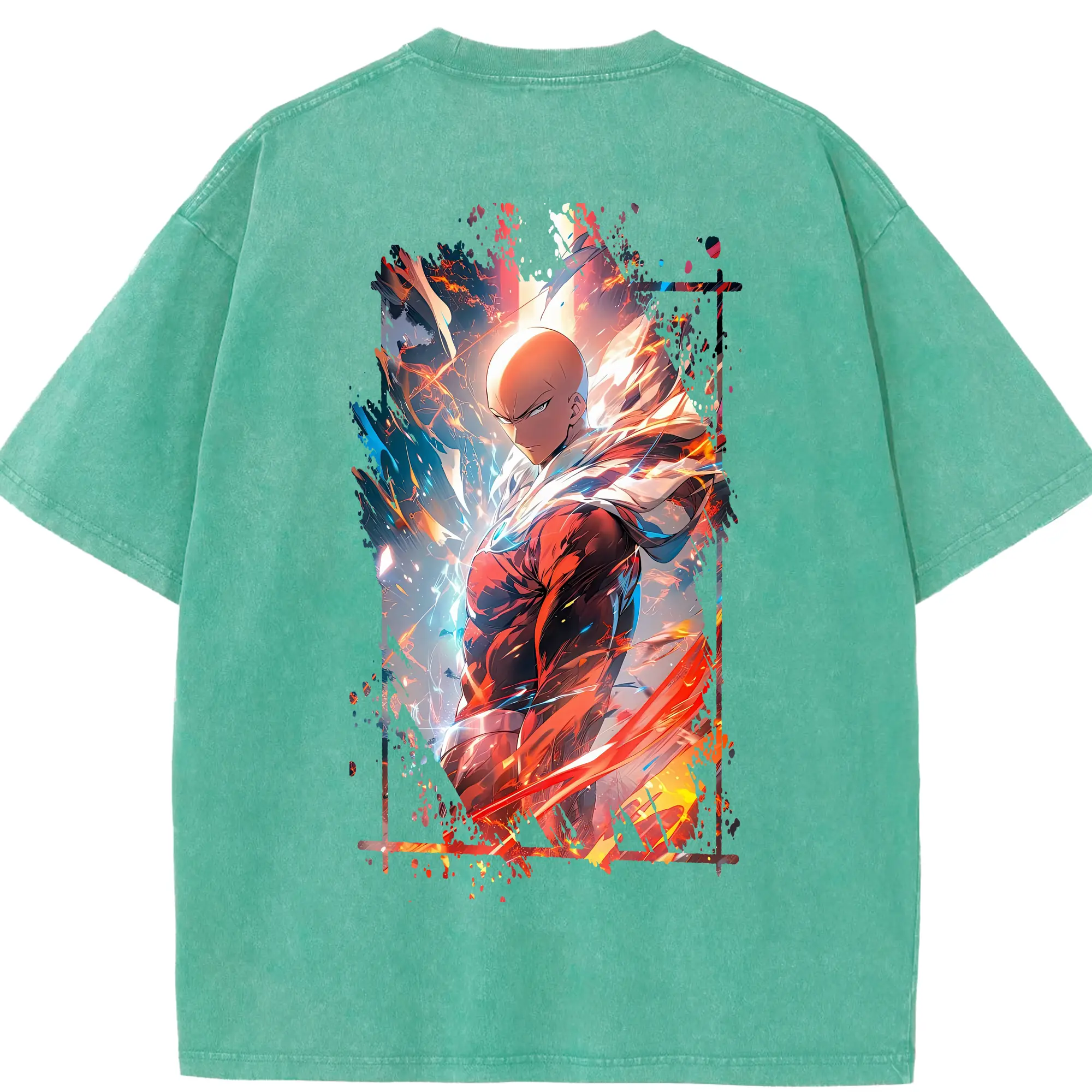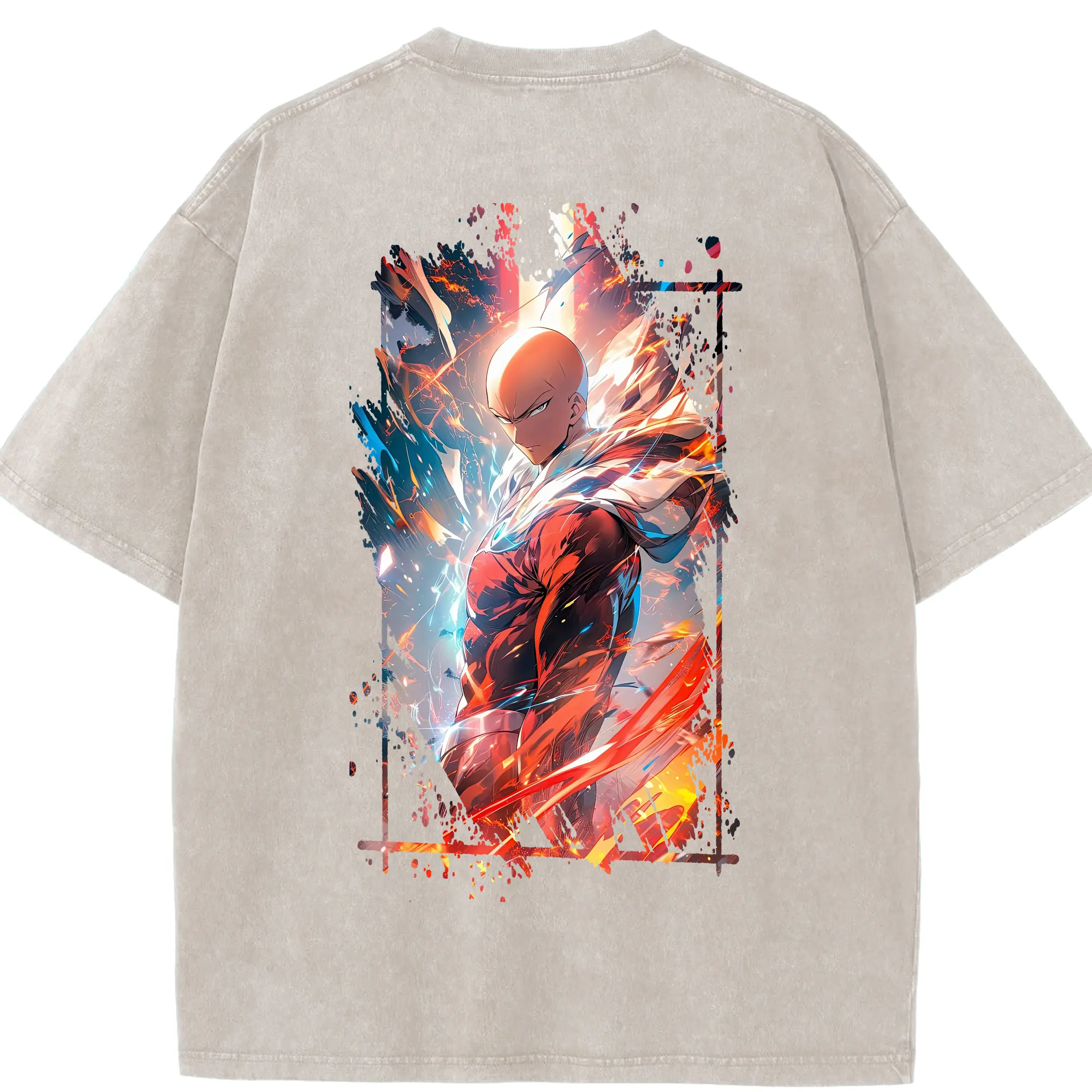 ワンパンマン グッズ サイタマ - 綿100% ヴィンテージ風 半袖Tシャツ ・ フロントプリント ・ 柔らか肌触り ・ 通気性 快適 ・ スポーツ カジュアル 外出用