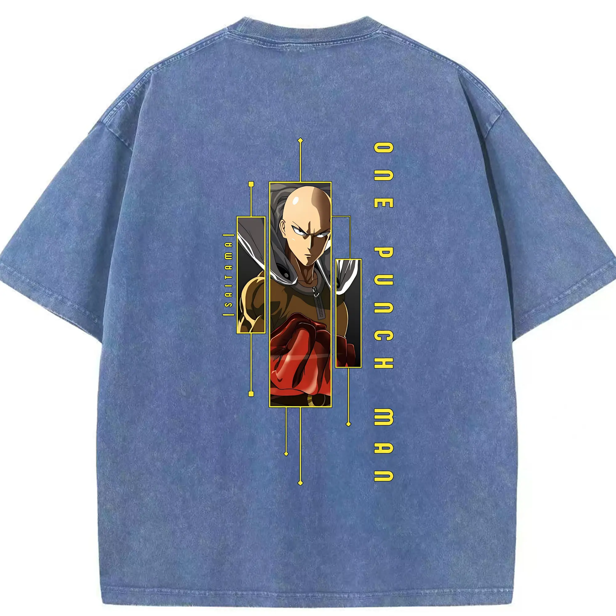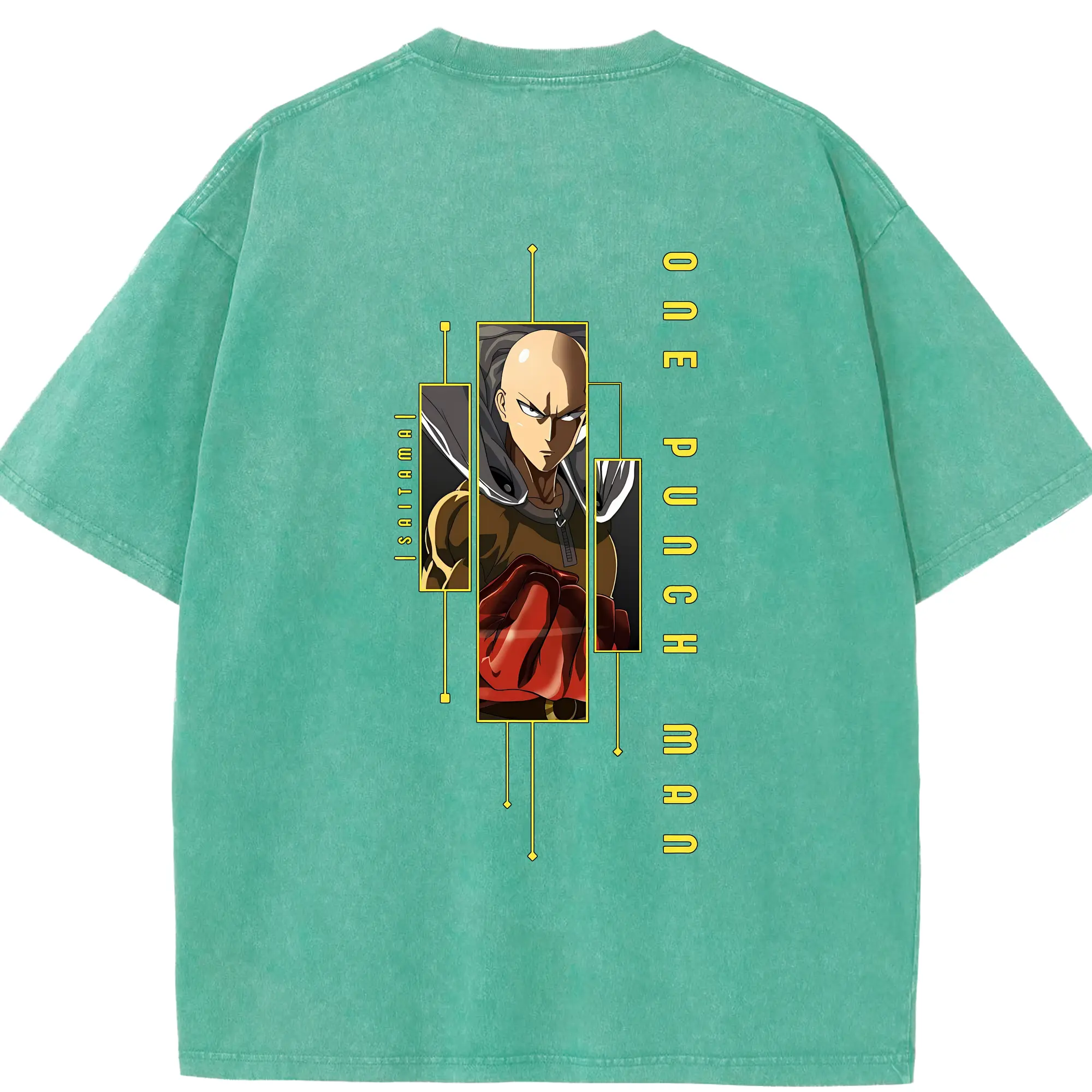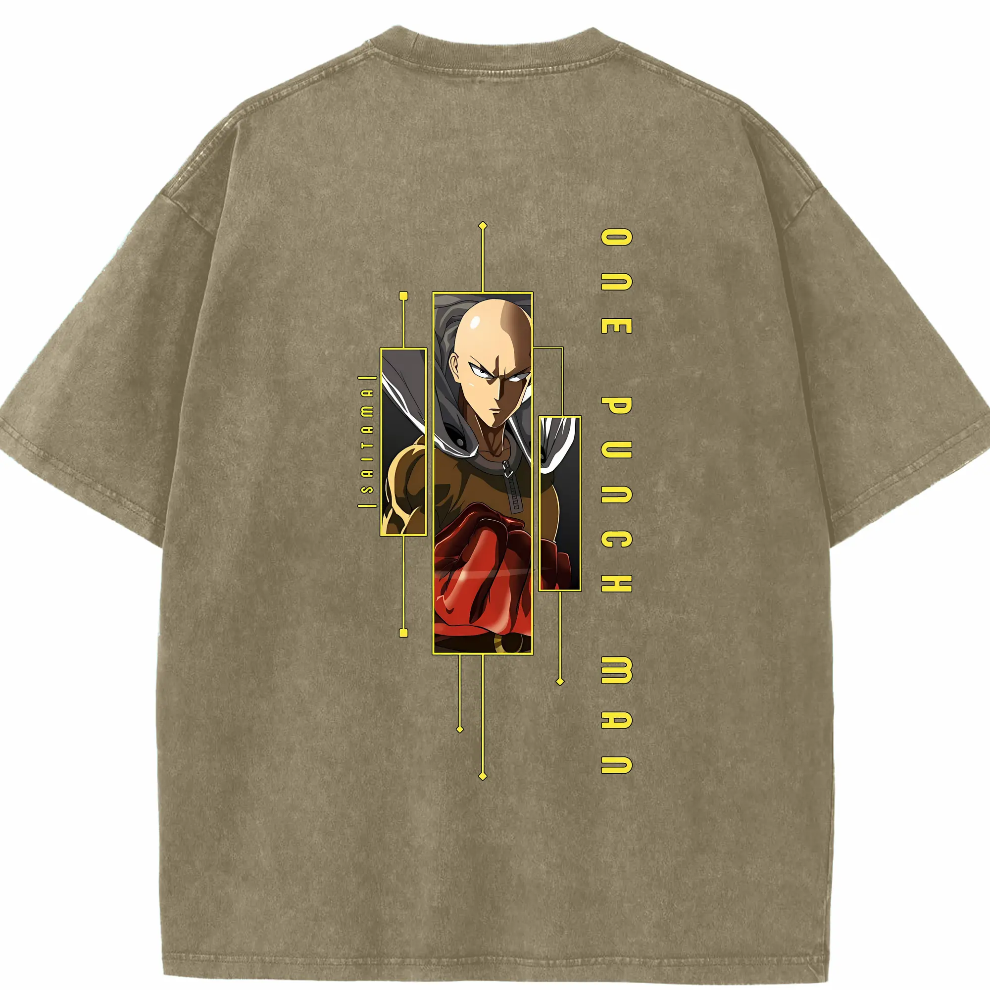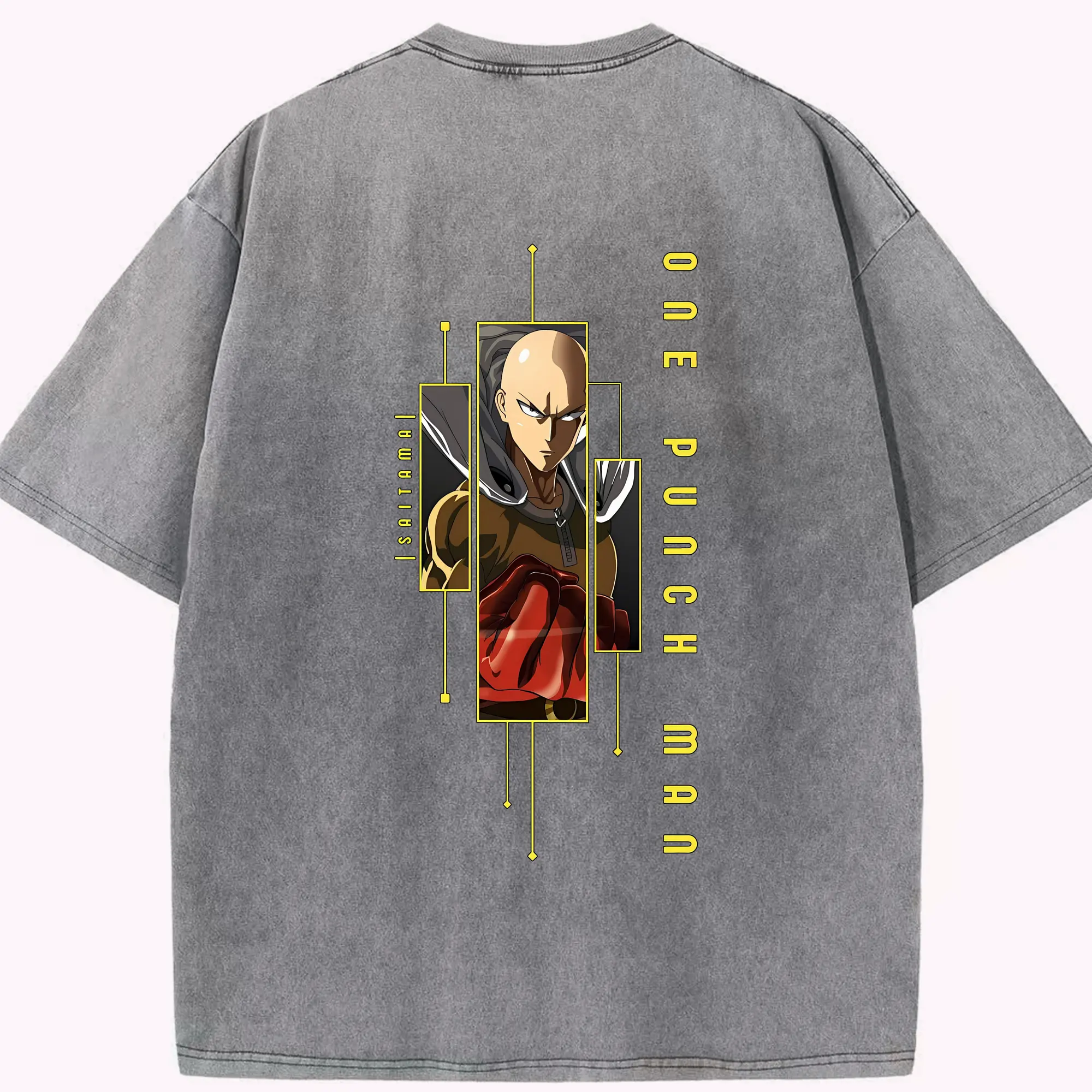 ワンパンマン グッズ サイタマ - 綿100% ヴィンテージ風 半袖Tシャツ ・ フロントプリント ・ 柔らか肌触り ・ 通気性 快適 ・ スポーツ カジュアル 外出用