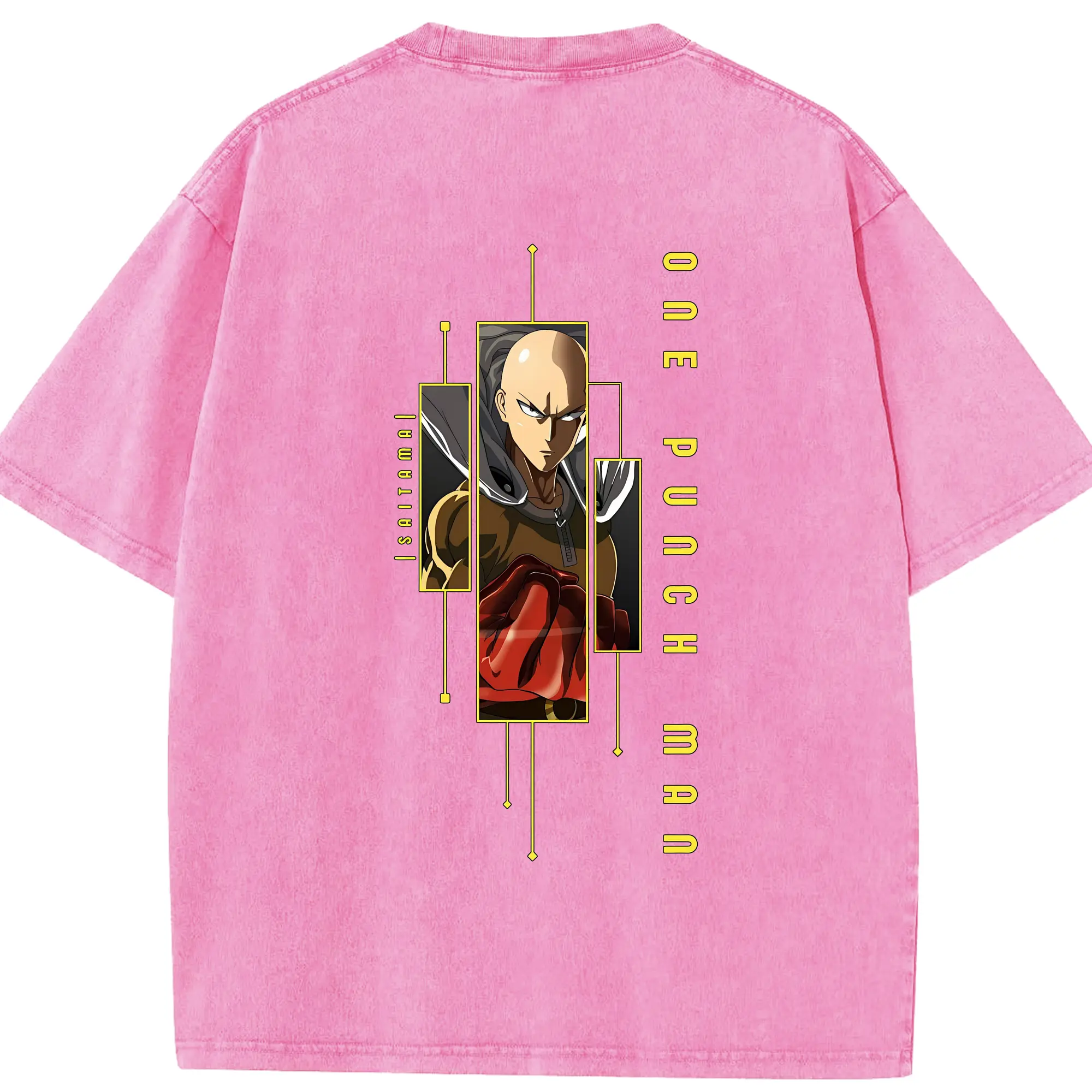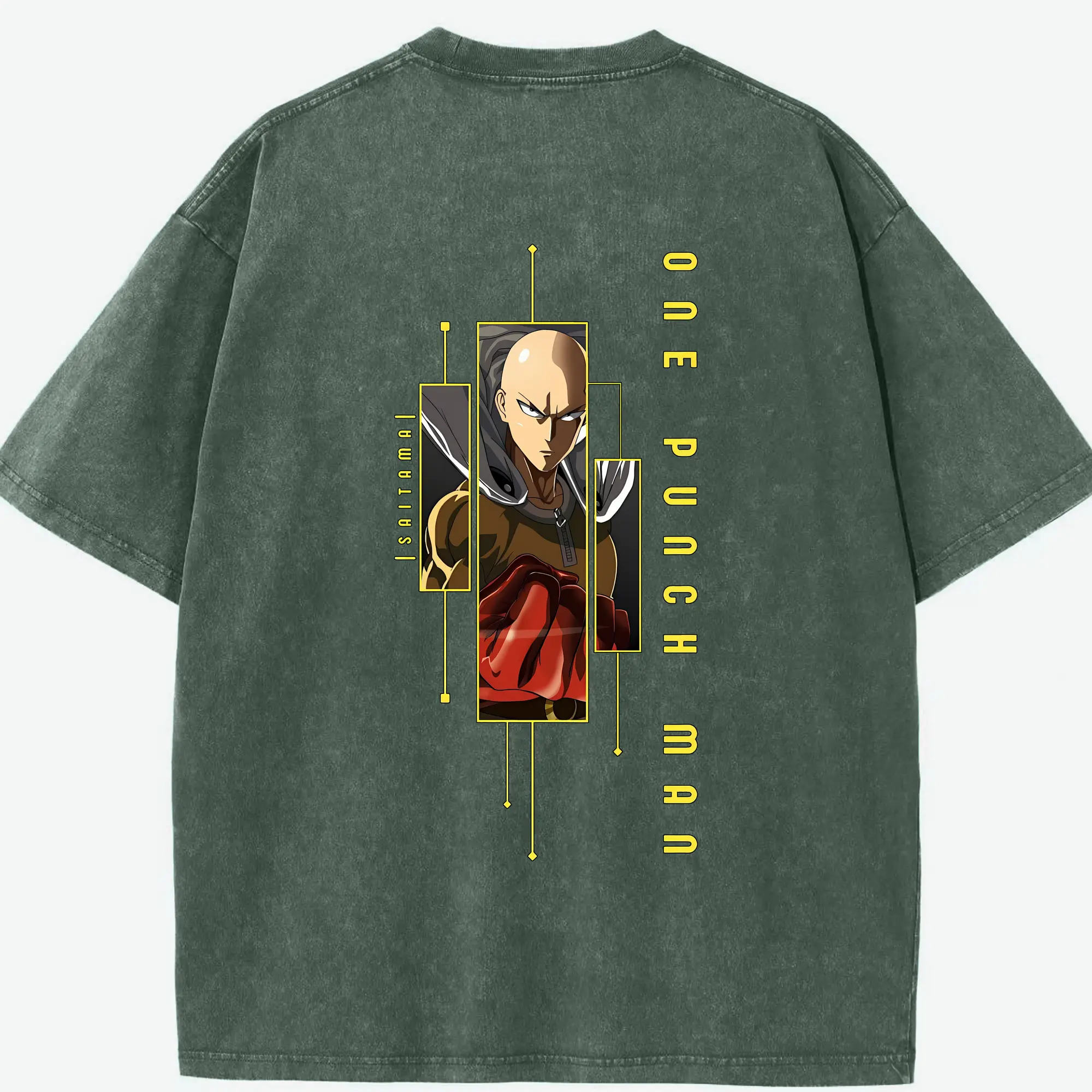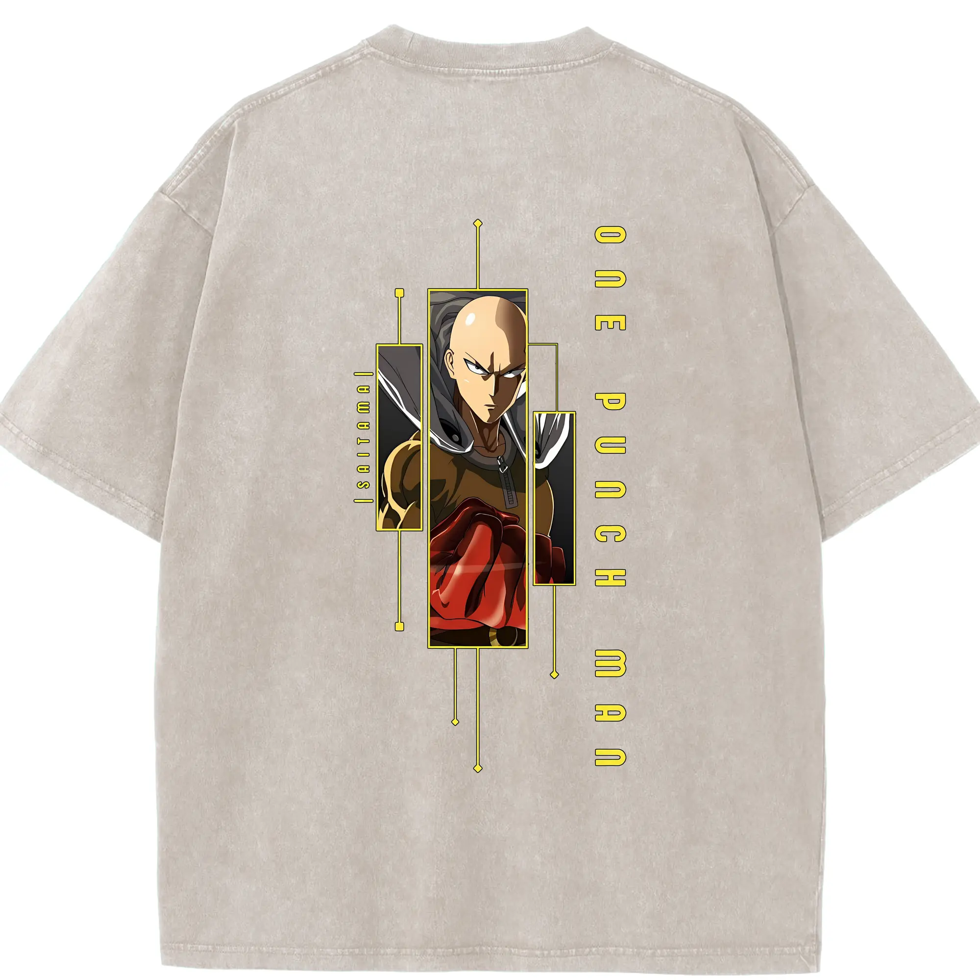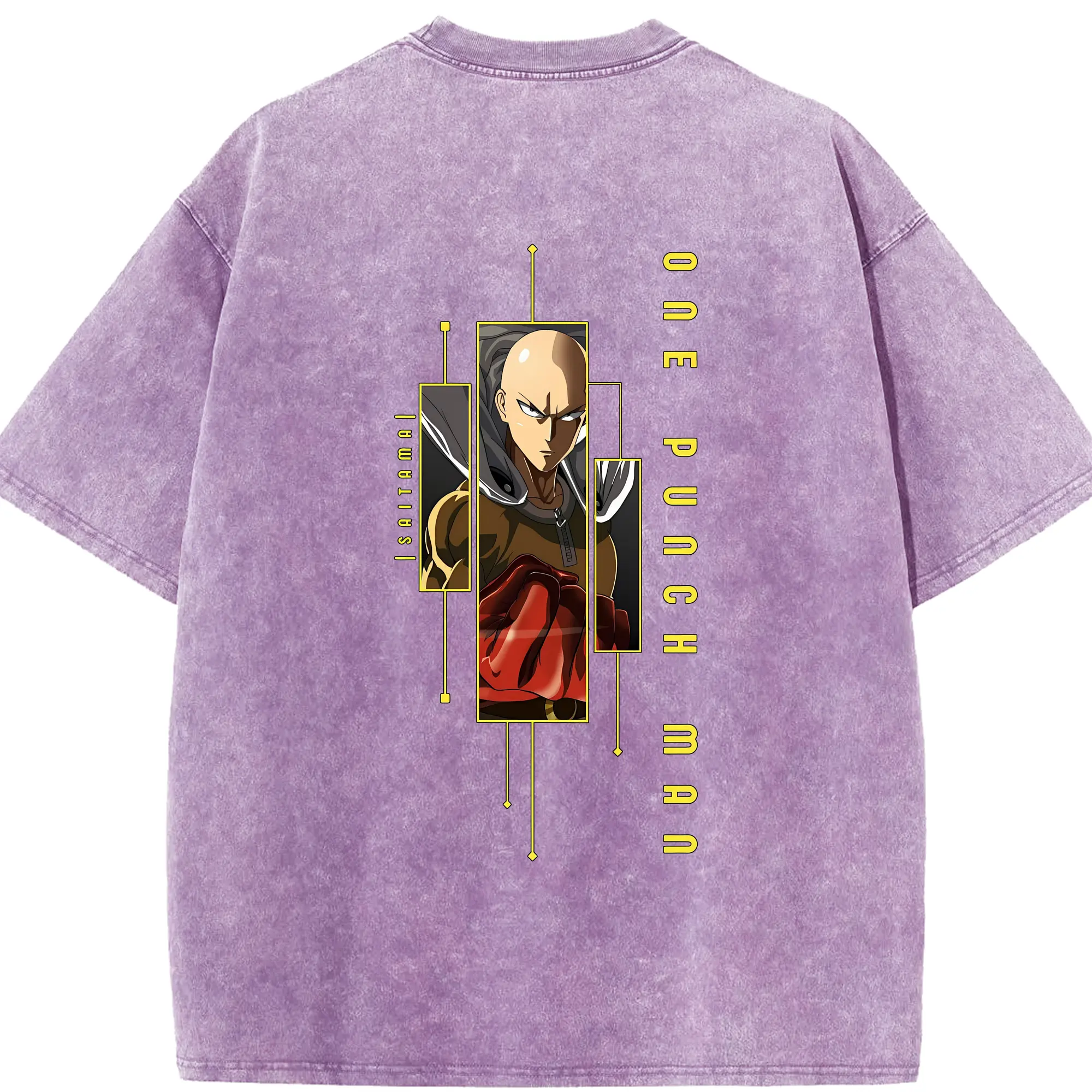 ワンパンマン グッズ サイタマ - 綿100% ヴィンテージ風 半袖Tシャツ ・ フロントプリント ・ 柔らか肌触り ・ 通気性 快適 ・ スポーツ カジュアル 外出用