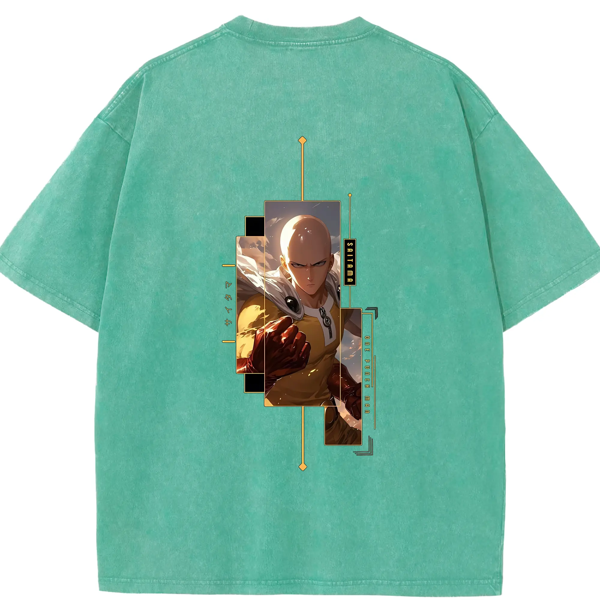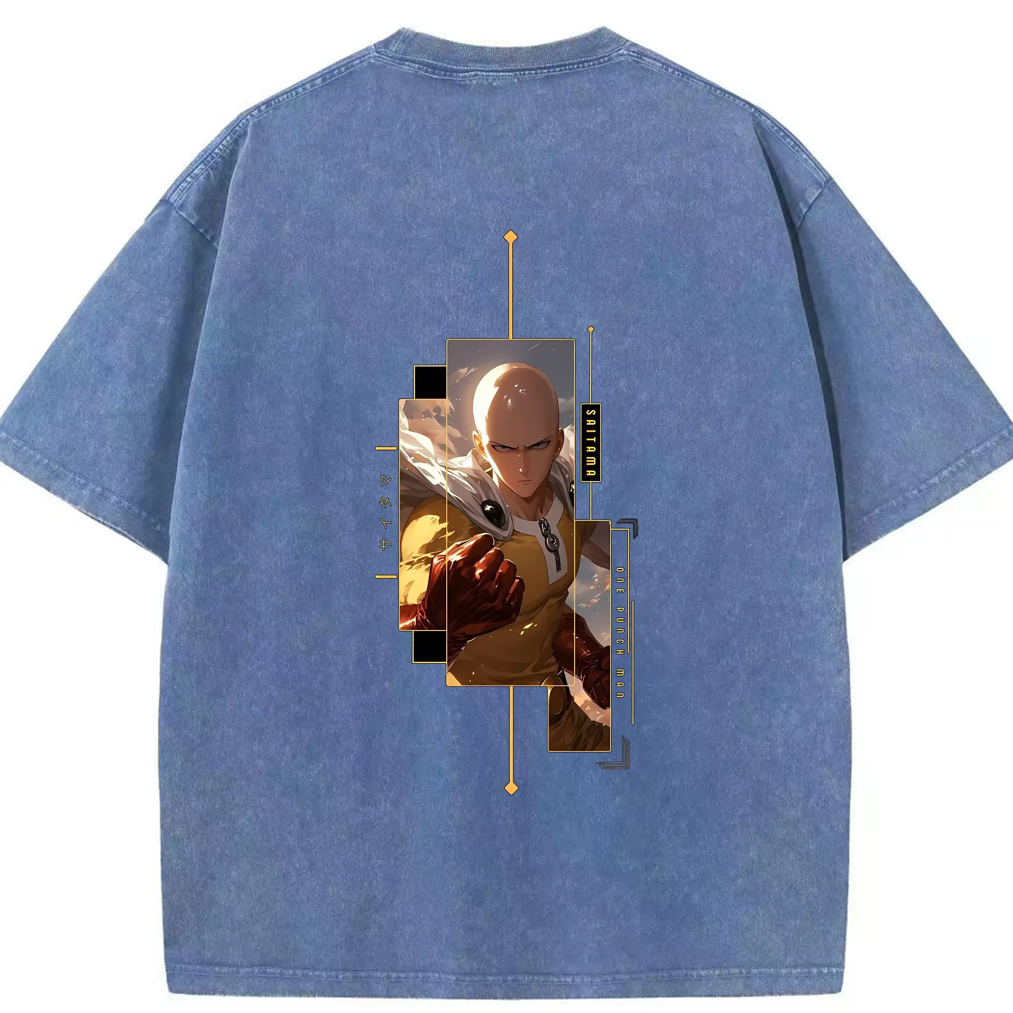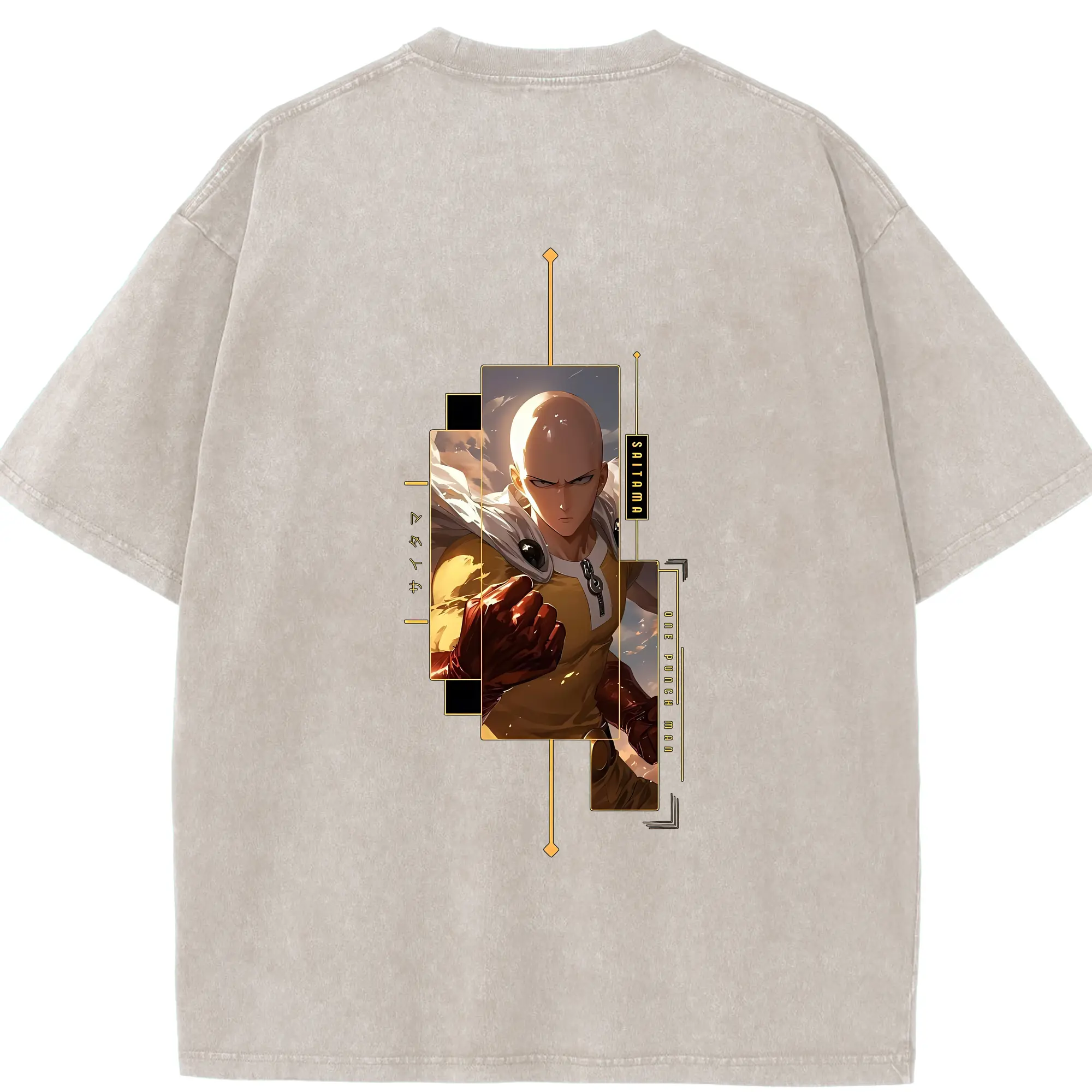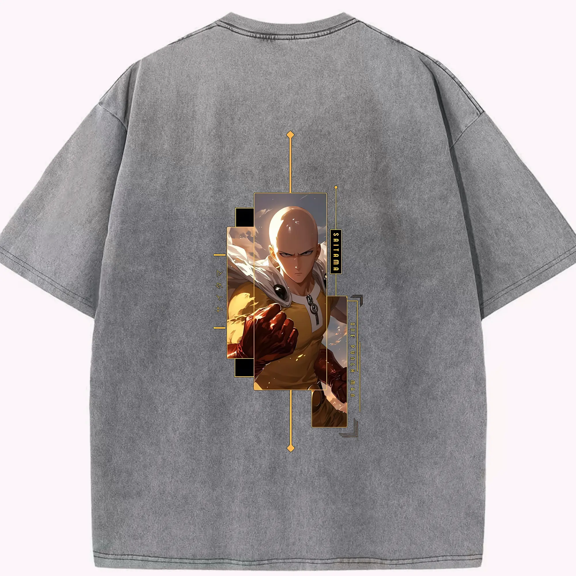 ワンパンマン グッズ サイタマ - 綿100% ヴィンテージ風 半袖Tシャツ ・ フロントプリント ・ 柔らか肌触り ・ 通気性 快適 ・ スポーツ カジュアル 外出用