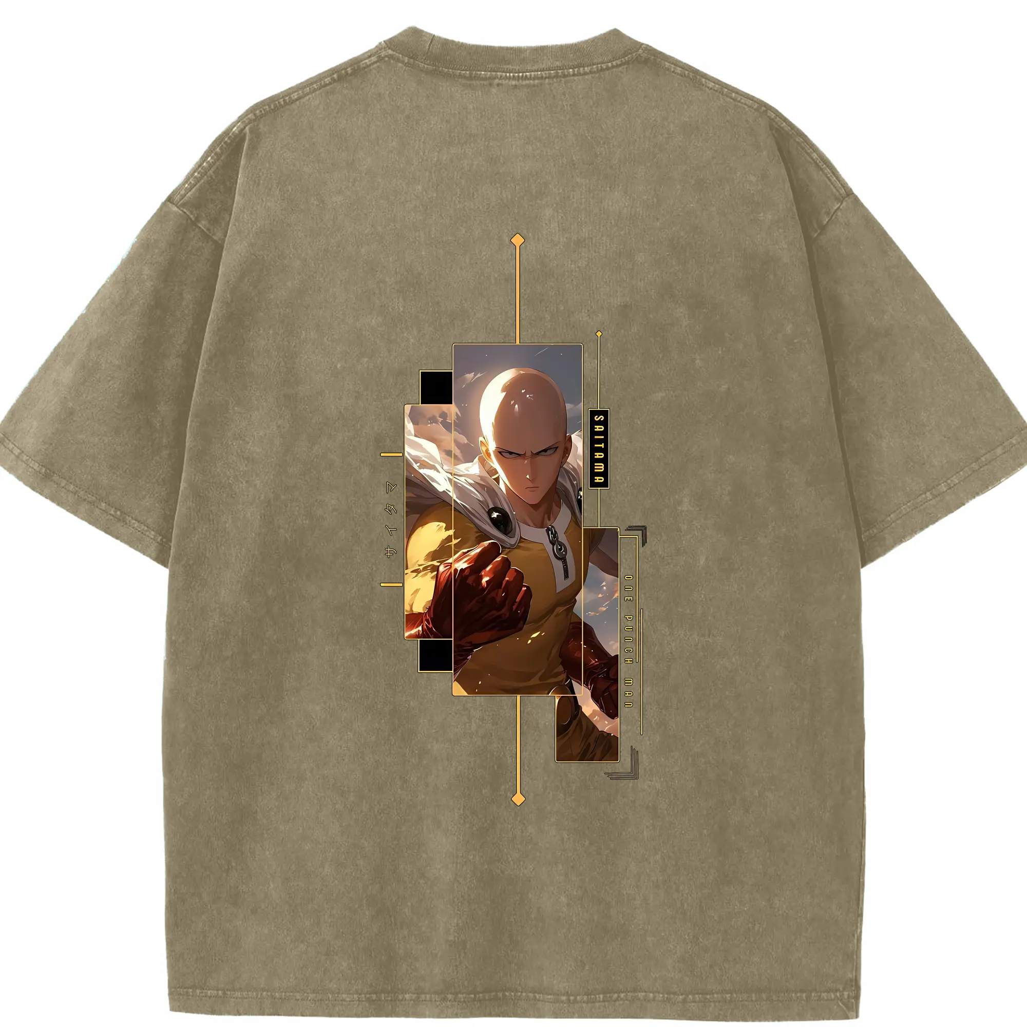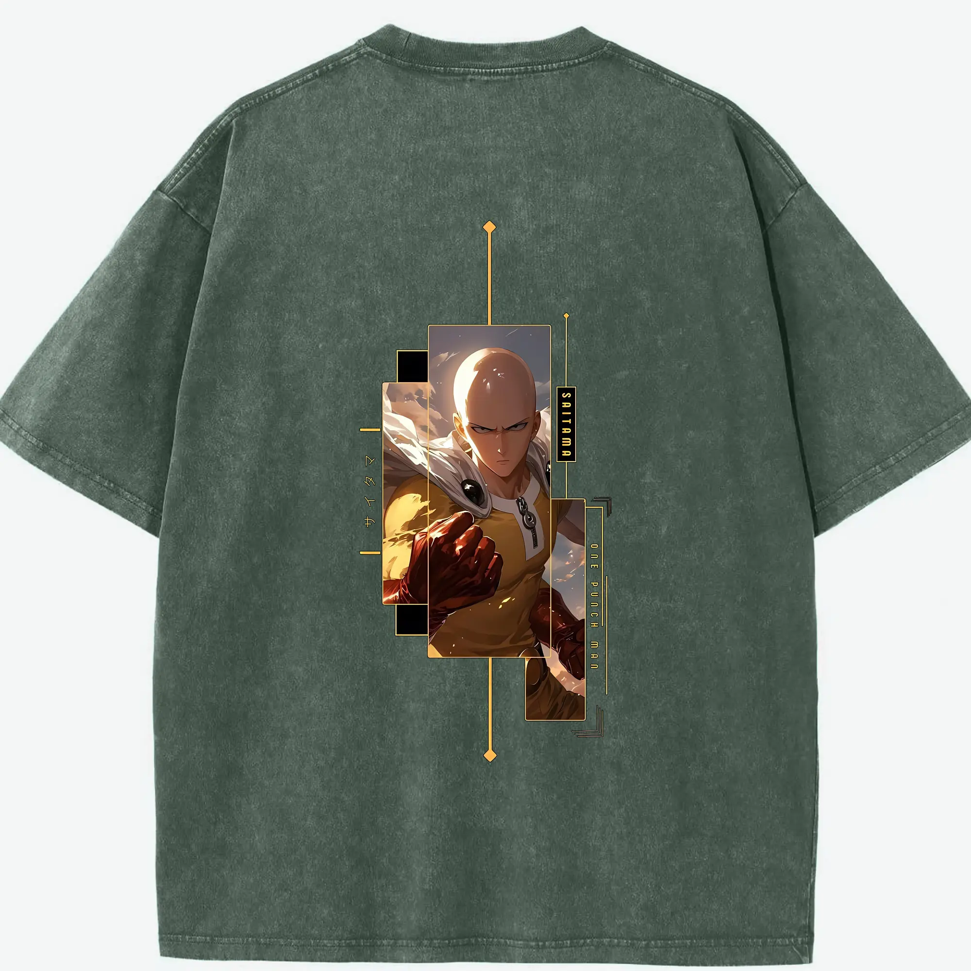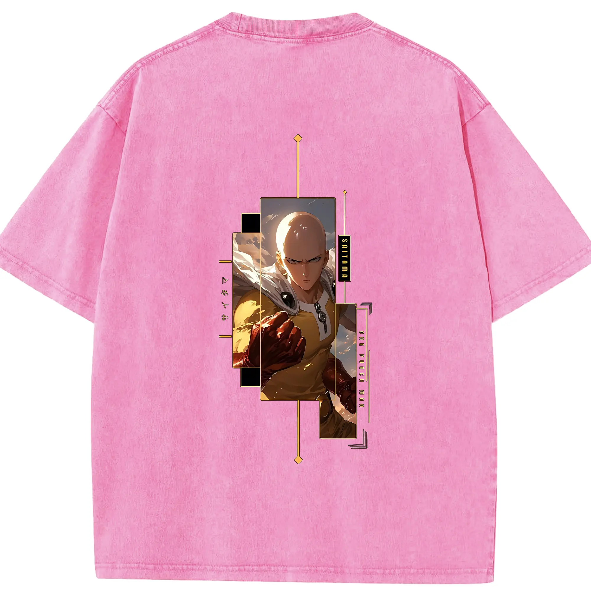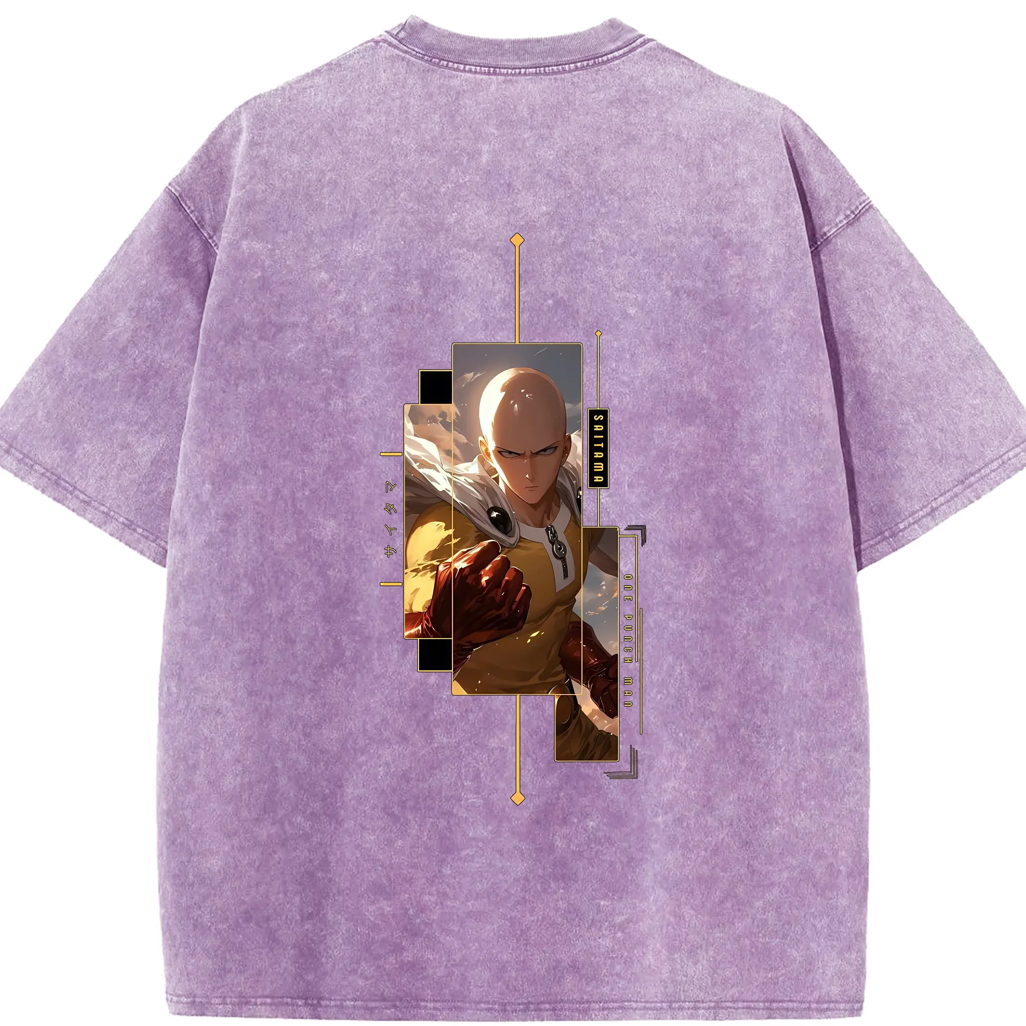 ワンパンマン グッズ サイタマ - 綿100% ヴィンテージ風 半袖Tシャツ ・ フロントプリント ・ 柔らか肌触り ・ 通気性 快適 ・ スポーツ カジュアル 外出用