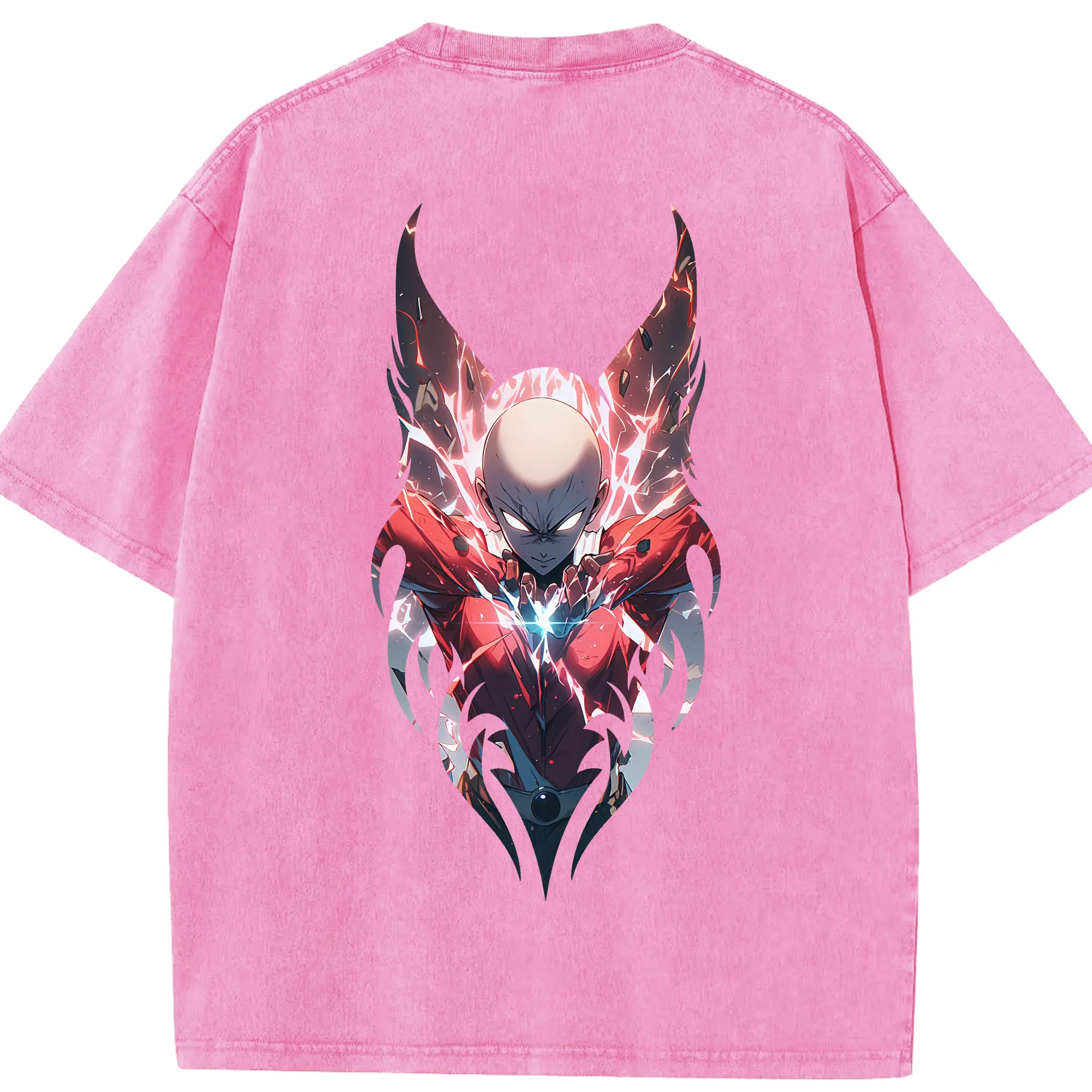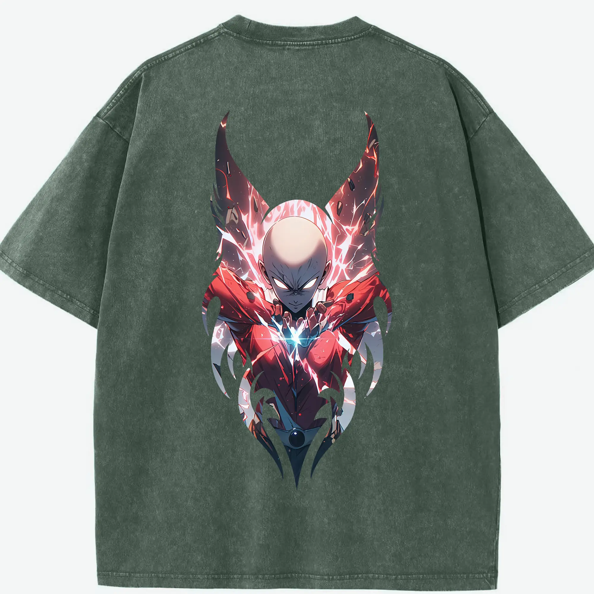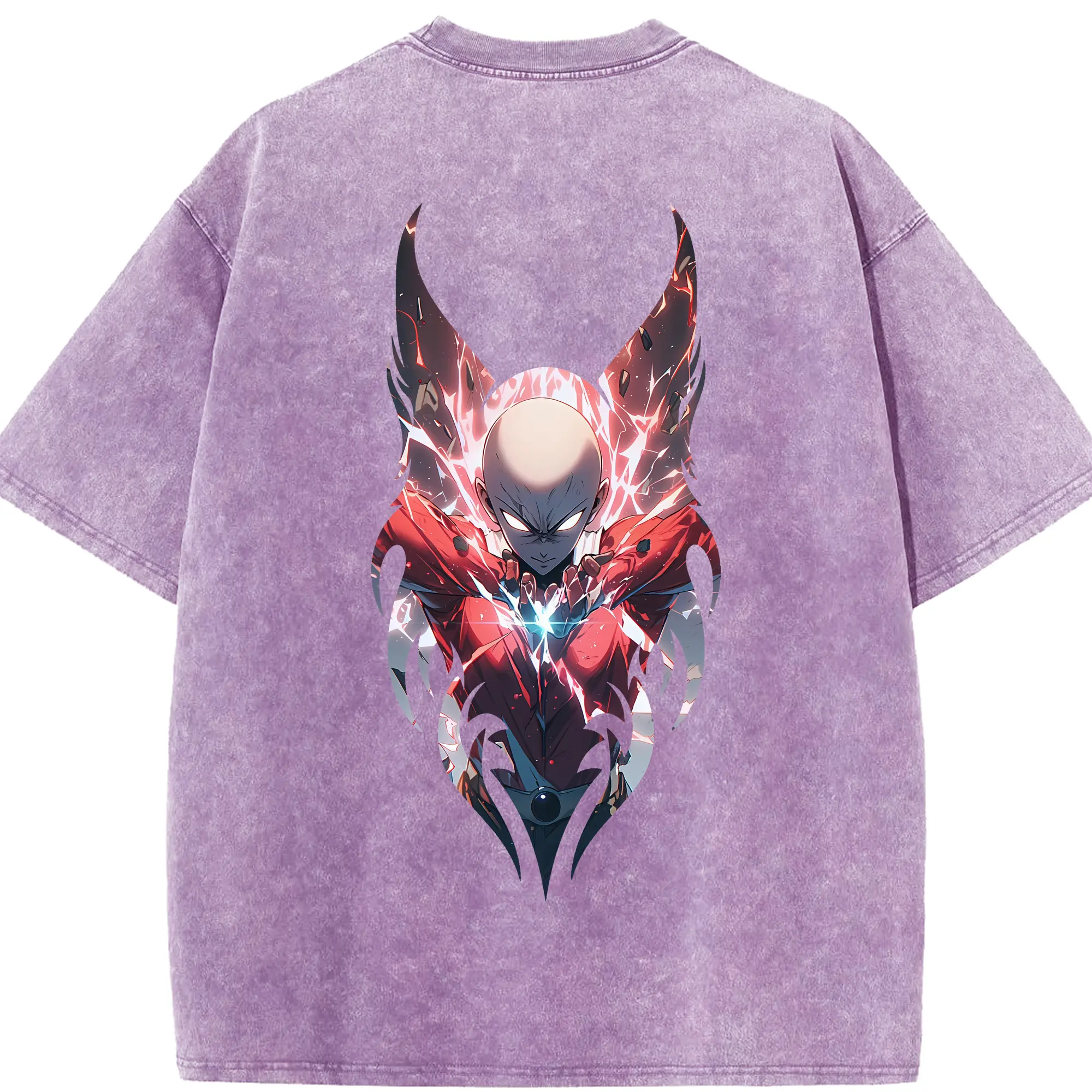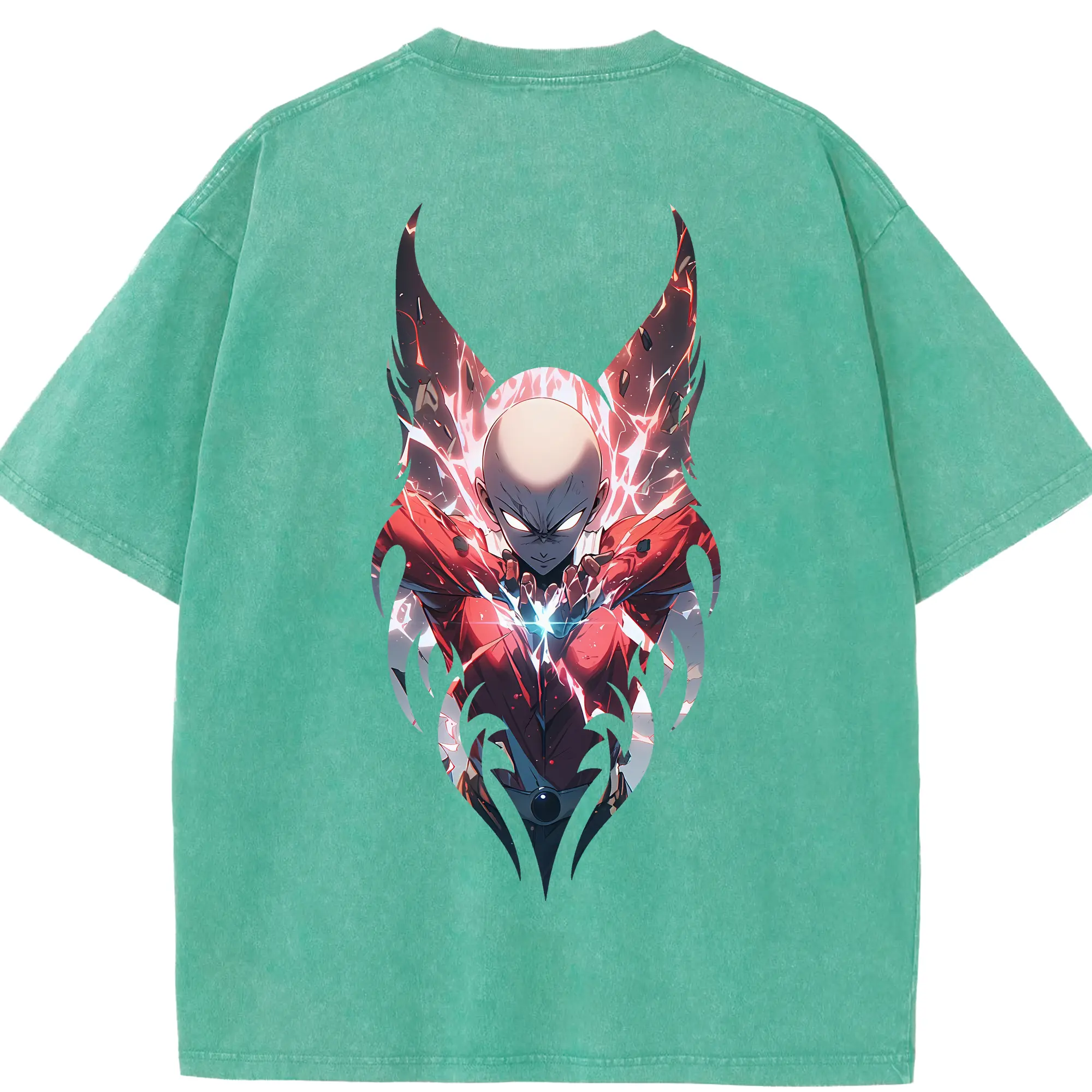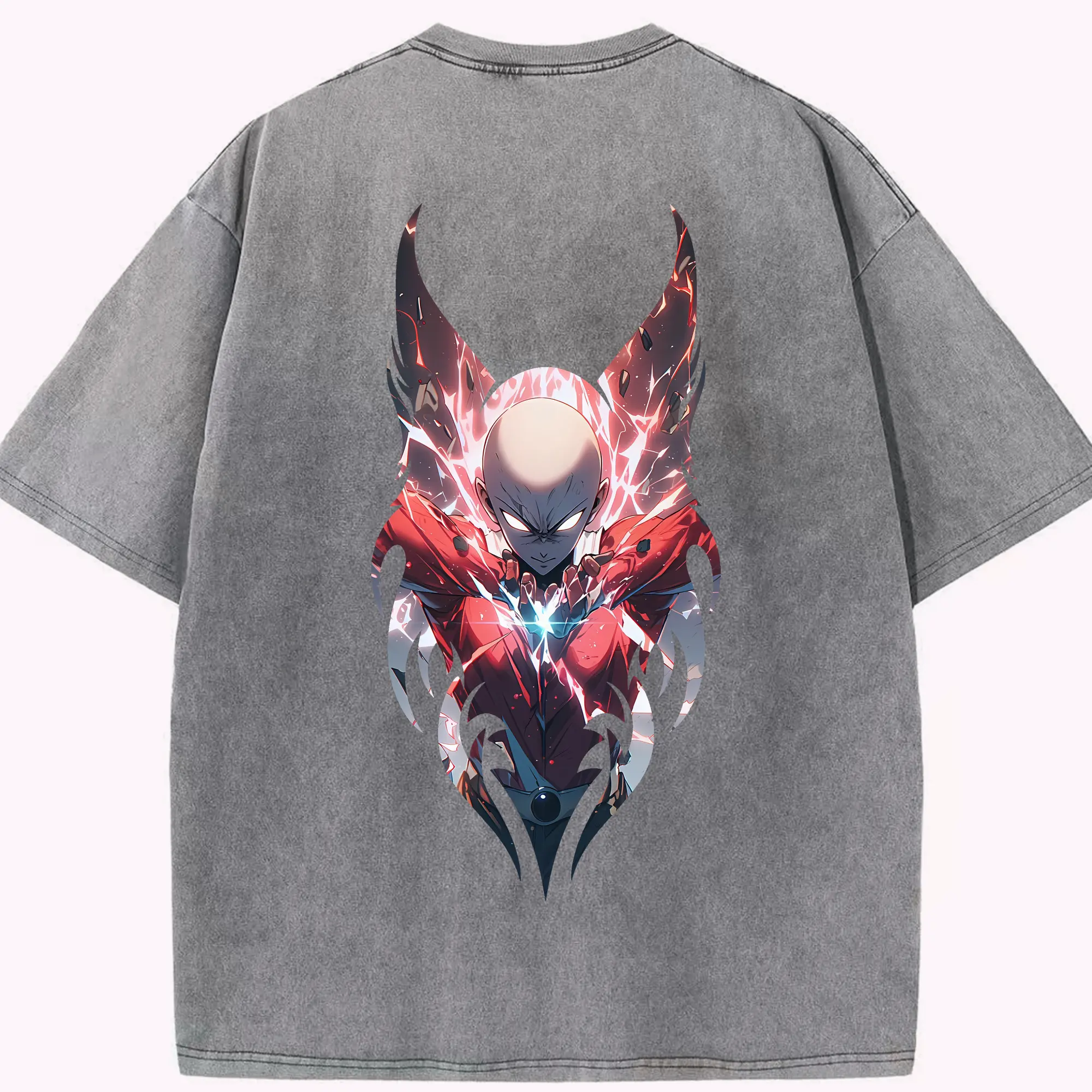 ワンパンマン グッズ サイタマ - 綿100% ヴィンテージ風 半袖Tシャツ ・ フロントプリント ・ 柔らか肌触り ・ 通気性 快適 ・ スポーツ カジュアル 外出用
