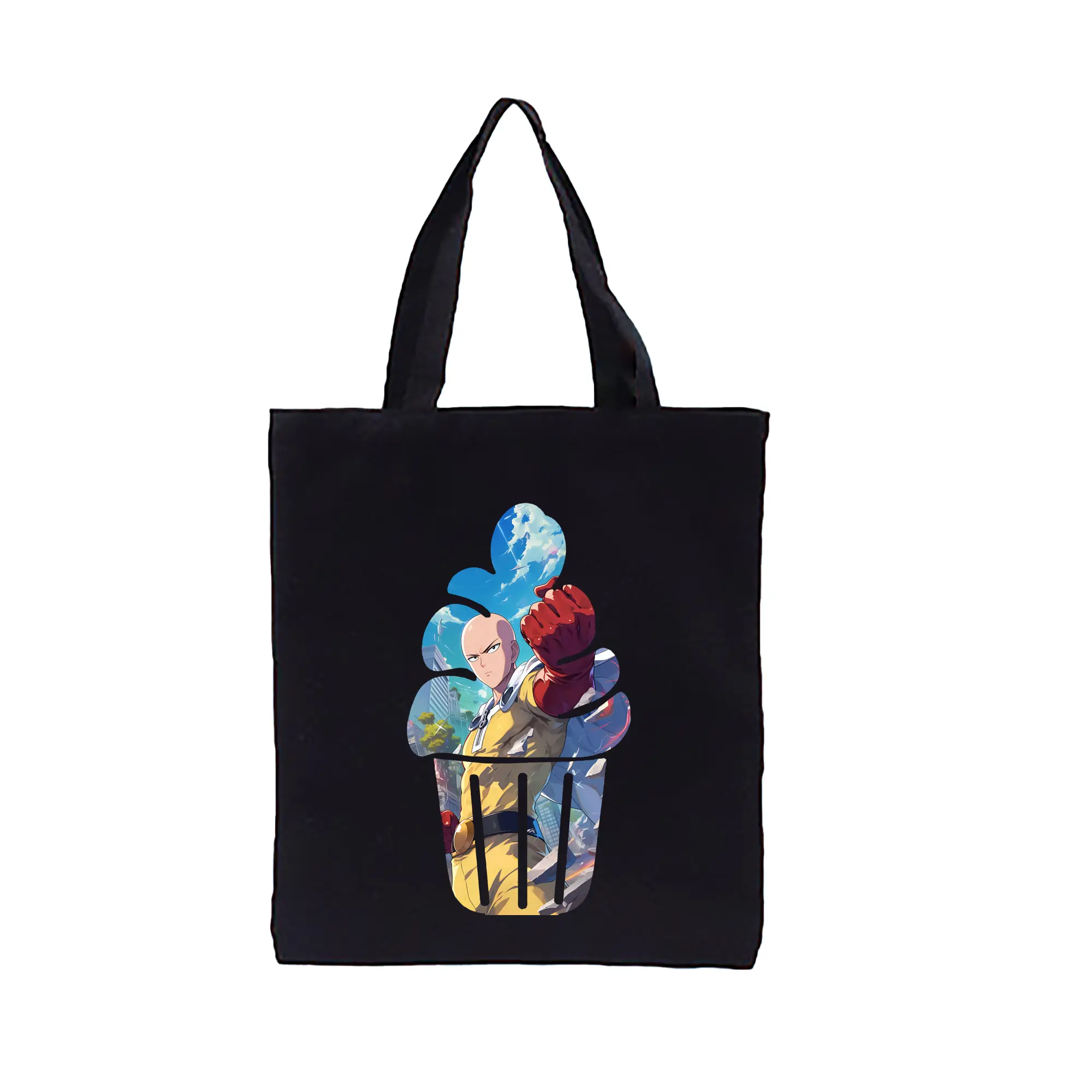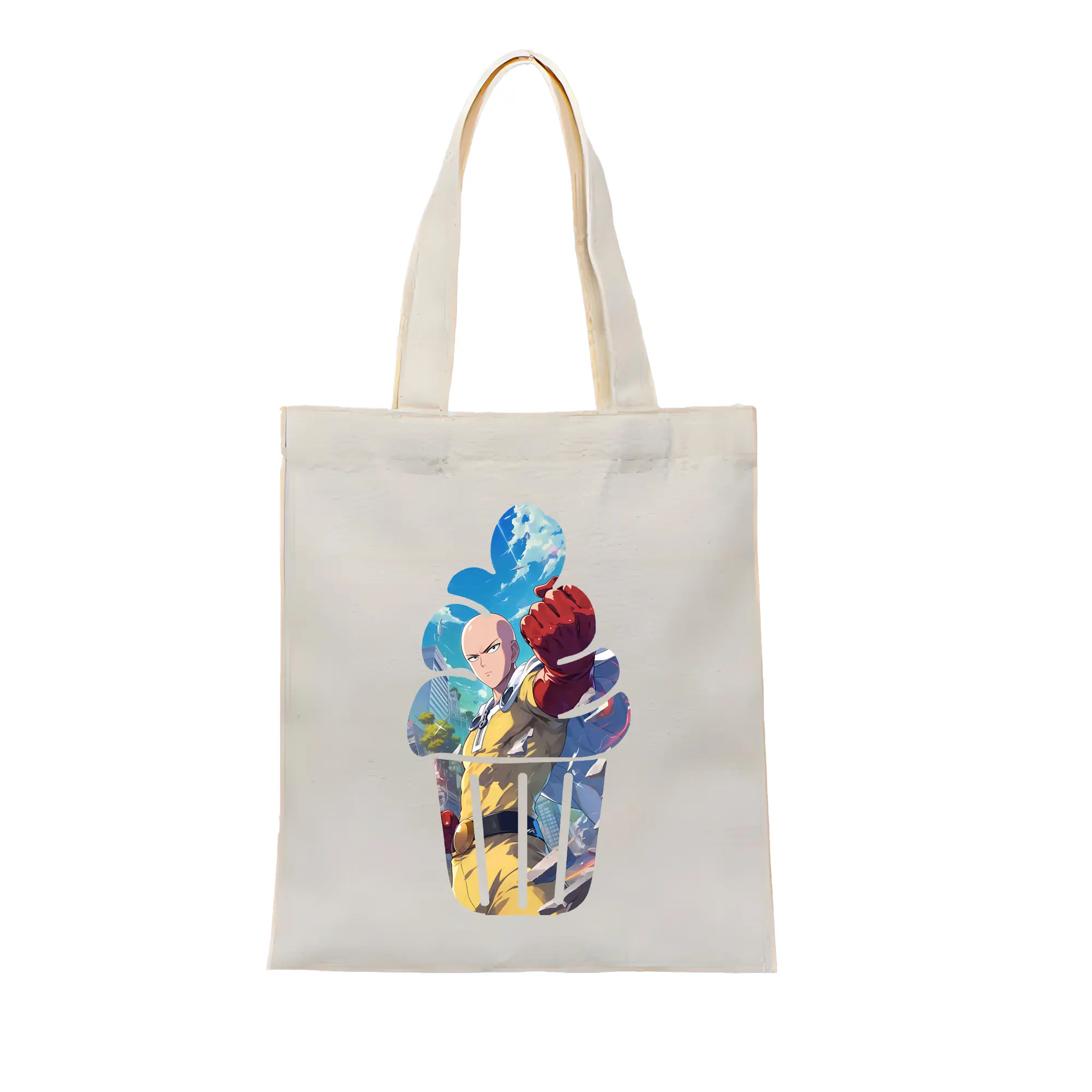 ワンパンマン グッズ サイタマ - 縦型キャンバス手提げバッグ(トートバッグ) ・ キャンバス素材 ・ ショッピング用 ・ 軽量 丈夫 お手入れ簡単