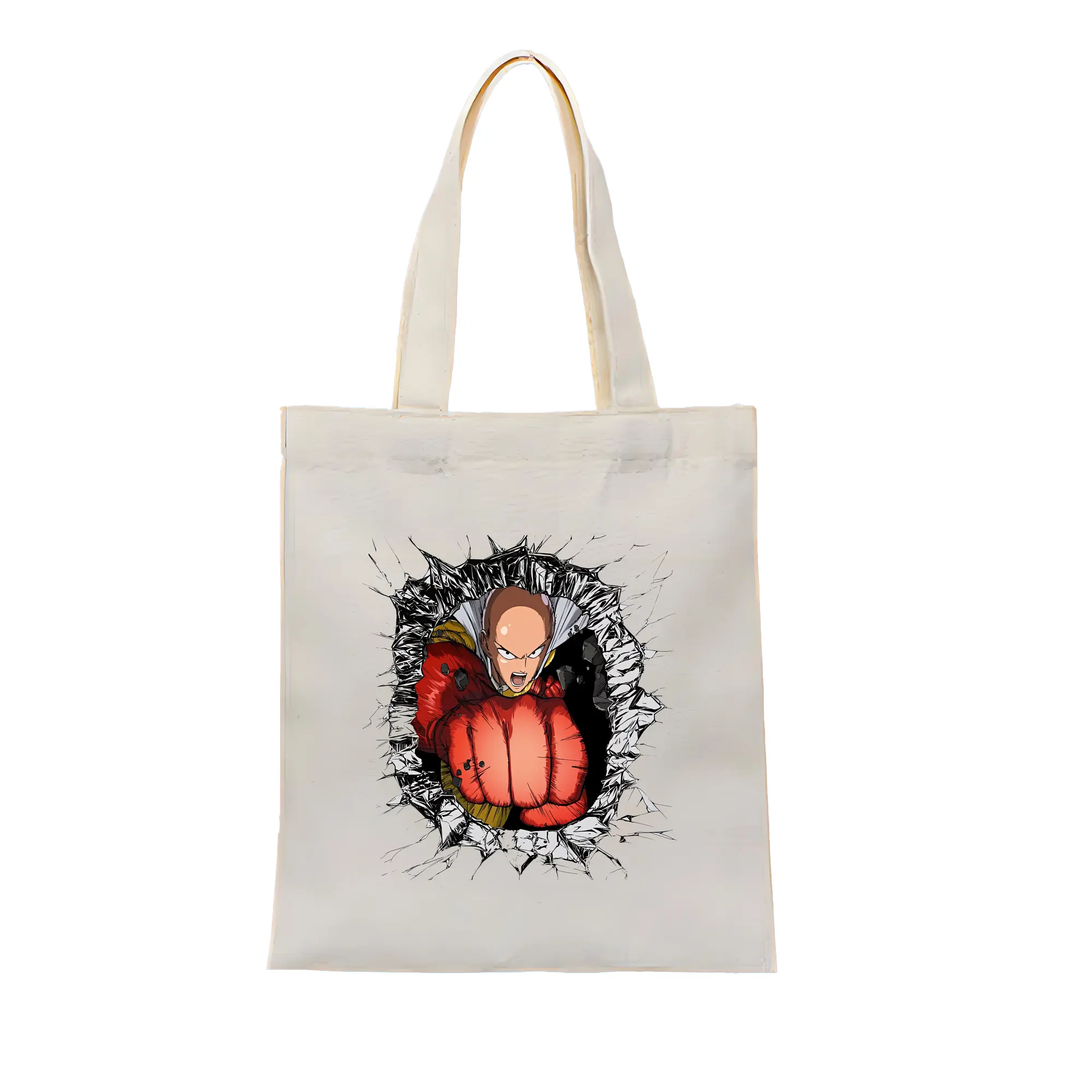 ワンパンマン グッズ サイタマ - 縦型キャンバス手提げバッグ(トートバッグ) ・ キャンバス素材 ・ ショッピング用 ・ 軽量 丈夫 お手入れ簡単