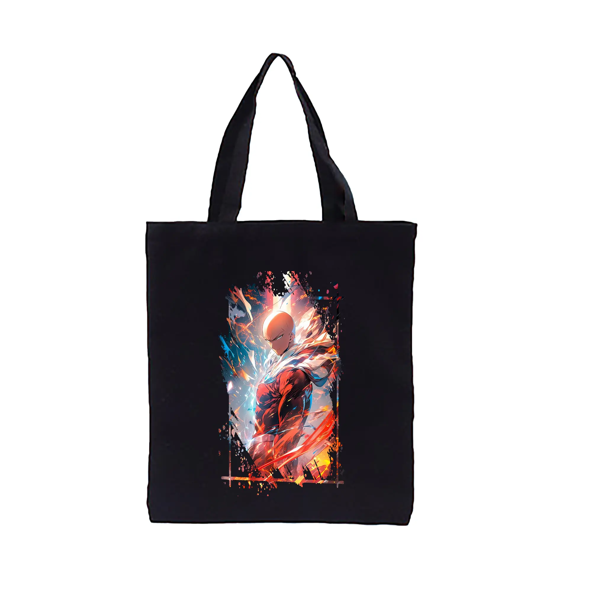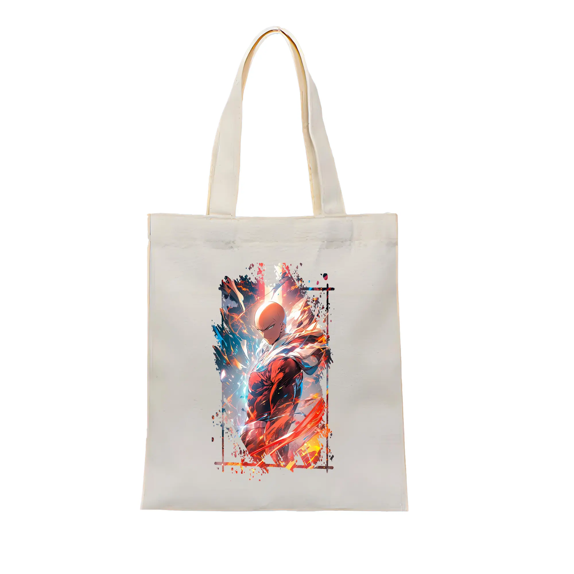 ワンパンマン グッズ サイタマ - 縦型キャンバス手提げバッグ(トートバッグ) ・ キャンバス素材 ・ ショッピング用 ・ 軽量 丈夫 お手入れ簡単