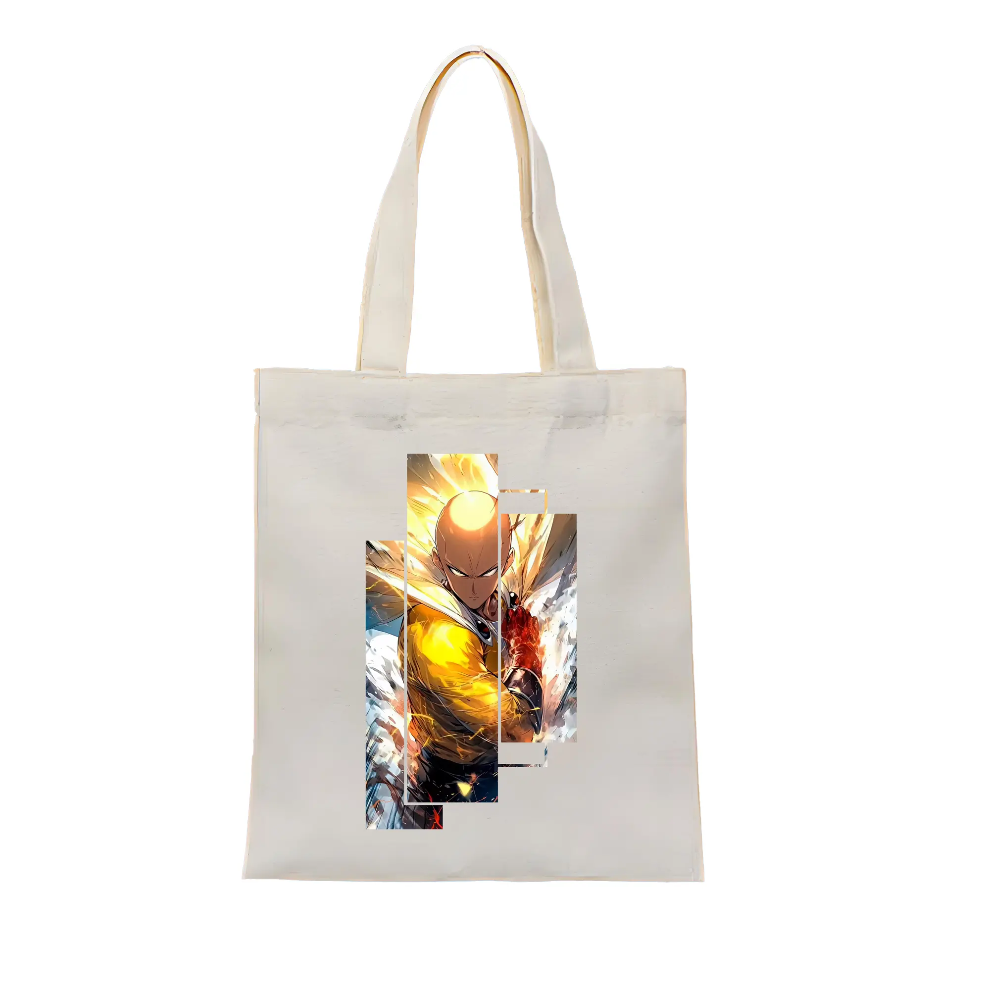 ワンパンマン グッズ サイタマ - 縦型キャンバス手提げバッグ(トートバッグ) ・ キャンバス素材 ・ ショッピング用 ・ 軽量 丈夫 お手入れ簡単