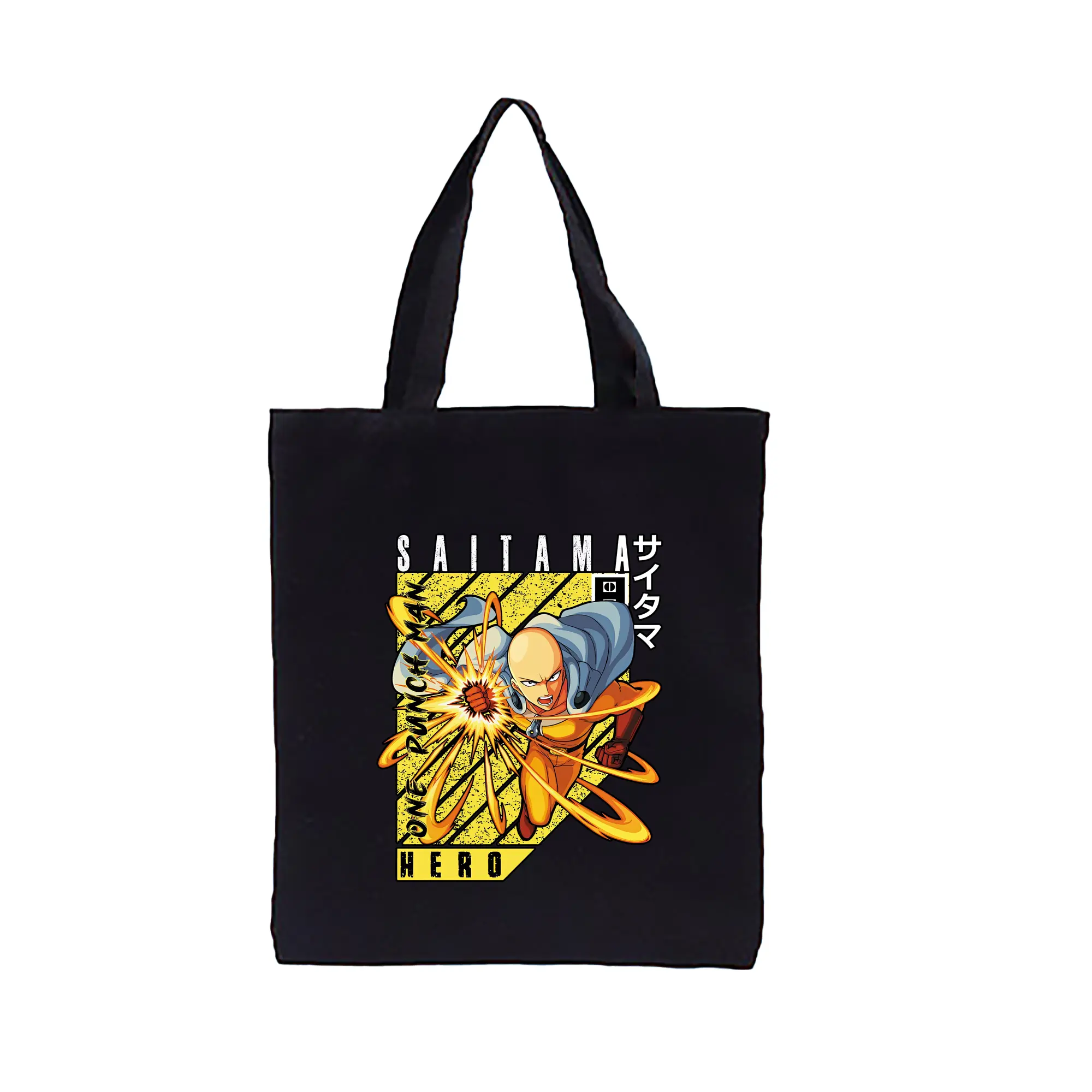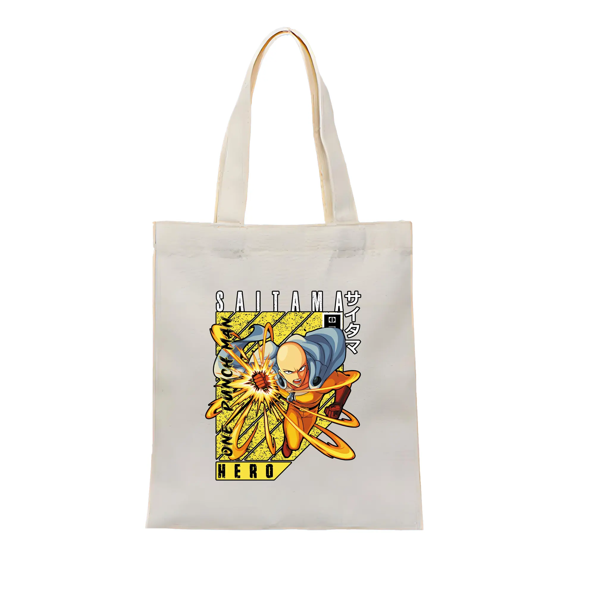 ワンパンマン グッズ サイタマ - 縦型キャンバス手提げバッグ(トートバッグ) ・ キャンバス素材 ・ ショッピング用 ・ 軽量 丈夫 お手入れ簡単