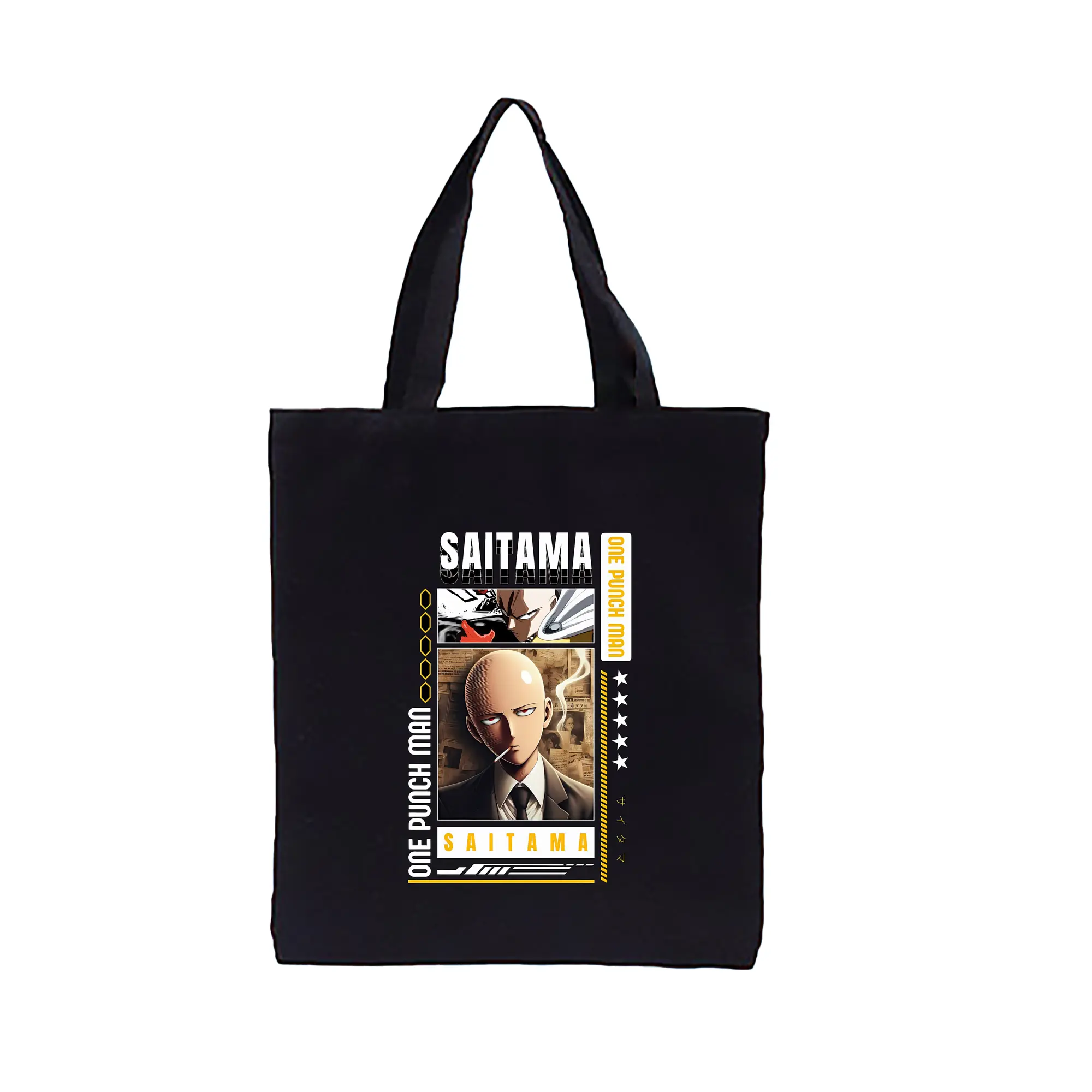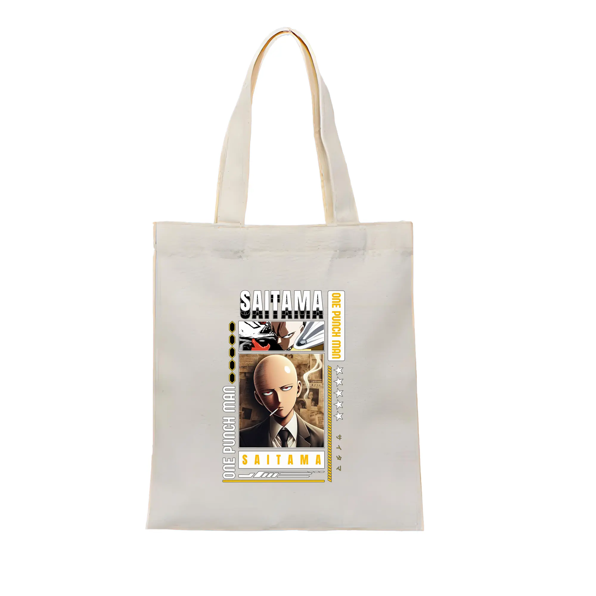 ワンパンマン グッズ サイタマ - 縦型キャンバス手提げバッグ(トートバッグ) ・ キャンバス素材 ・ ショッピング用 ・ 軽量 丈夫 お手入れ簡単