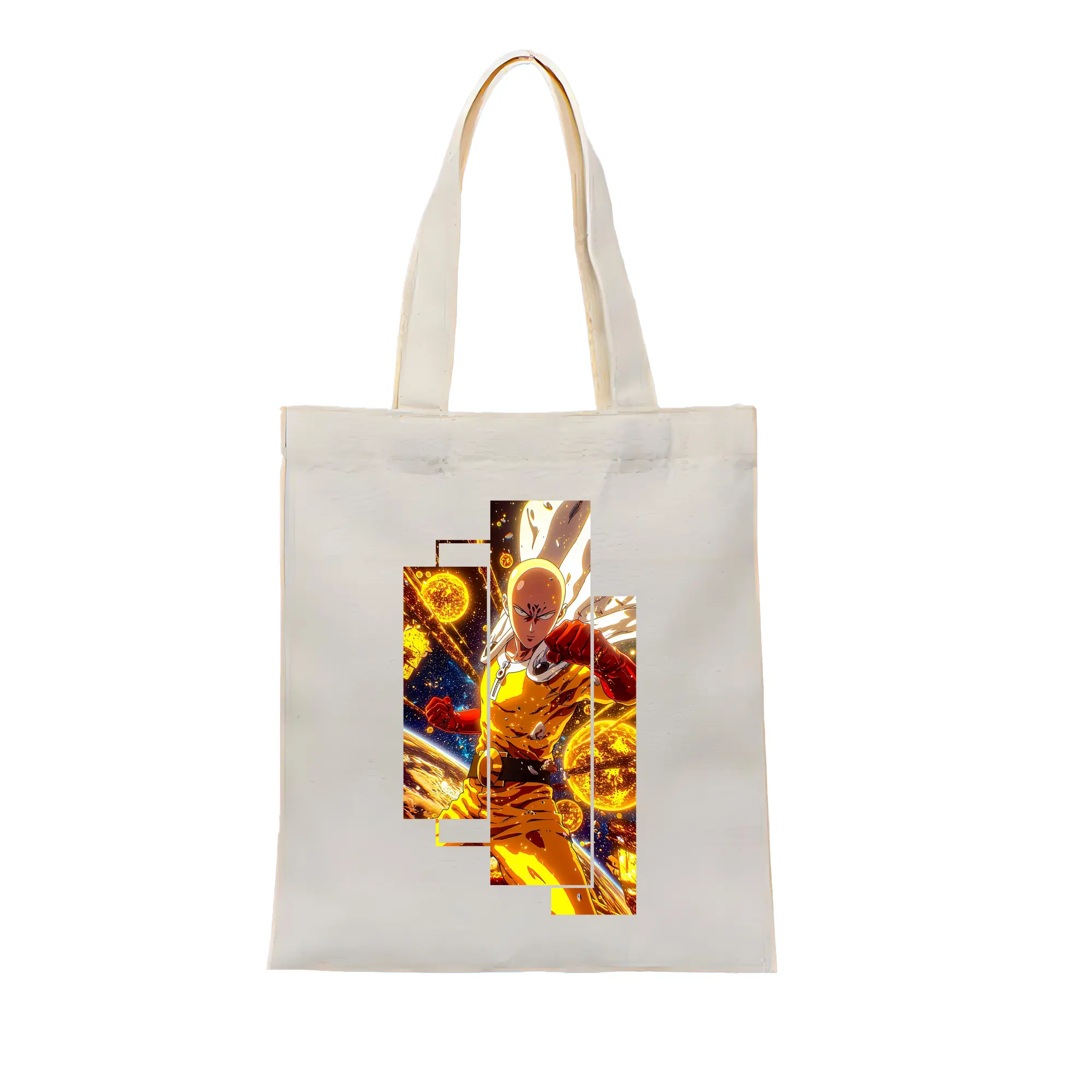 ワンパンマン グッズ サイタマ - 縦型キャンバス手提げバッグ(トートバッグ) ・ キャンバス素材 ・ ショッピング用 ・ 軽量 丈夫 お手入れ簡単