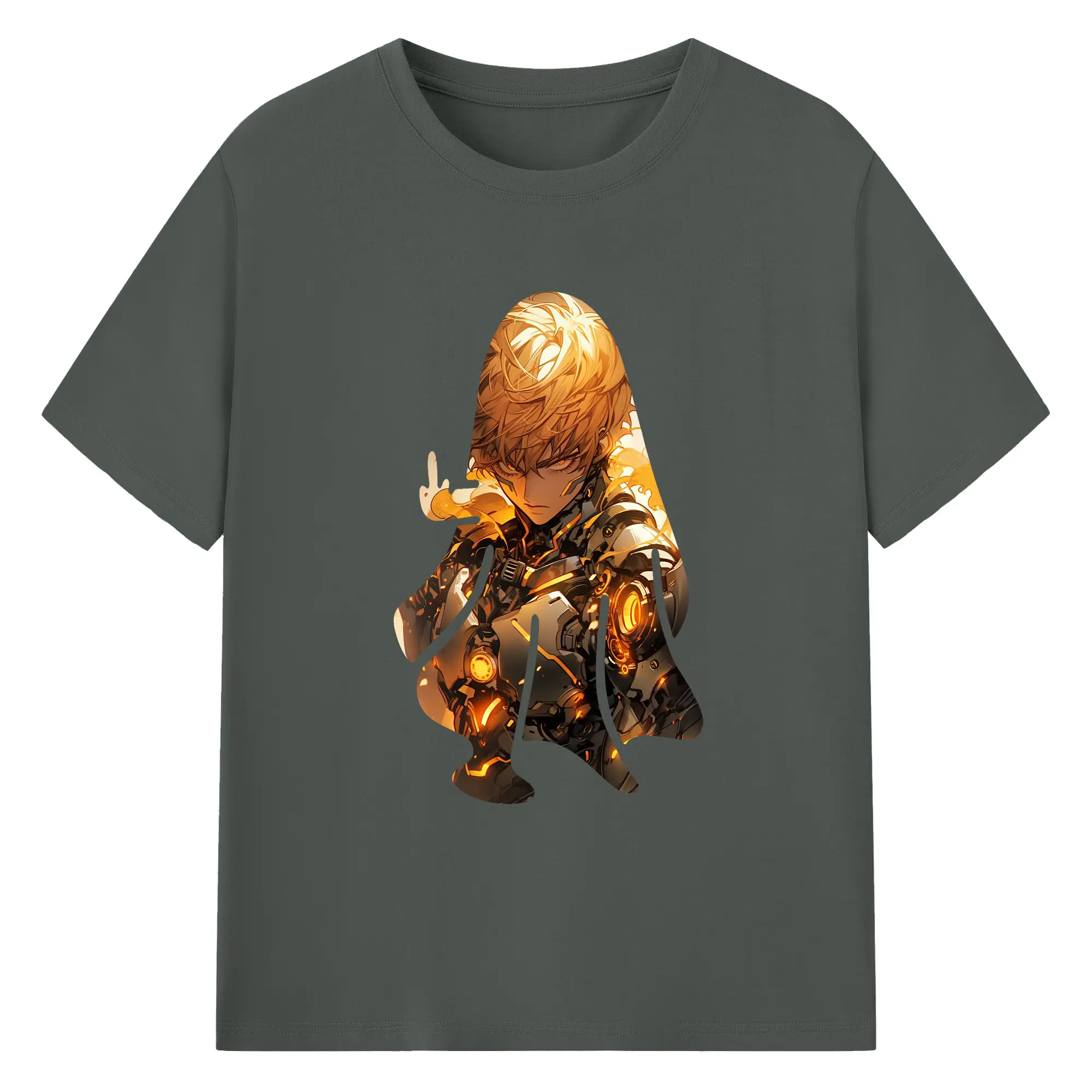 ワンパンマン グッズ ジェノス - 綿100% 半袖Tシャツ ・ バックプリント ・ 快適 通気性 ・ 日常使い 散歩 スポーツ用