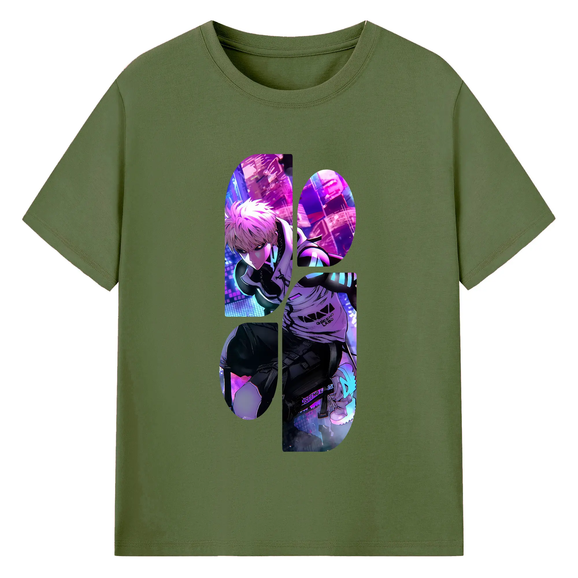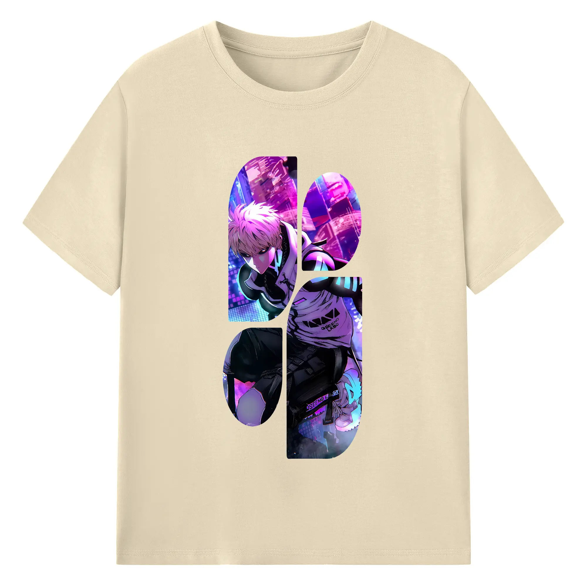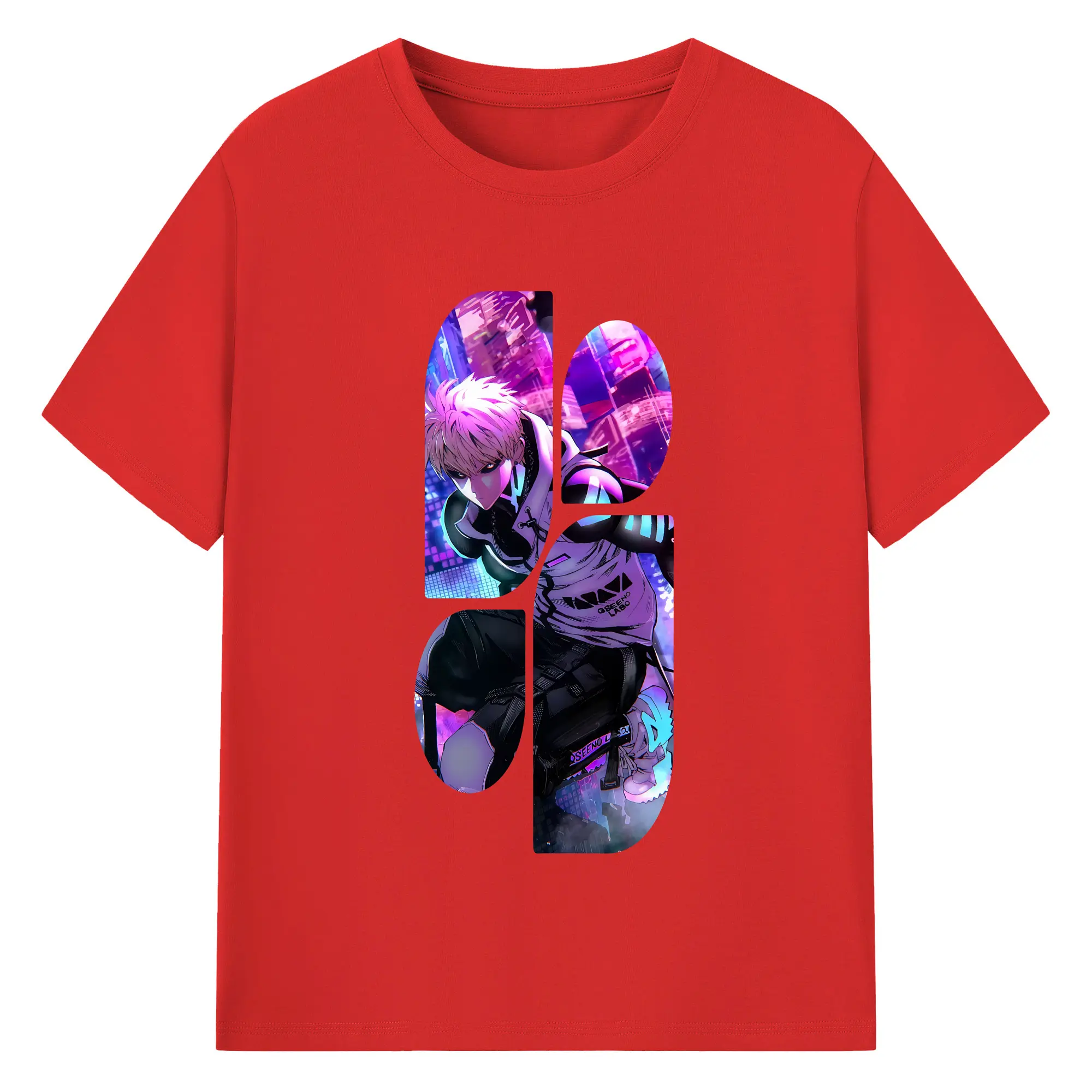 ワンパンマン グッズ ジェノス - 綿100% 半袖Tシャツ ・ バックプリント ・ 快適 通気性 ・ 日常使い 散歩 スポーツ用