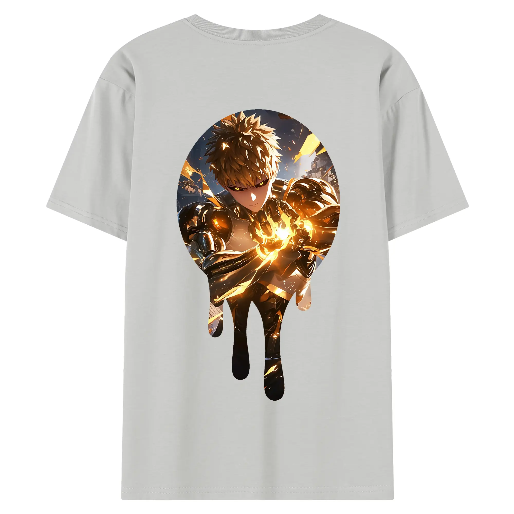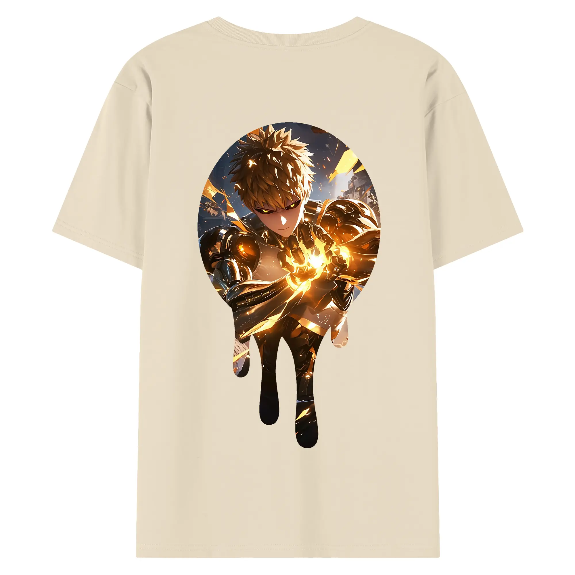 ワンパンマン グッズ ジェノス - 綿100% ヴィンテージ風 半袖Tシャツ ・ 背面プリント ・ 柔らか肌触り ・ 通気性 快適 ・ スポーツ カジュアル 外出用