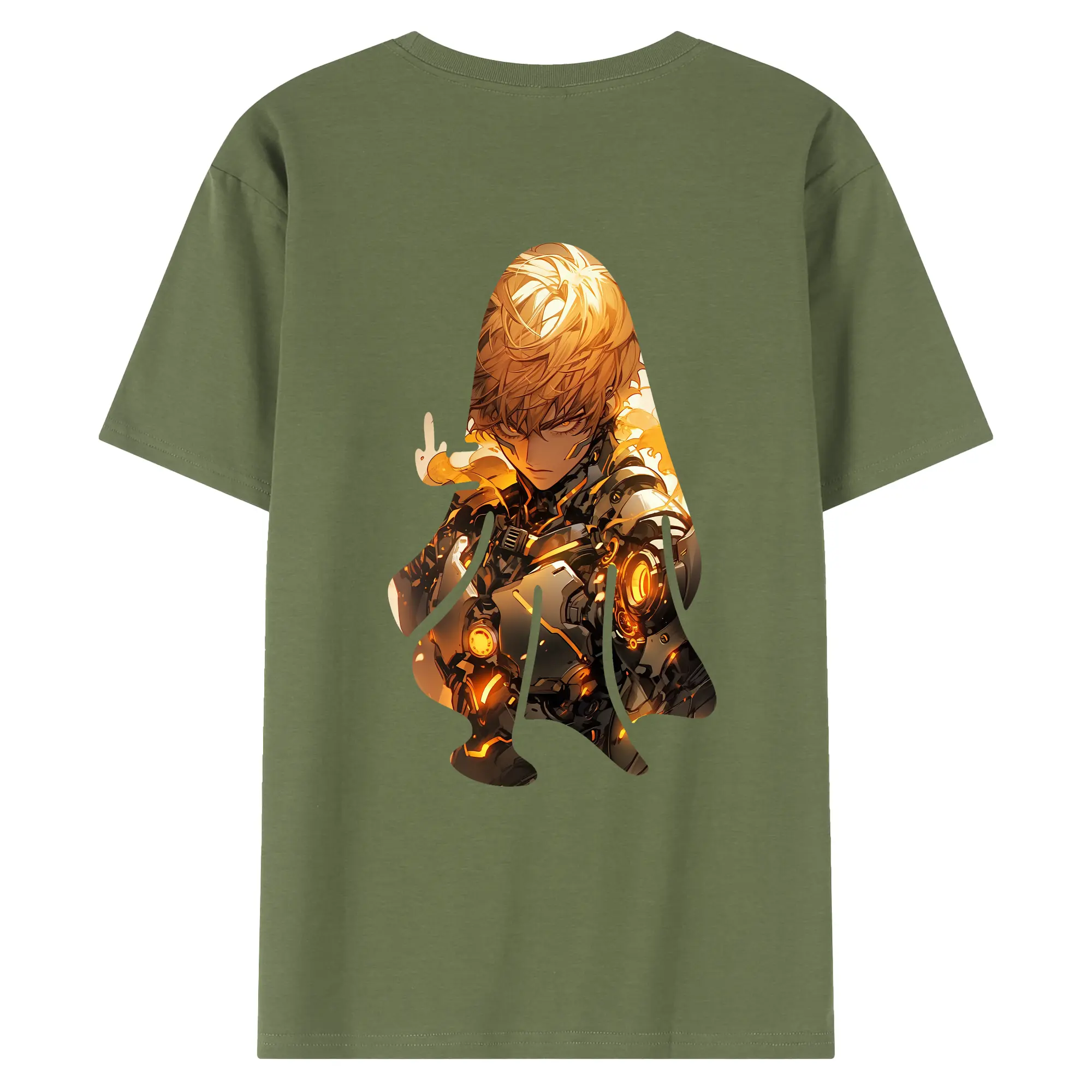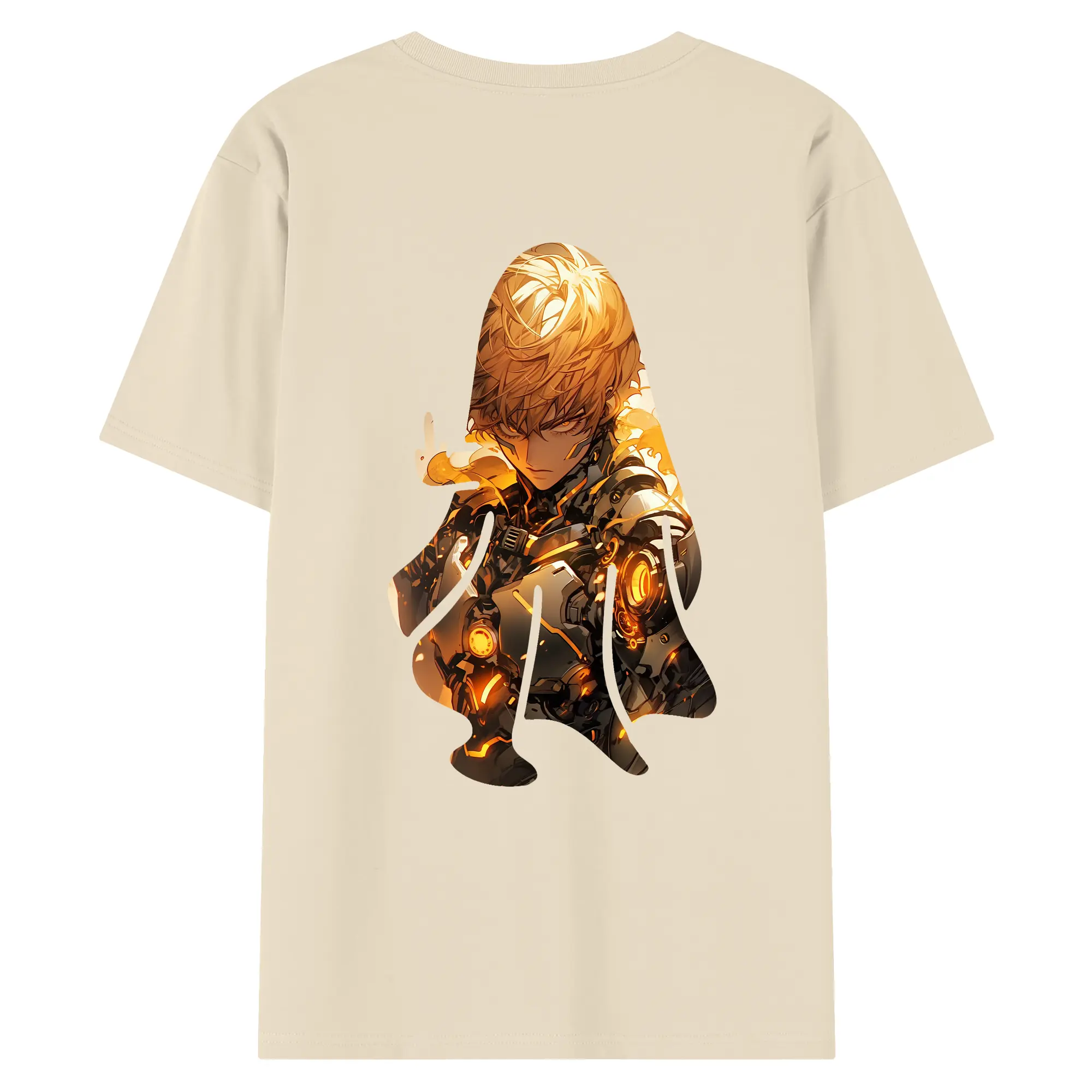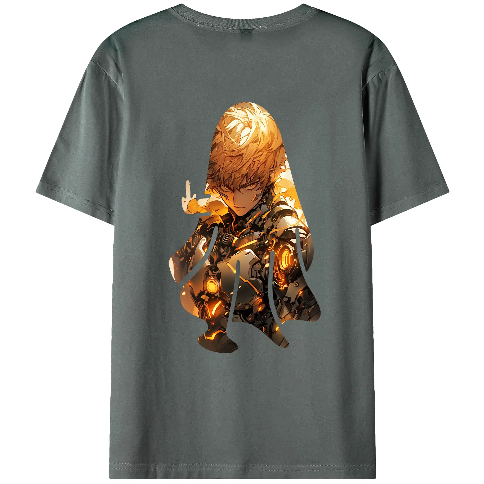 ワンパンマン グッズ ジェノス - 綿100% ヴィンテージ風 半袖Tシャツ ・ 背面プリント ・ 柔らか肌触り ・ 通気性 快適 ・ スポーツ カジュアル 外出用