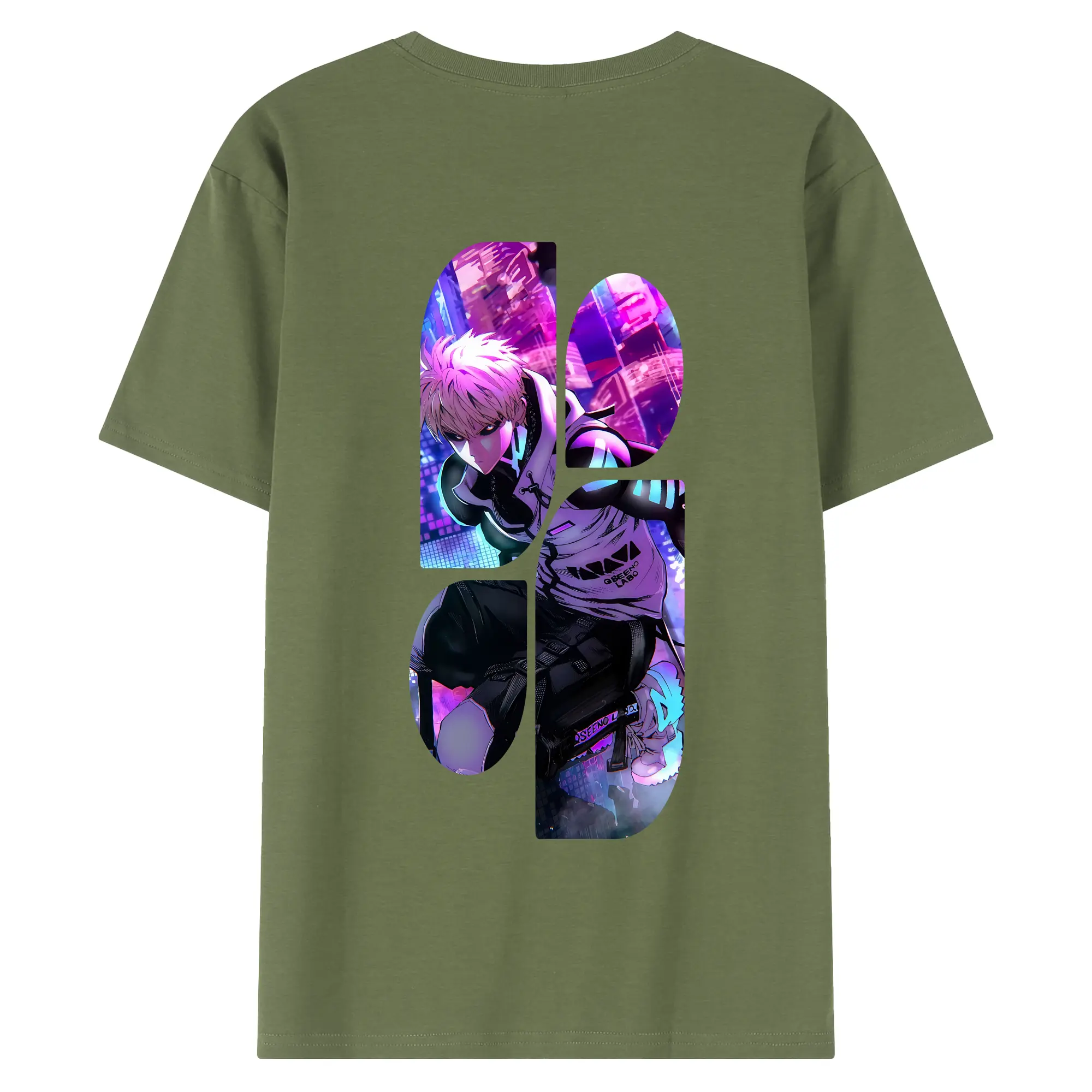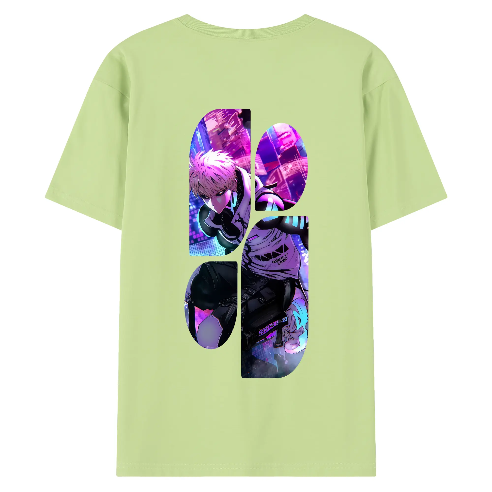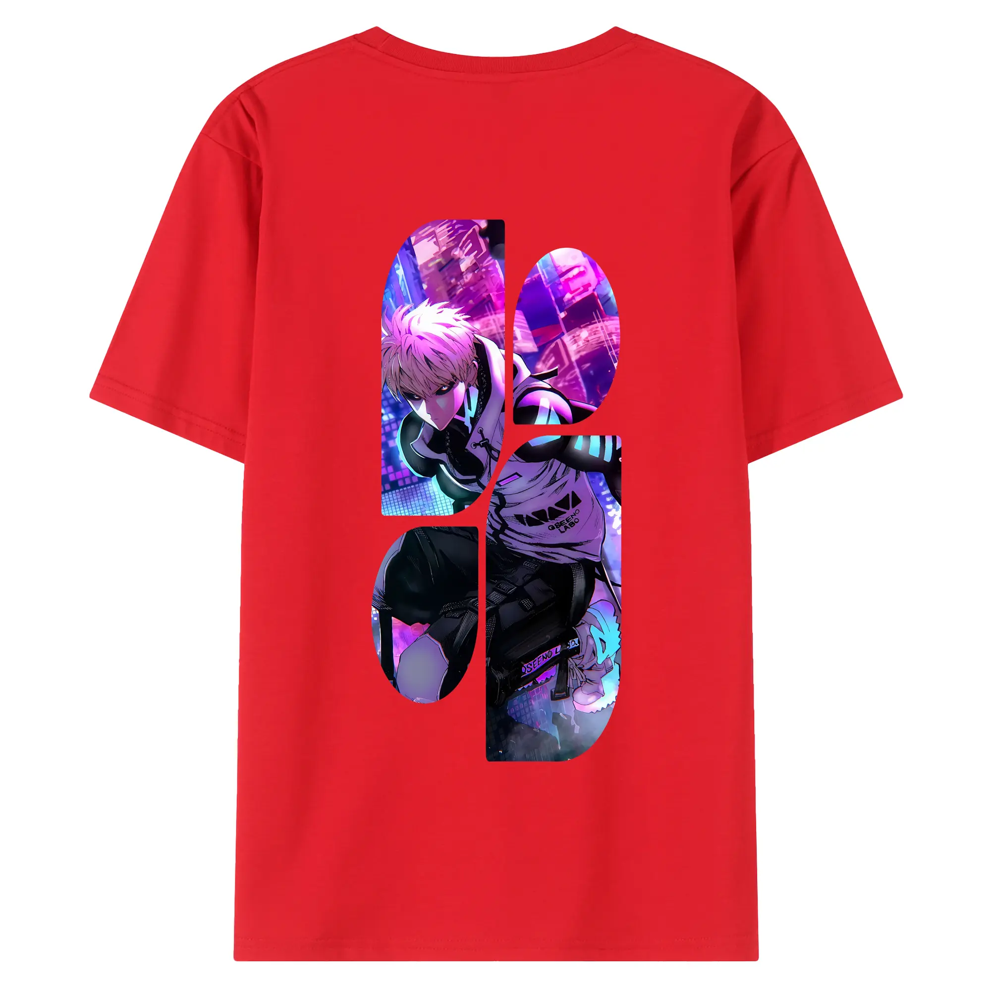 ワンパンマン グッズ ジェノス - 綿100% 半袖Tシャツ ・ フロントプリント ・ 快適 通気性 ・ 日常使い 散歩 スポーツ用