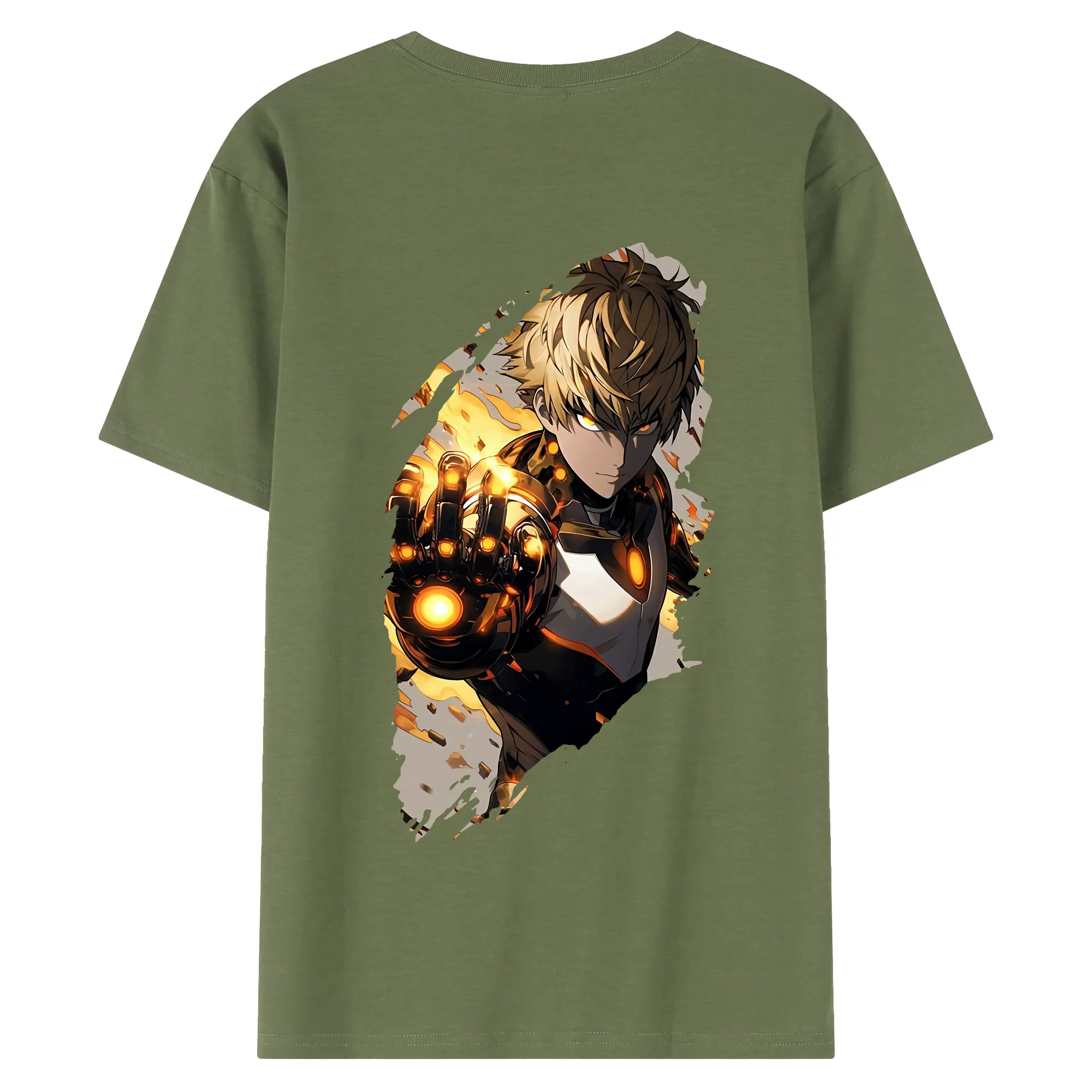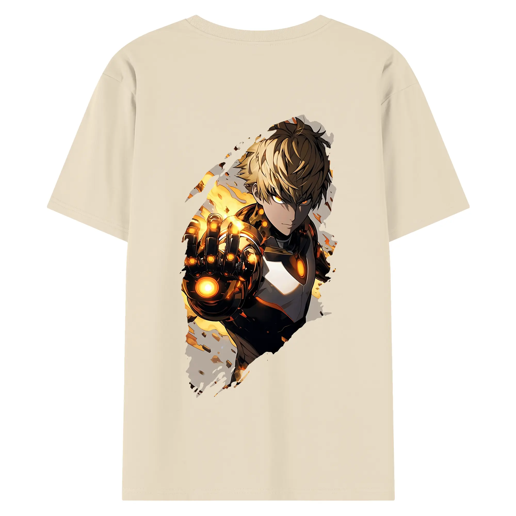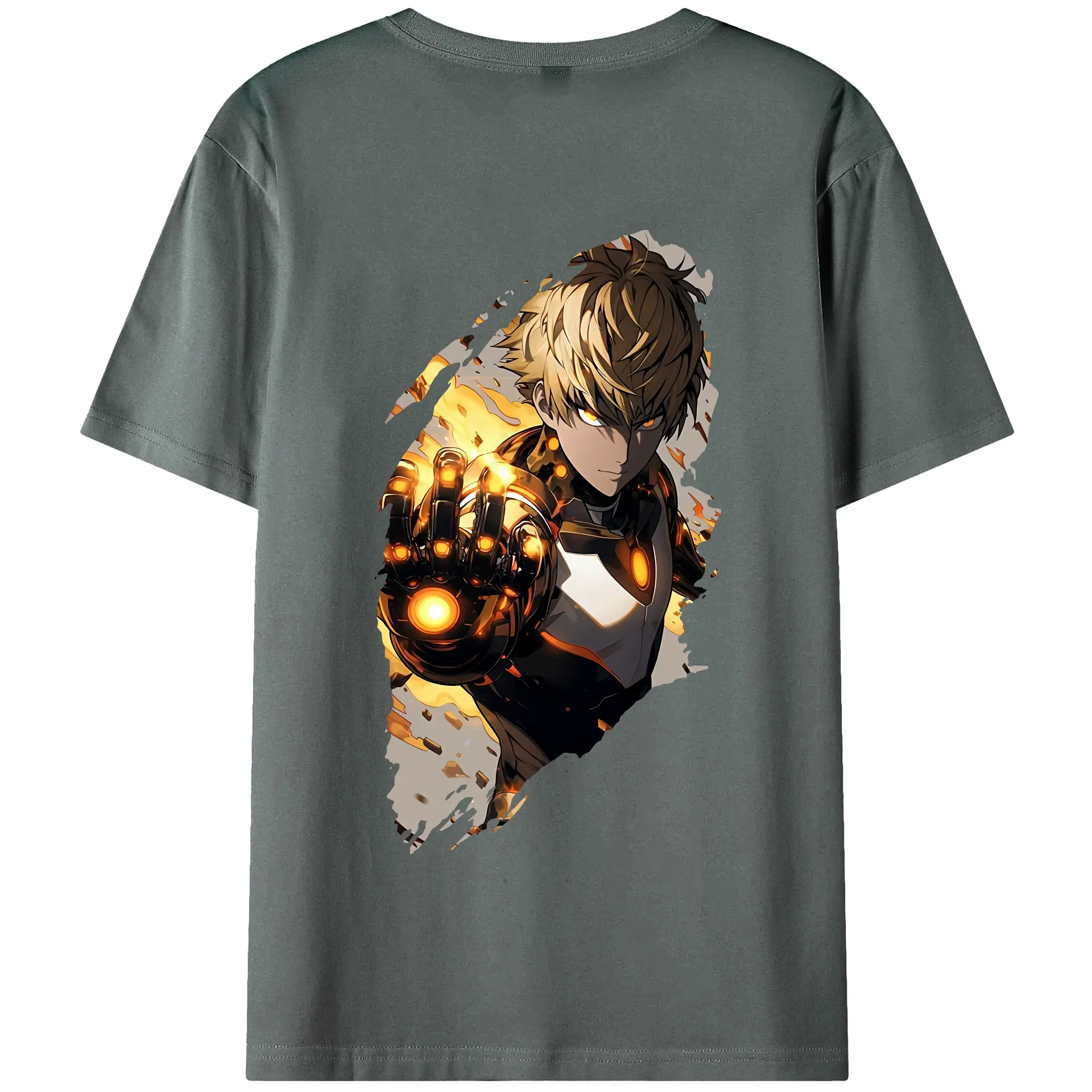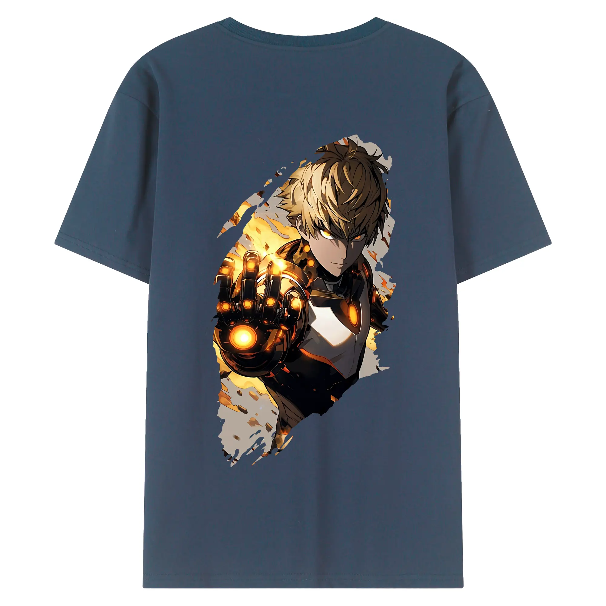 ワンパンマン グッズ ジェノス - 綿100% ヴィンテージ風 半袖Tシャツ ・ 背面プリント ・ 柔らか肌触り ・ 通気性 快適 ・ スポーツ カジュアル 外出用
