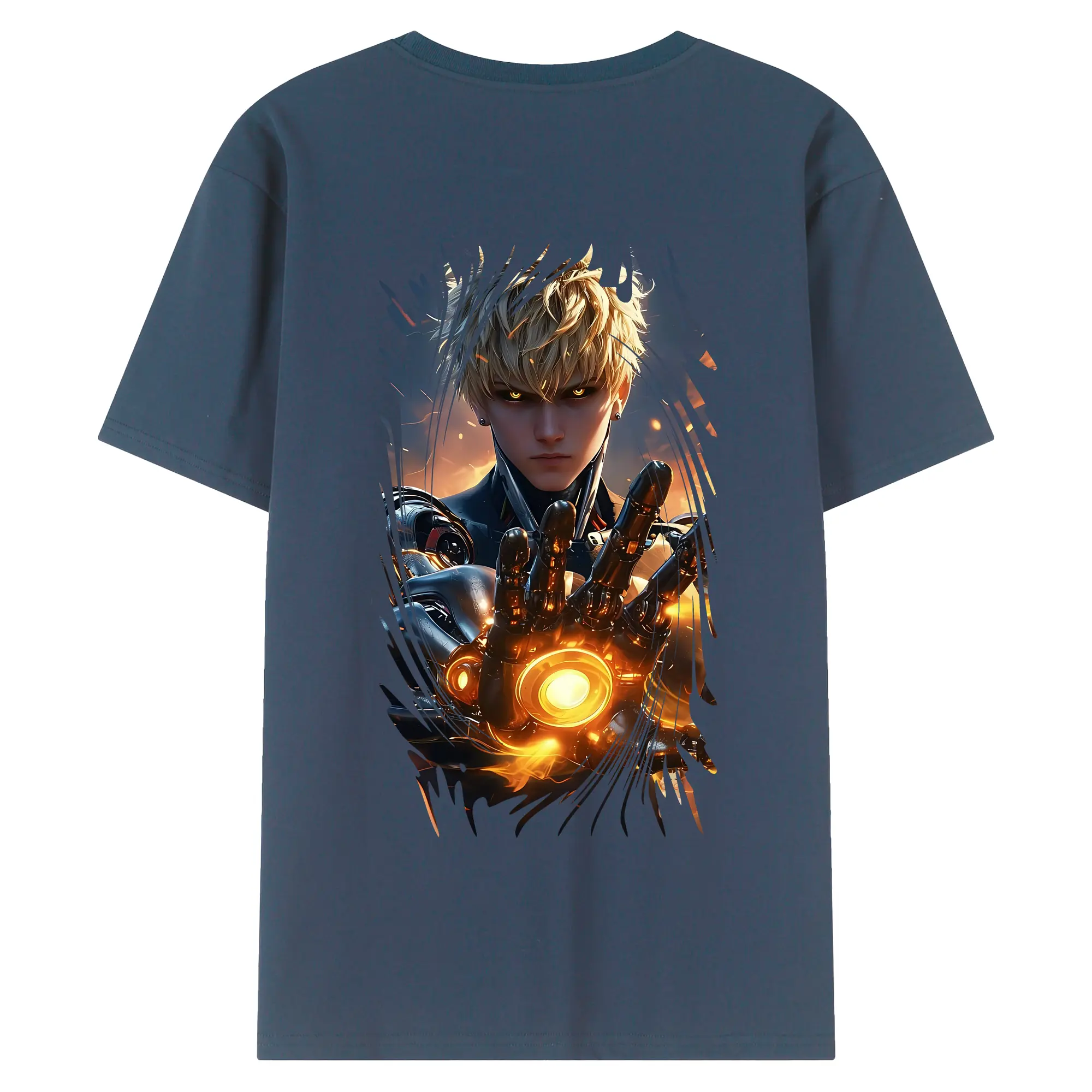 ワンパンマン グッズ ジェノス - 綿100% ヴィンテージ風 半袖Tシャツ ・ 背面プリント ・ 柔らか肌触り ・ 通気性 快適 ・ スポーツ カジュアル 外出用