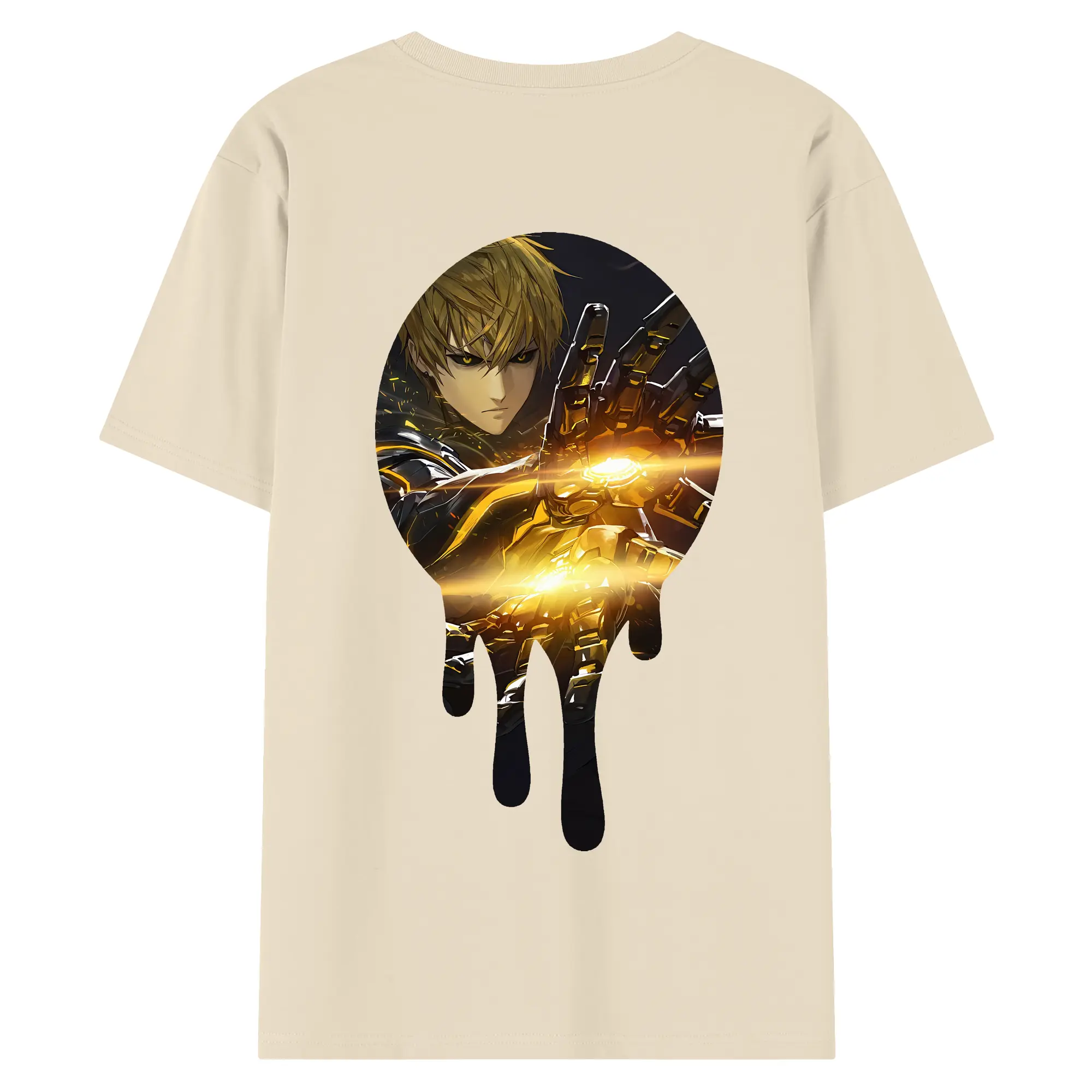 ワンパンマン グッズ ジェノス - 綿100% ヴィンテージ風 半袖Tシャツ ・ 背面プリント ・ 柔らか肌触り ・ 通気性 快適 ・ スポーツ カジュアル 外出用