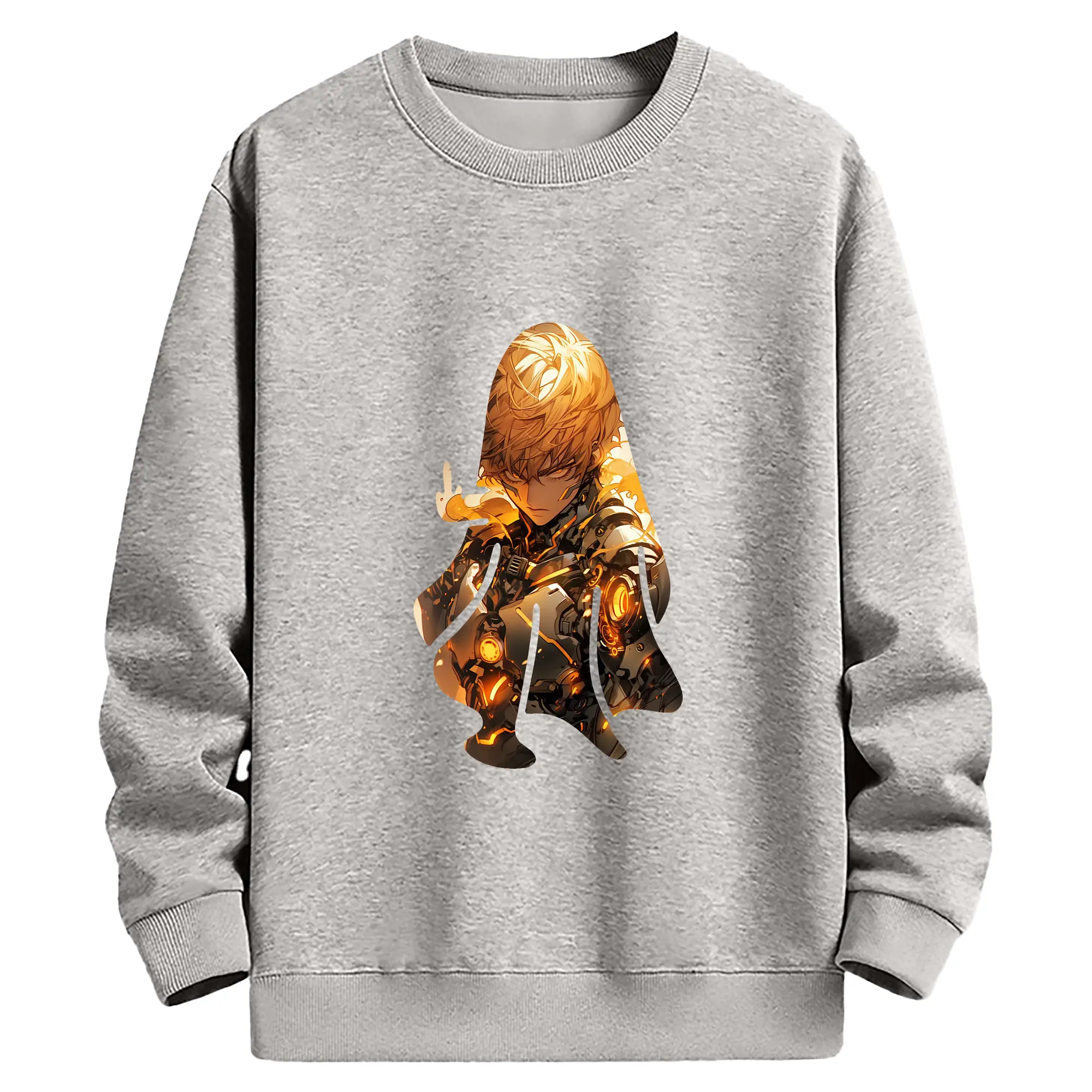 ワンパンマン グッズ ジェノス - 薄手 クルーネック スウェット 裏毛260g · ポリエステル 春秋向け カジュアル 男女兼用 · トレーナー デイリー スポーツ 散歩に最適