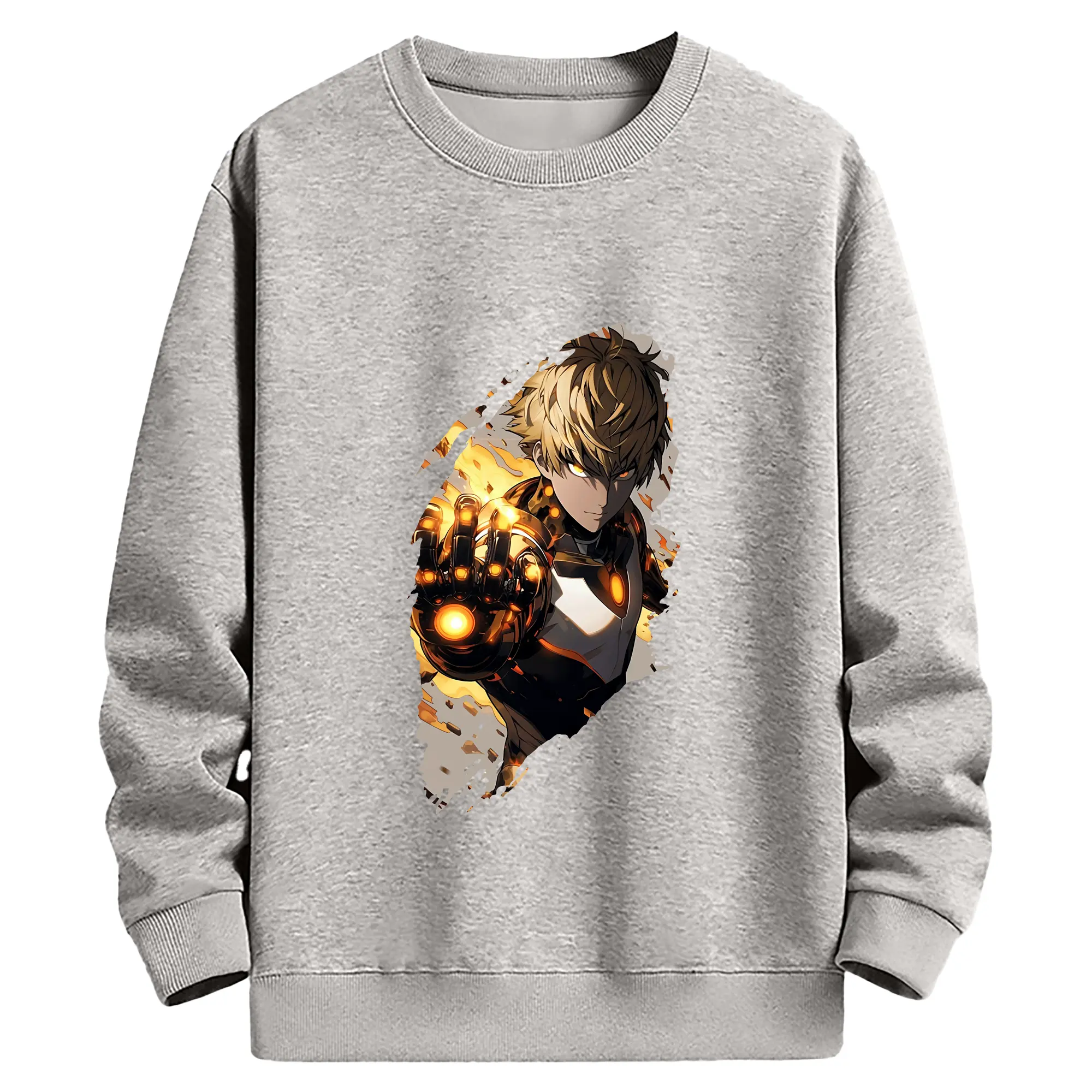 ワンパンマン グッズ ジェノス - 薄手 クルーネック スウェット 裏毛260g · ポリエステル 春秋向け カジュアル 男女兼用 · トレーナー デイリー スポーツ 散歩に最適