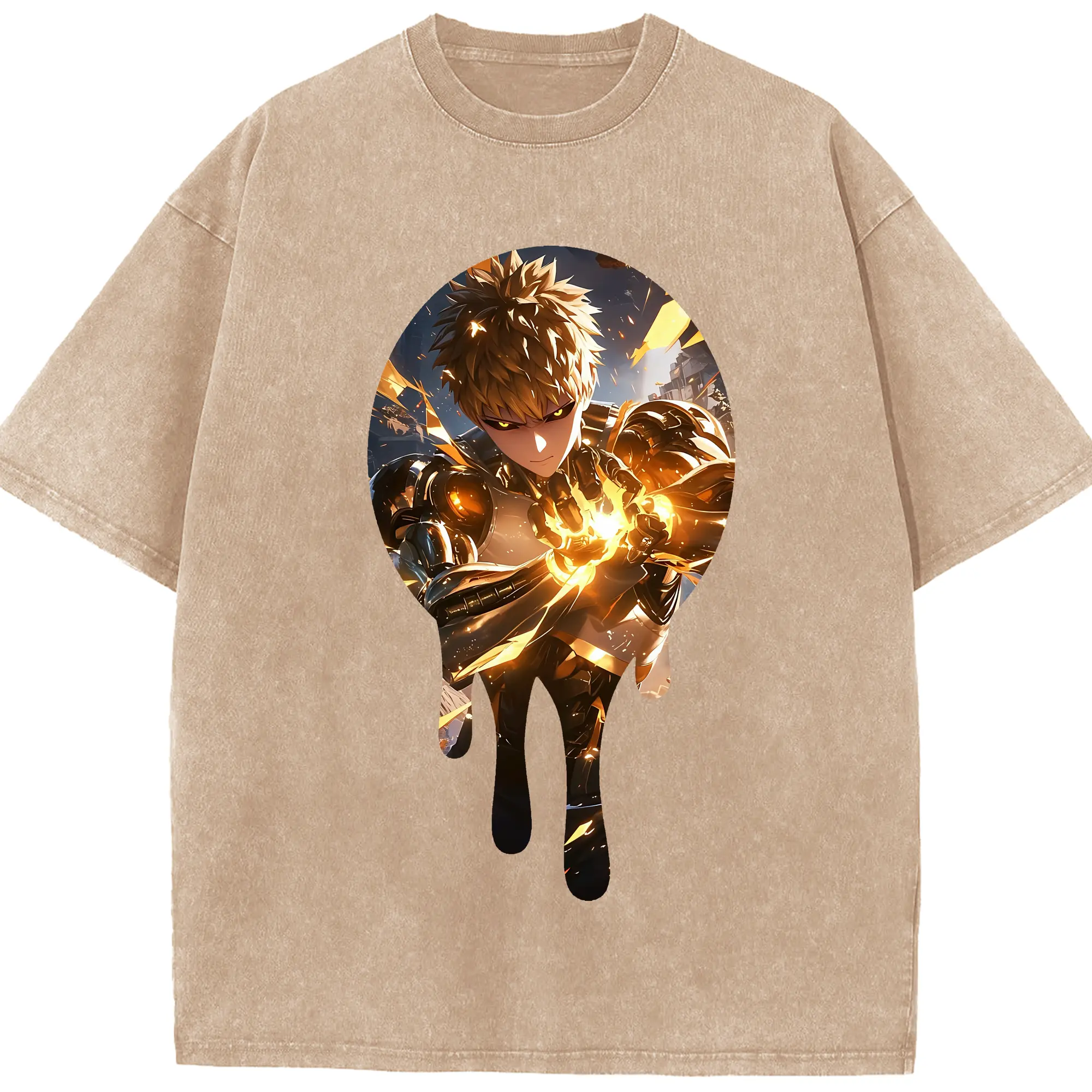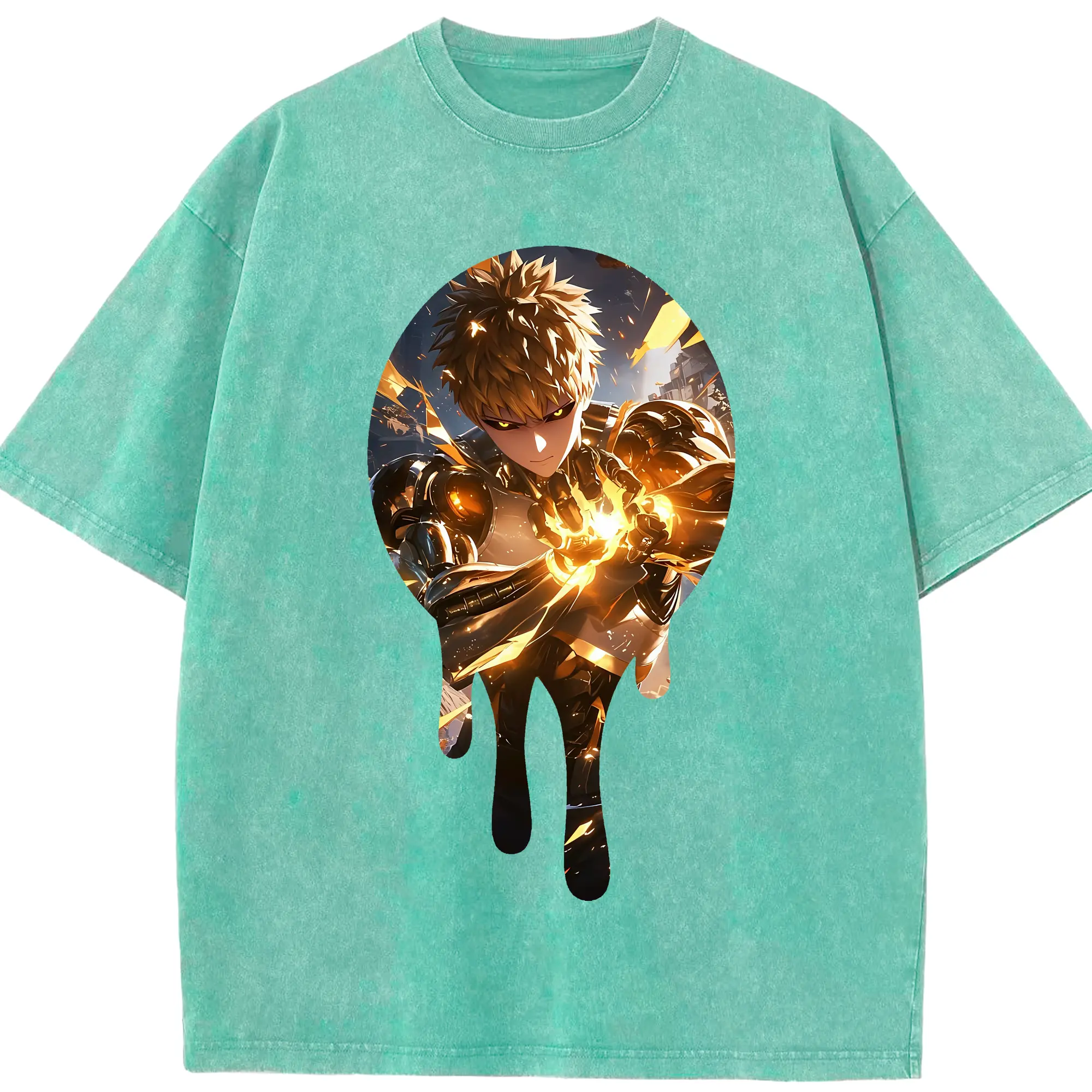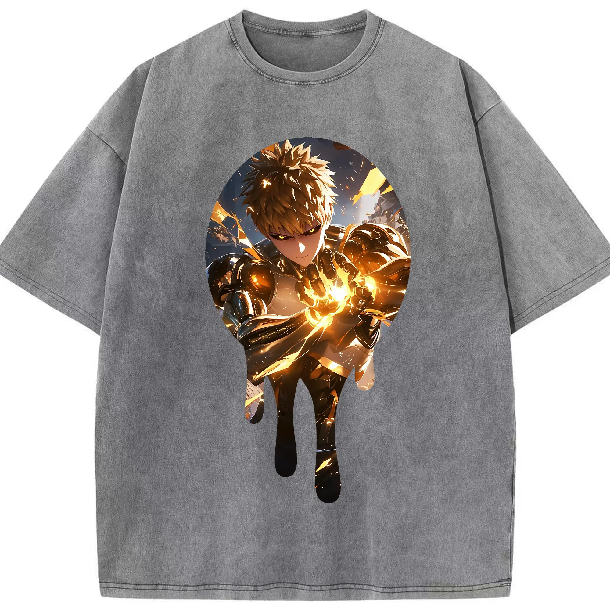 ワンパンマン グッズ ジェノス - 綿100% ヴィンテージ風 半袖Tシャツ ・ 背面プリント ・ 柔らか肌触り ・ 通気性 快適 ・ スポーツ カジュアル 外出用