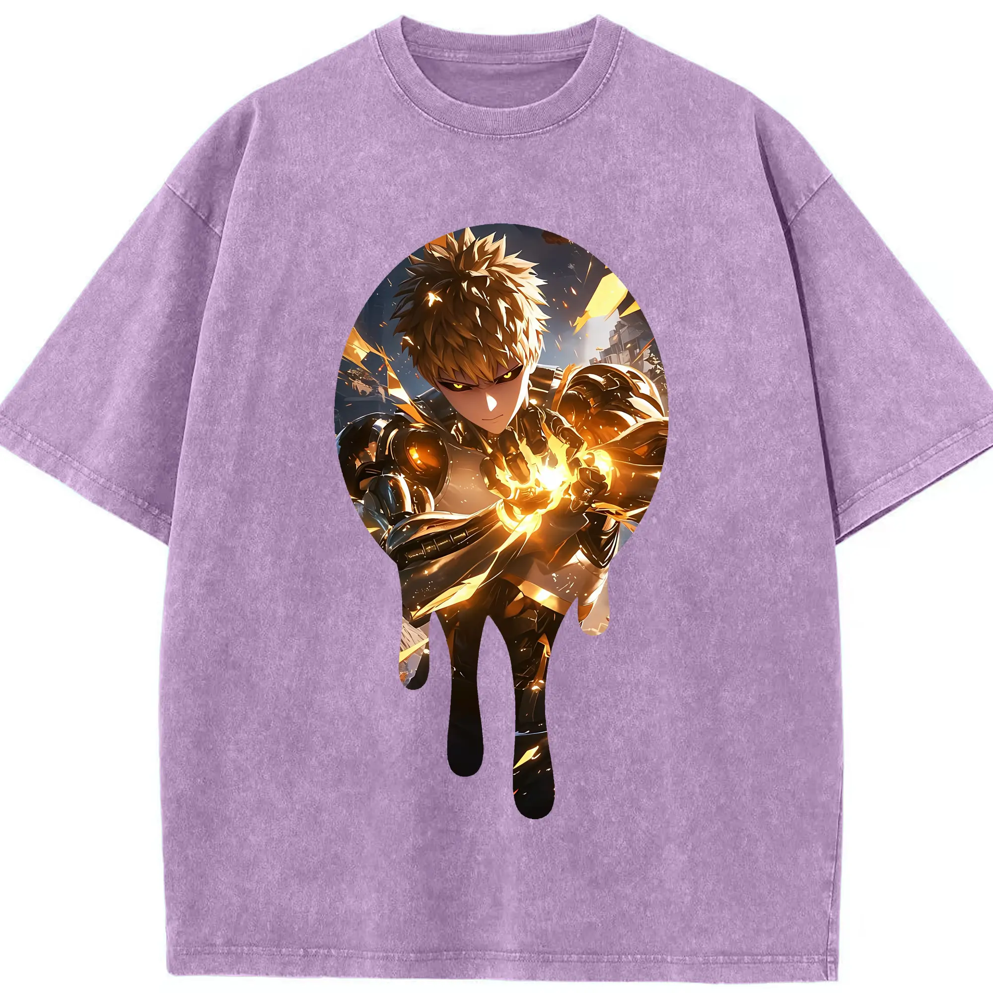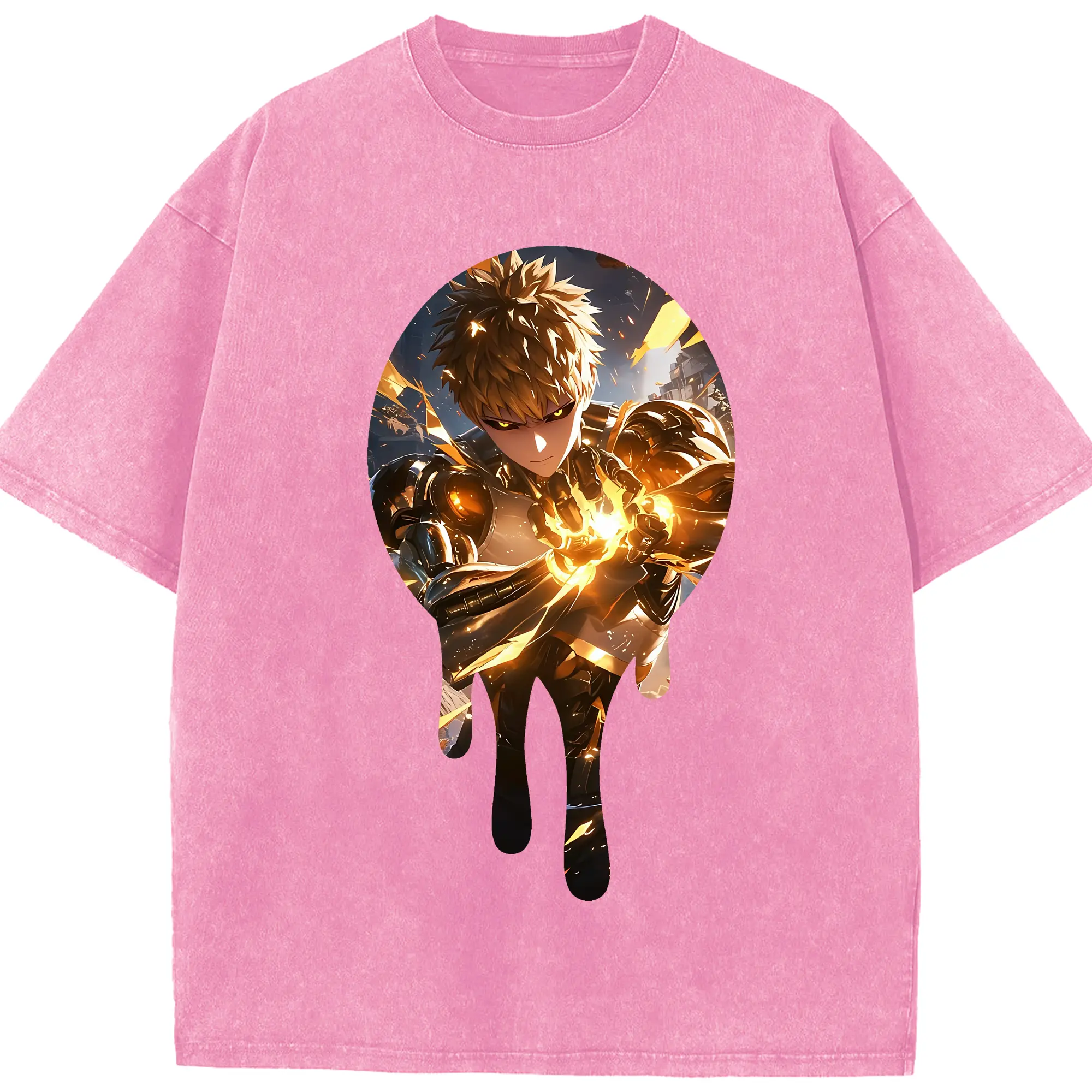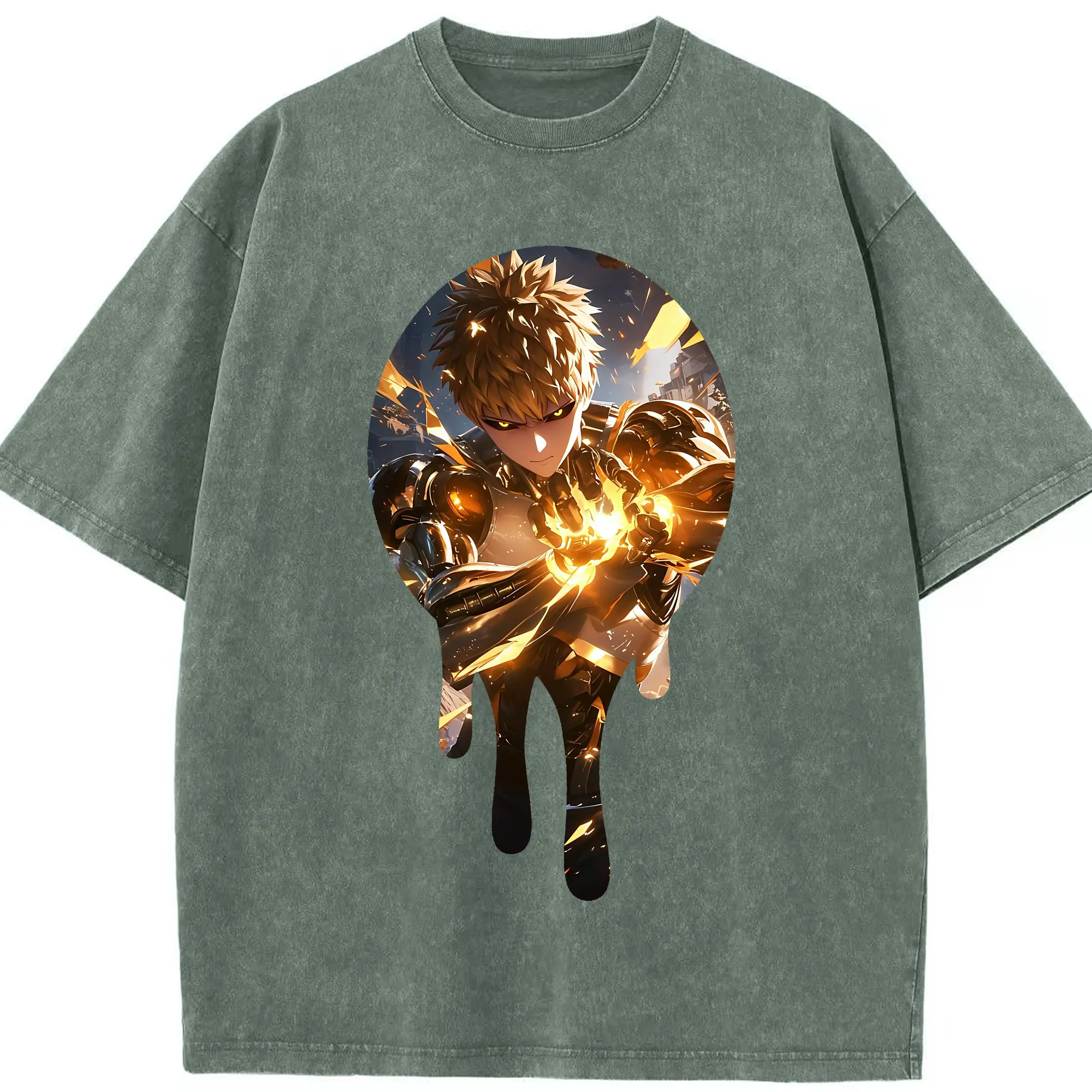 ワンパンマン グッズ ジェノス - 綿100% ヴィンテージ風 半袖Tシャツ ・ 背面プリント ・ 柔らか肌触り ・ 通気性 快適 ・ スポーツ カジュアル 外出用