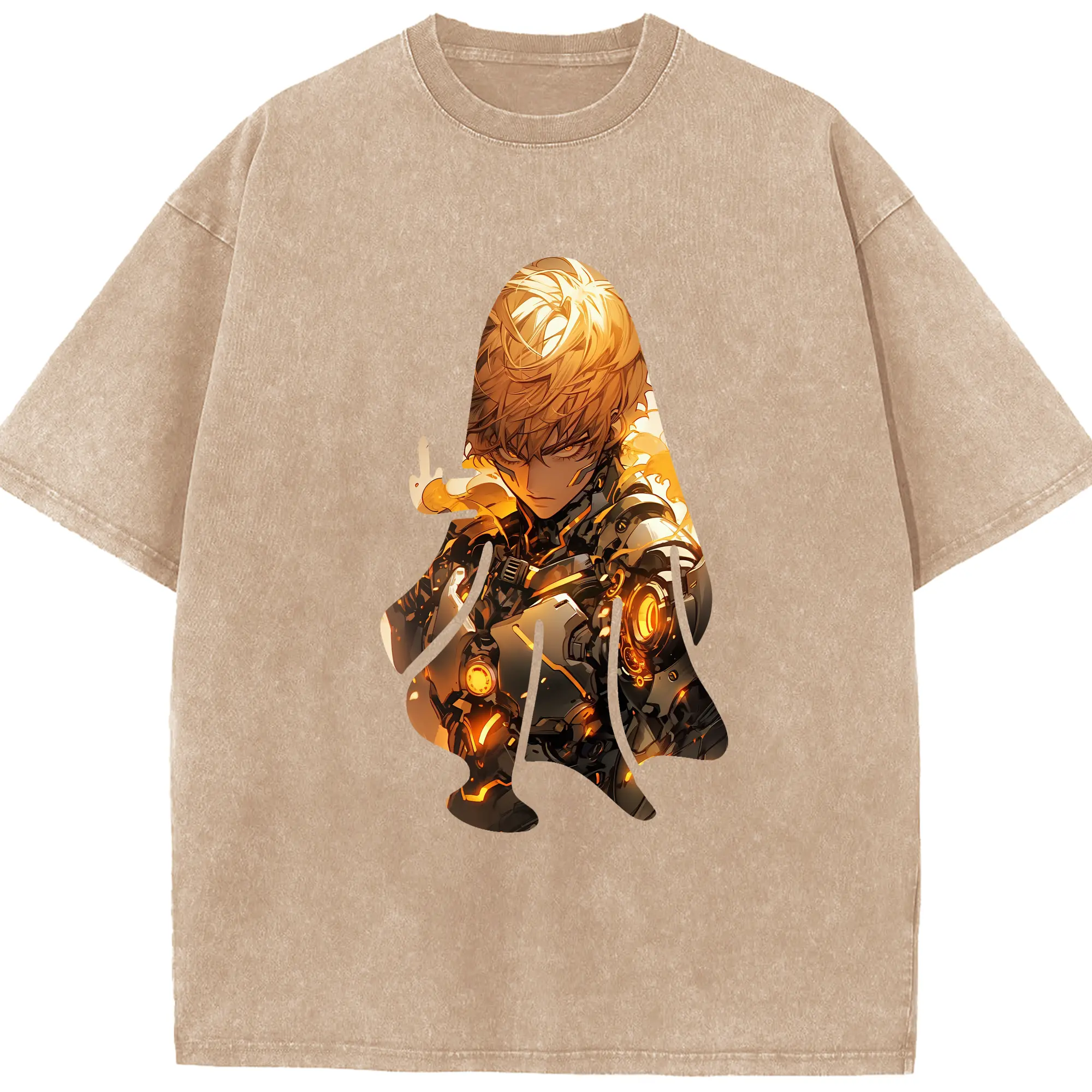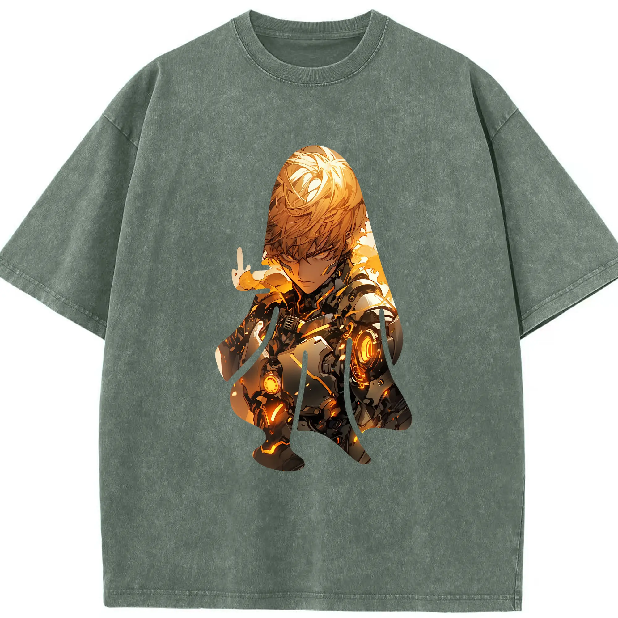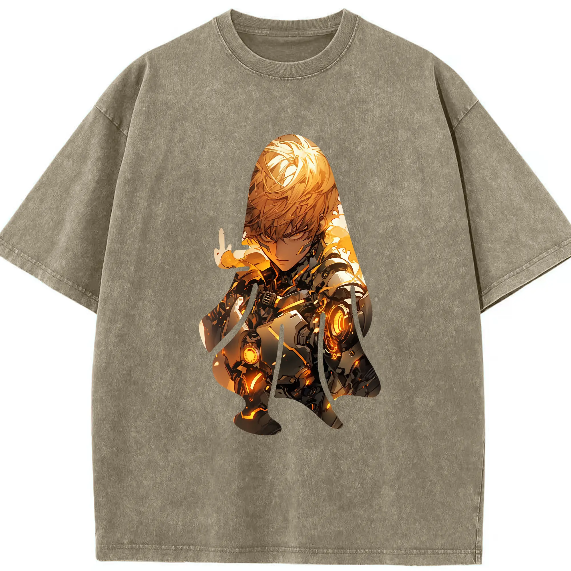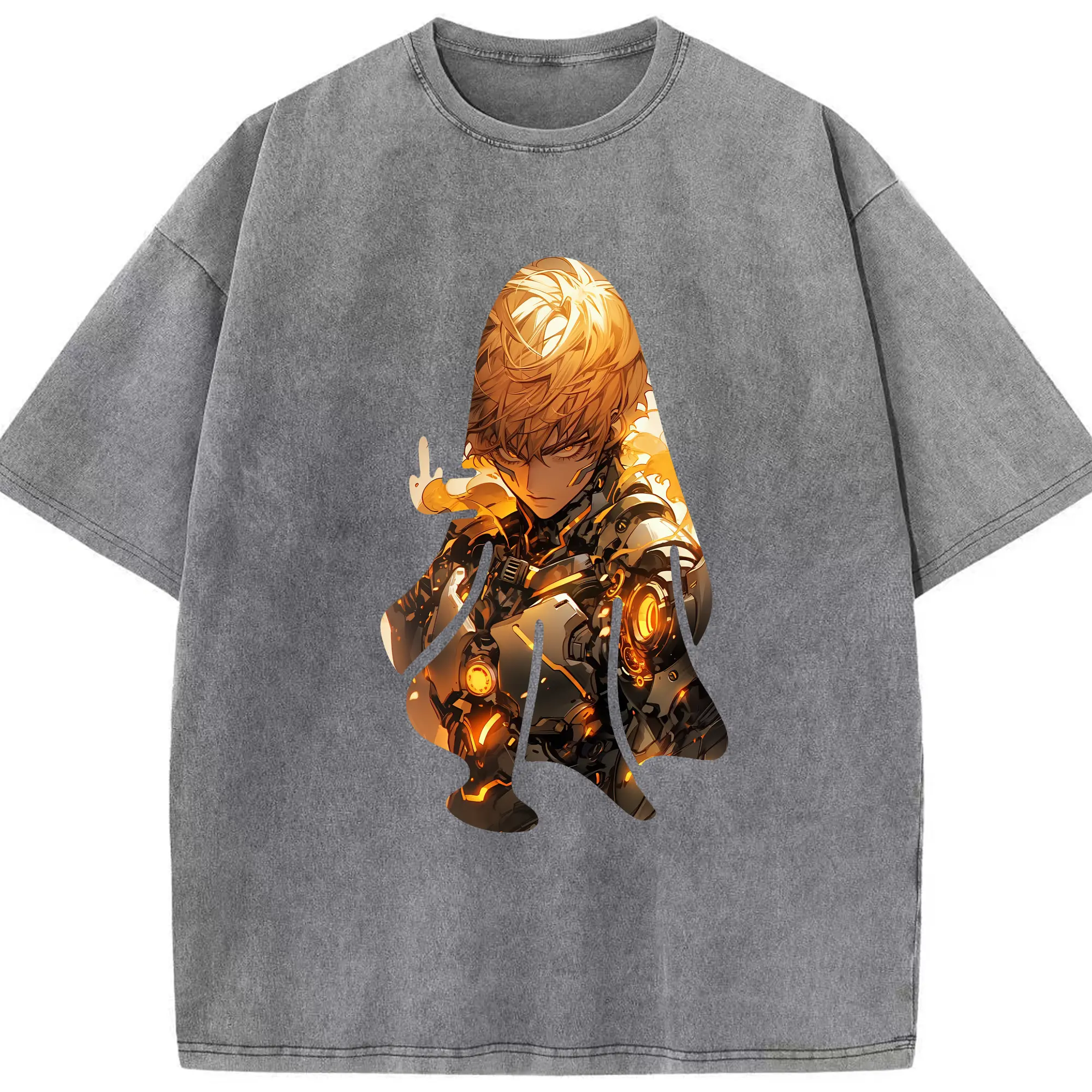 ワンパンマン グッズ ジェノス - 綿100% ヴィンテージ風 半袖Tシャツ ・ 背面プリント ・ 柔らか肌触り ・ 通気性 快適 ・ スポーツ カジュアル 外出用