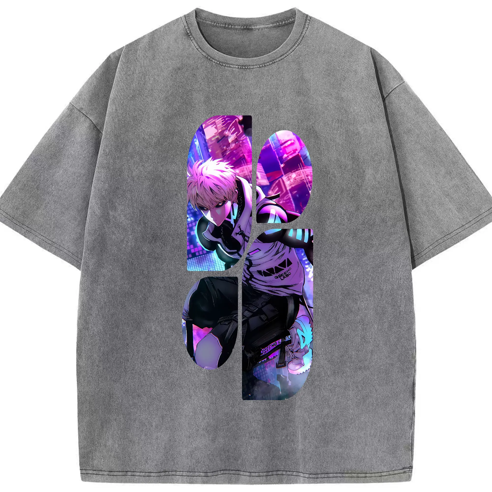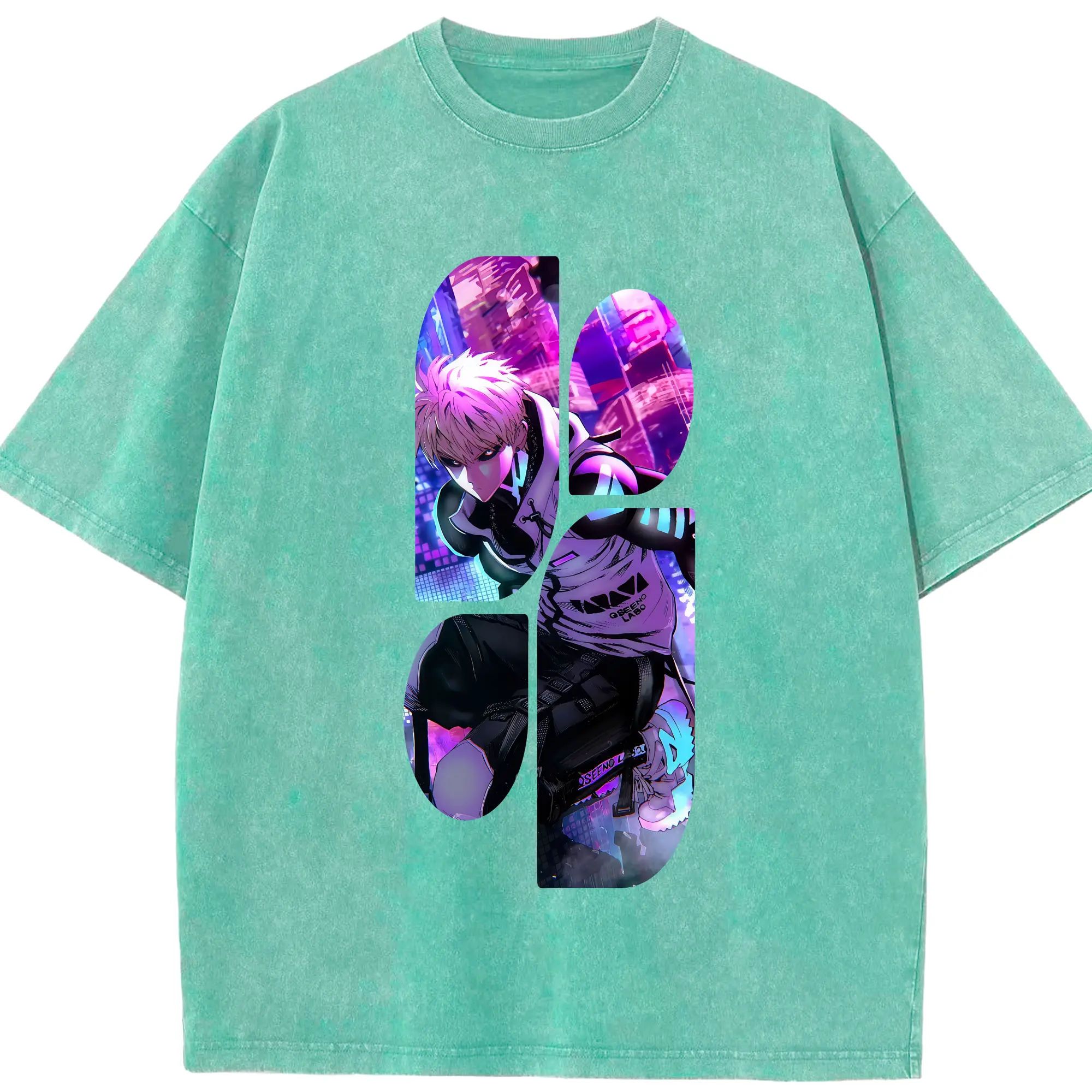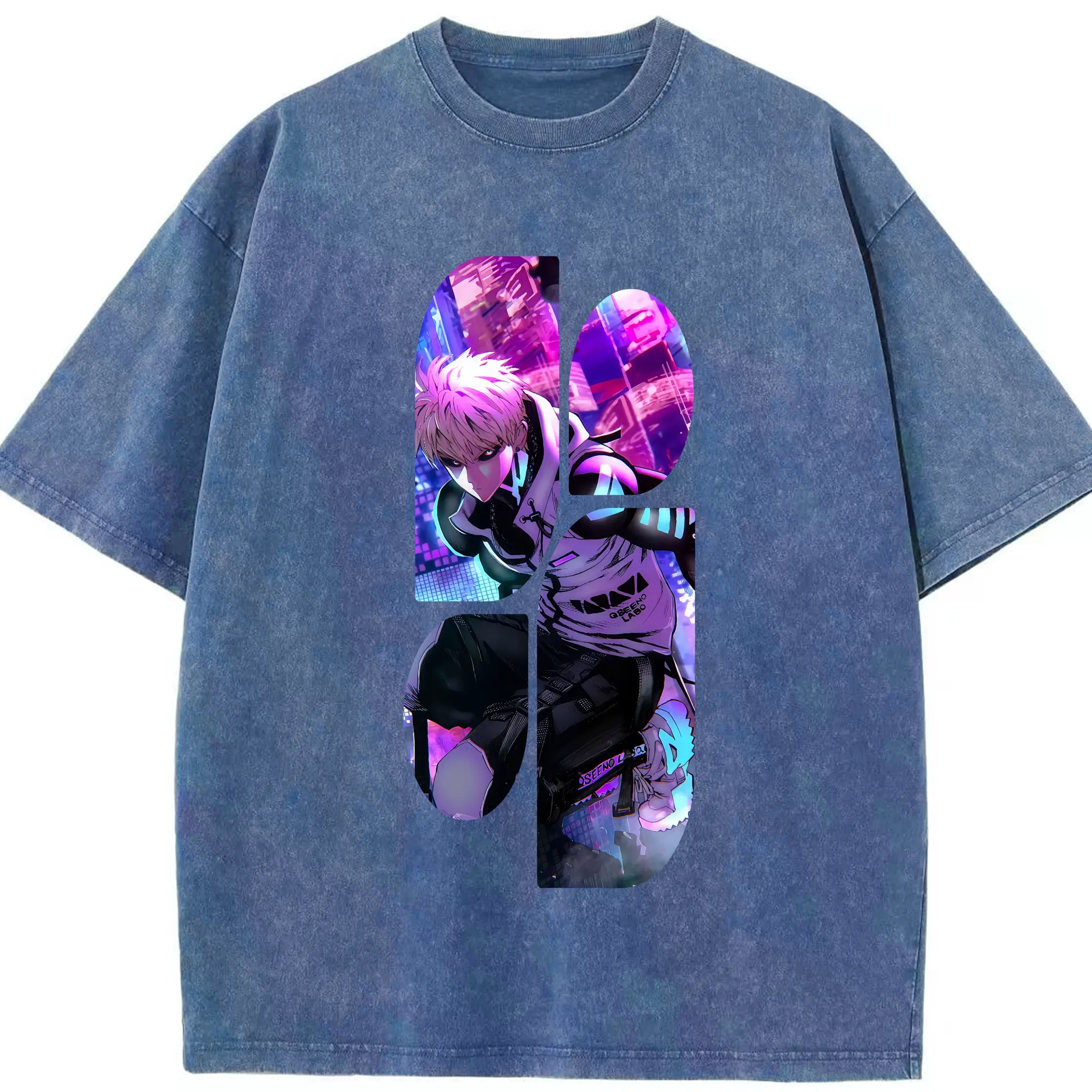 ワンパンマン グッズ ジェノス - 綿100% ヴィンテージ風 半袖Tシャツ ・ 背面プリント ・ 柔らか肌触り ・ 通気性 快適 ・ スポーツ カジュアル 外出用