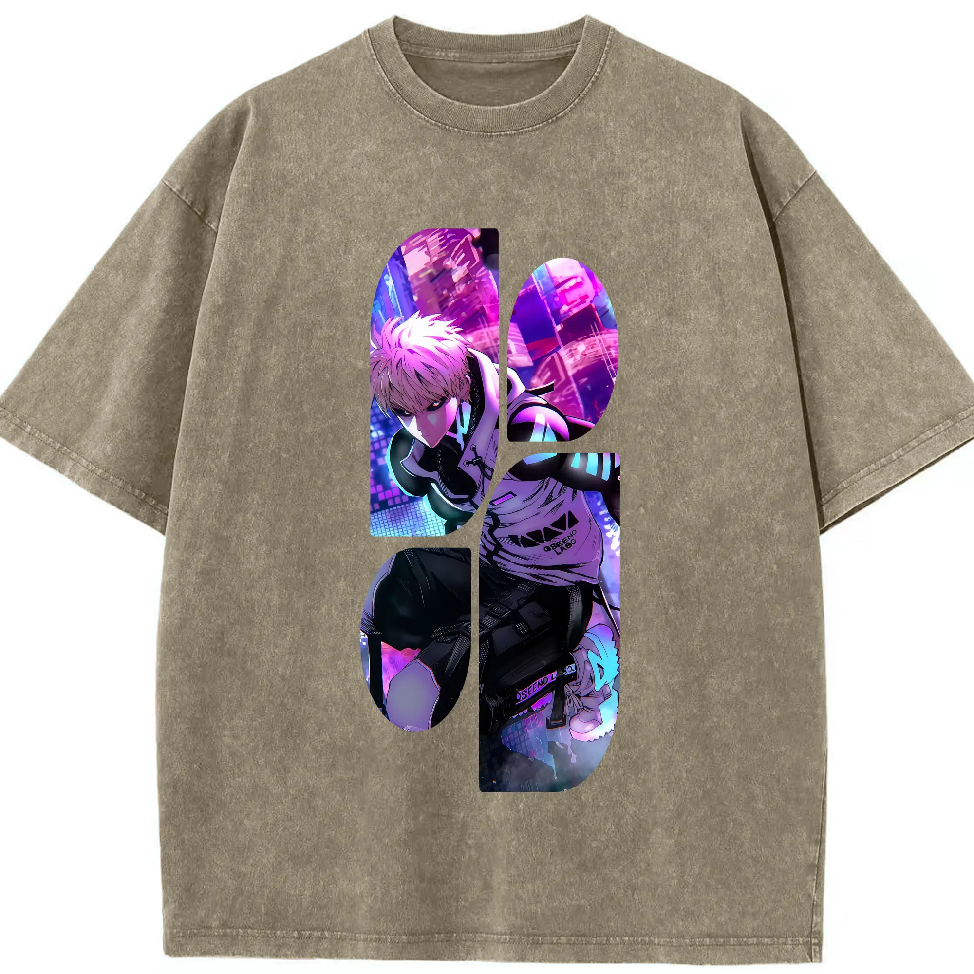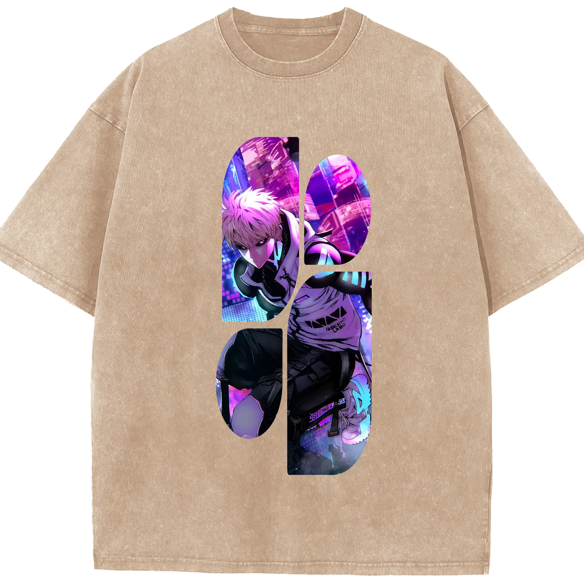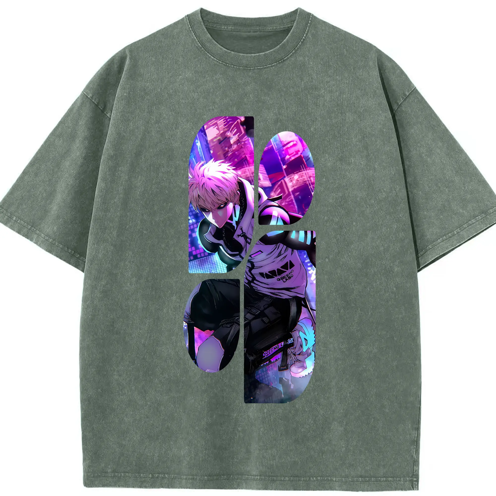 ワンパンマン グッズ ジェノス - 綿100% ヴィンテージ風 半袖Tシャツ ・ 背面プリント ・ 柔らか肌触り ・ 通気性 快適 ・ スポーツ カジュアル 外出用