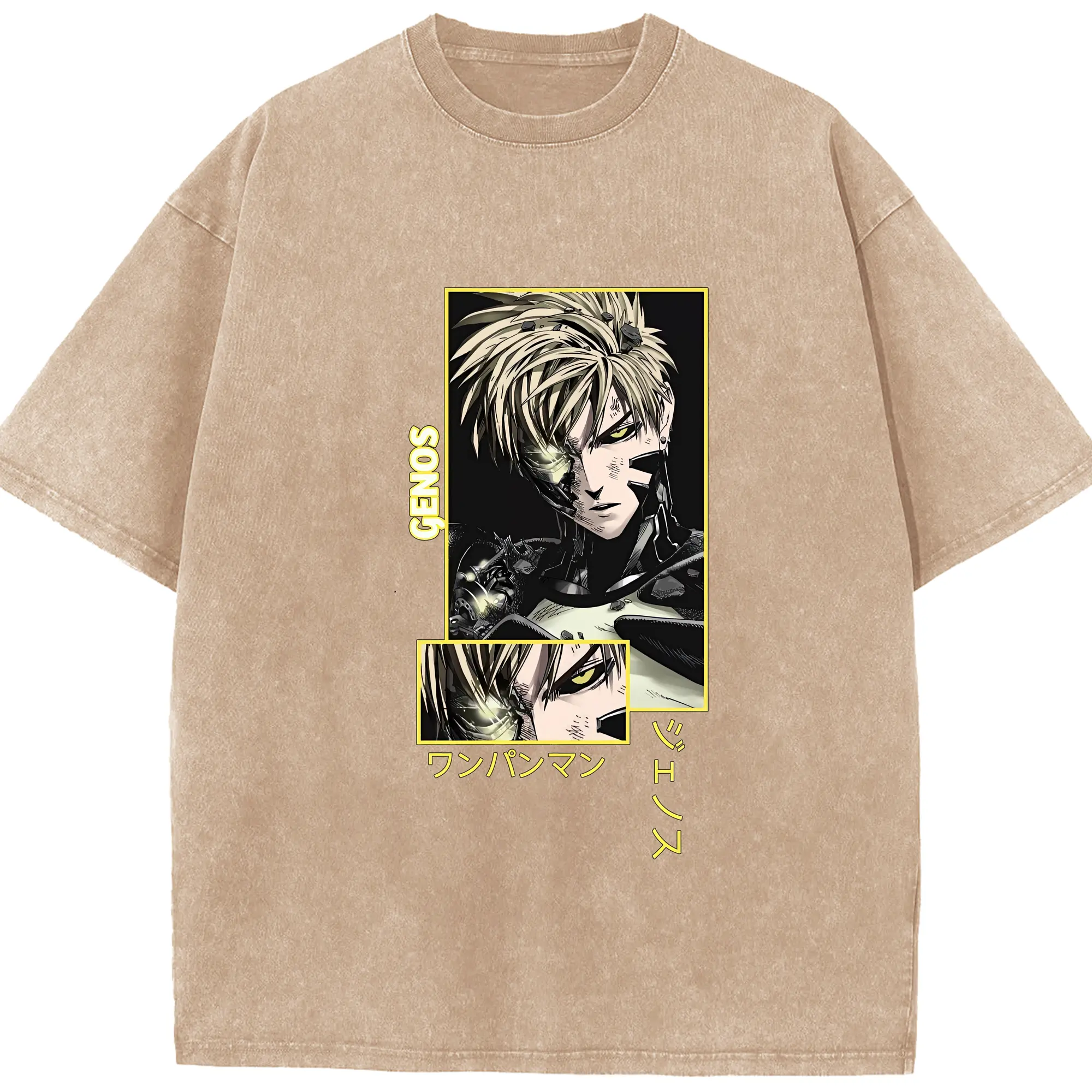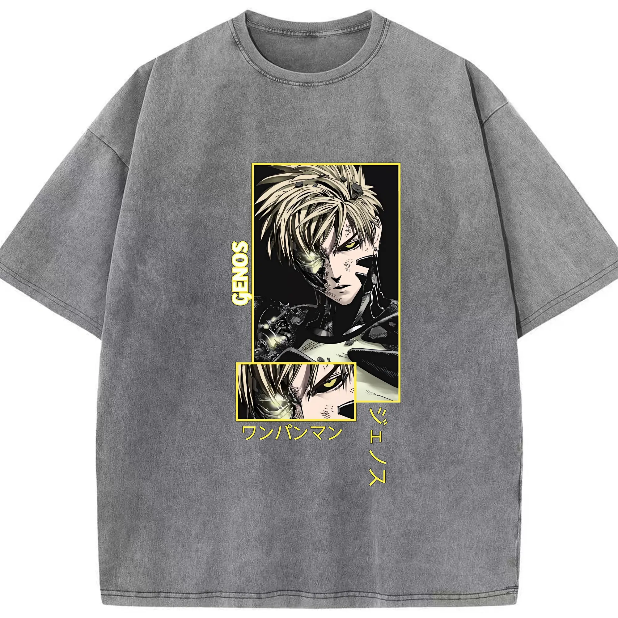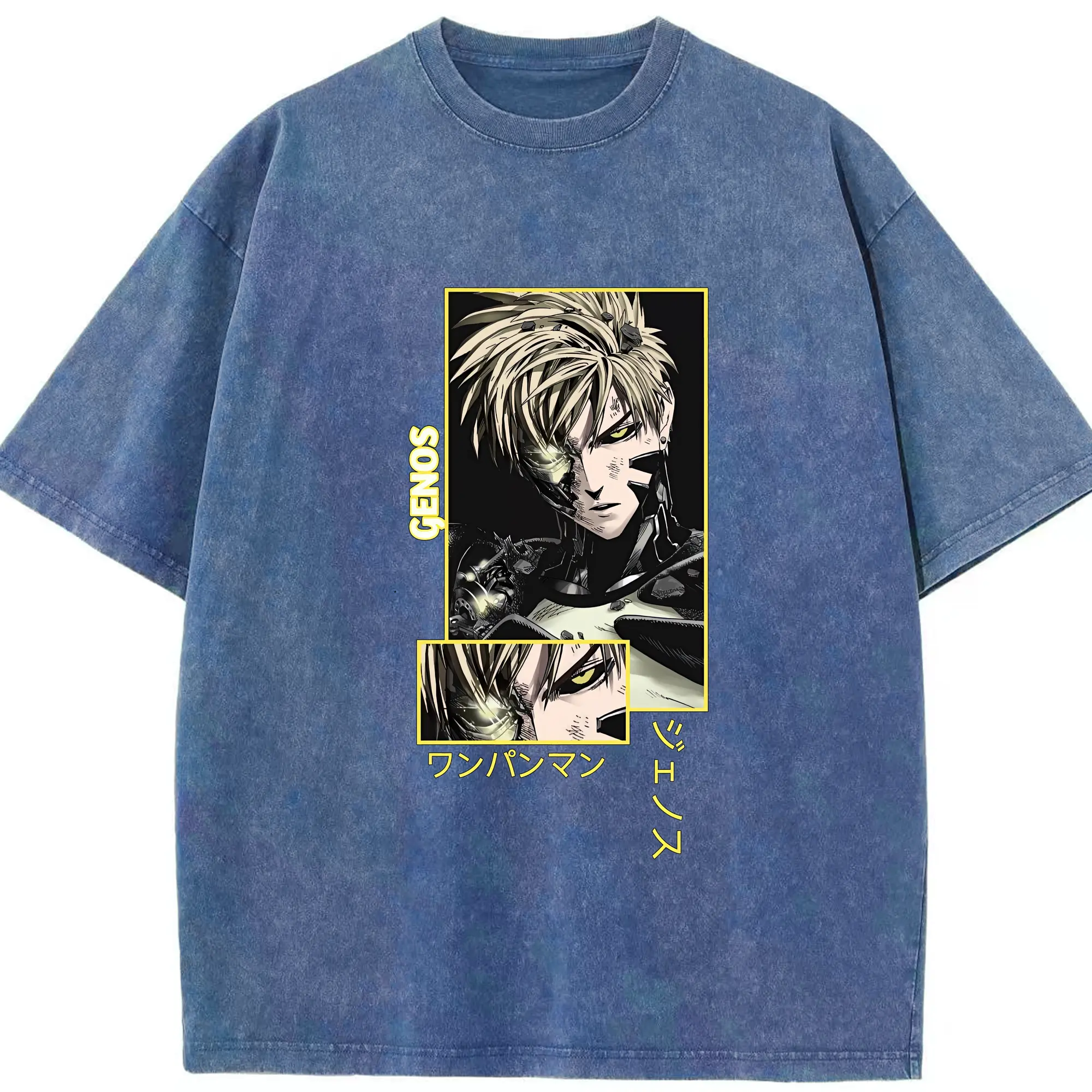 ワンパンマン グッズ ジェノス - 綿100% ヴィンテージ風 半袖Tシャツ ・ 背面プリント ・ 柔らか肌触り ・ 通気性 快適 ・ スポーツ カジュアル 外出用