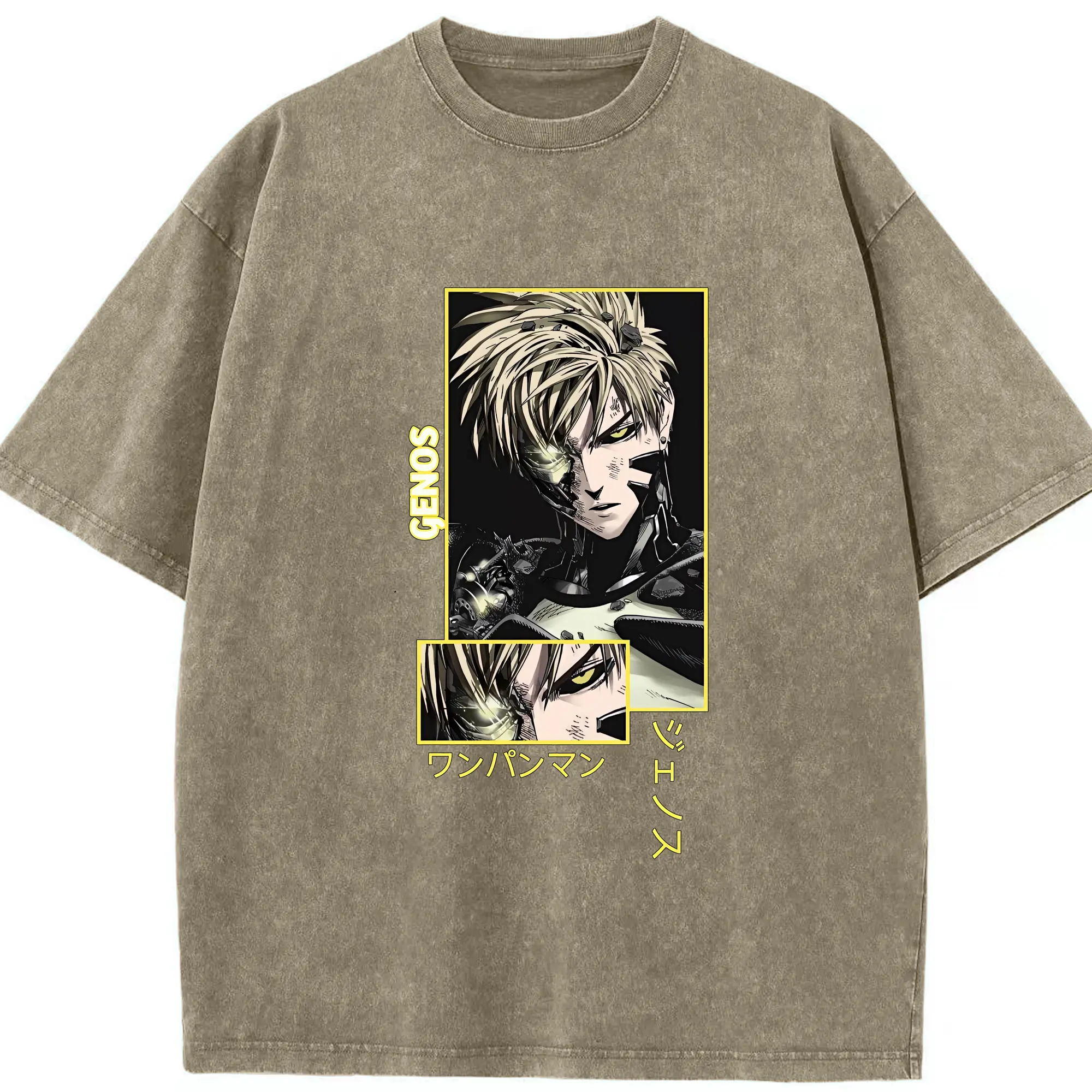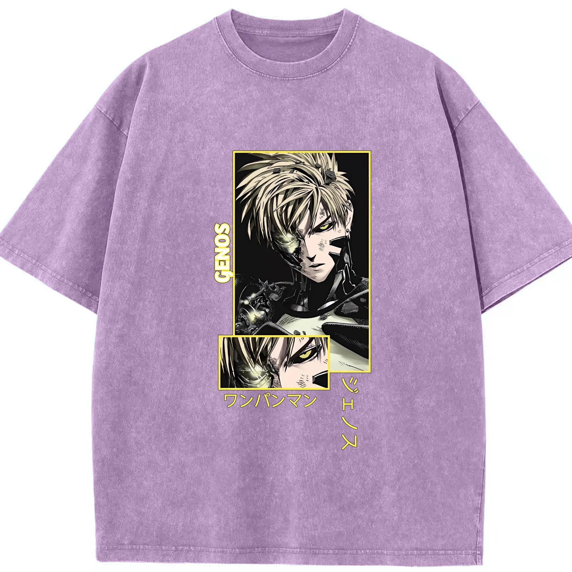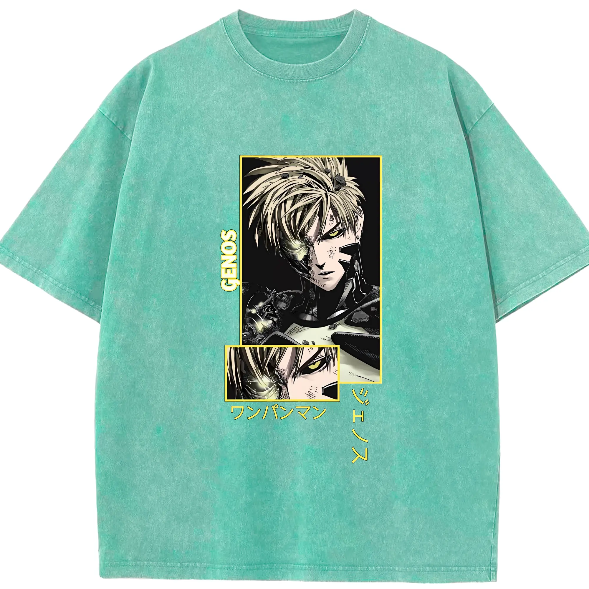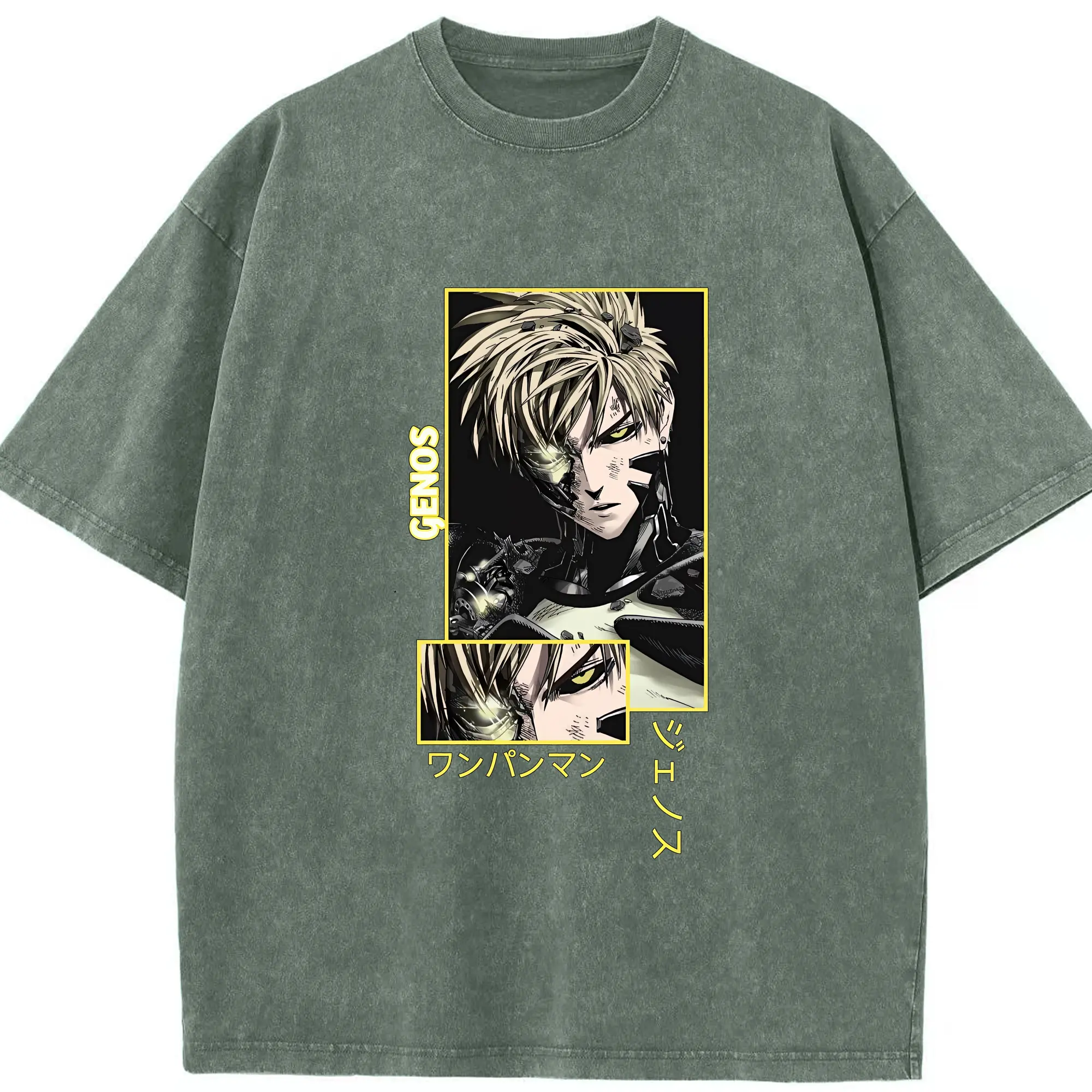 ワンパンマン グッズ ジェノス - 綿100% ヴィンテージ風 半袖Tシャツ ・ 背面プリント ・ 柔らか肌触り ・ 通気性 快適 ・ スポーツ カジュアル 外出用