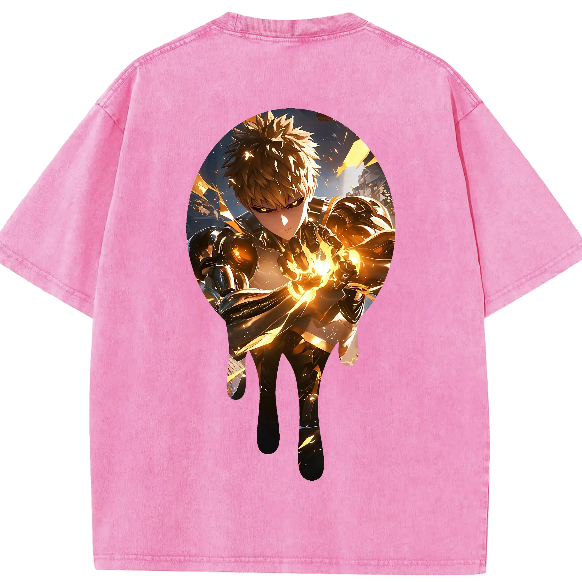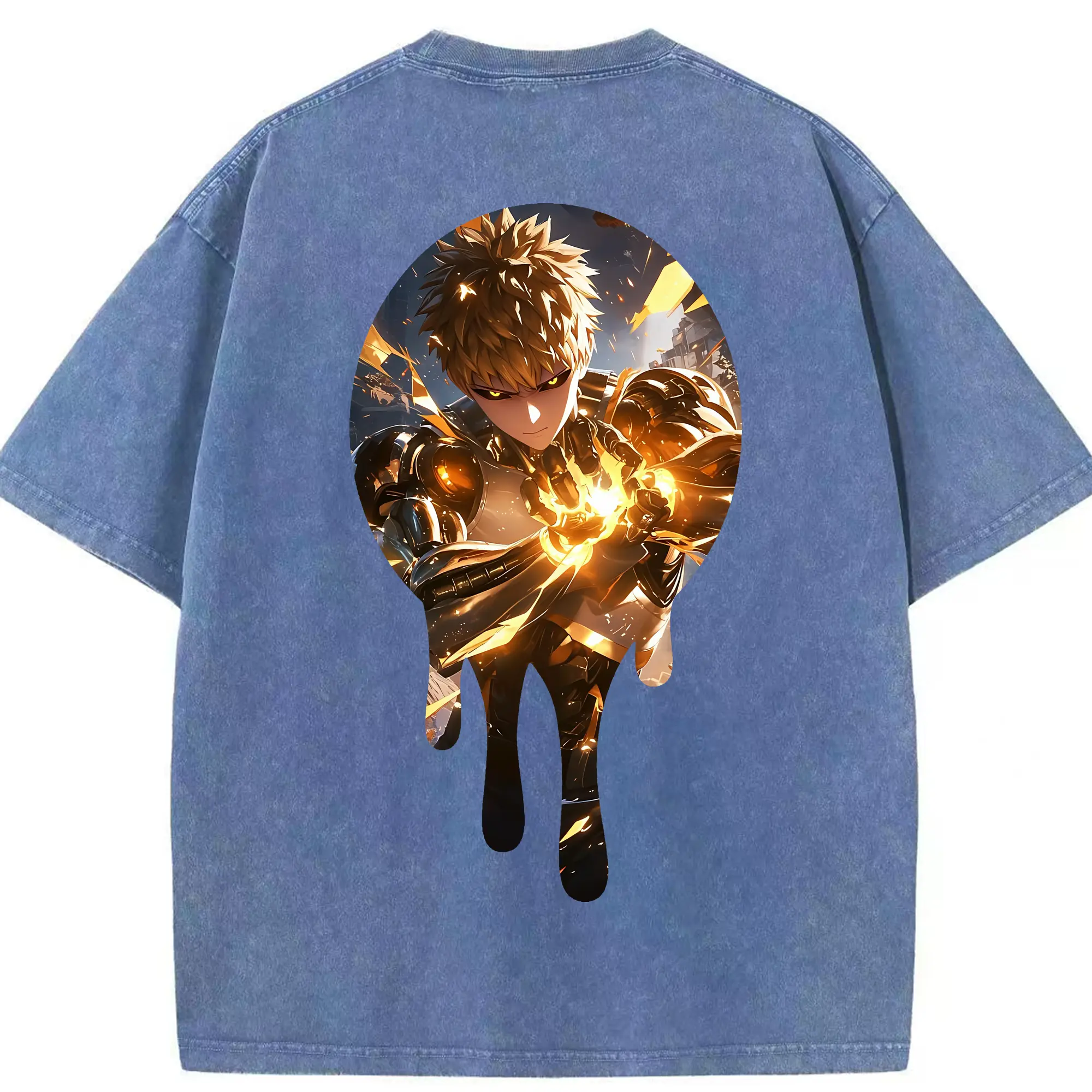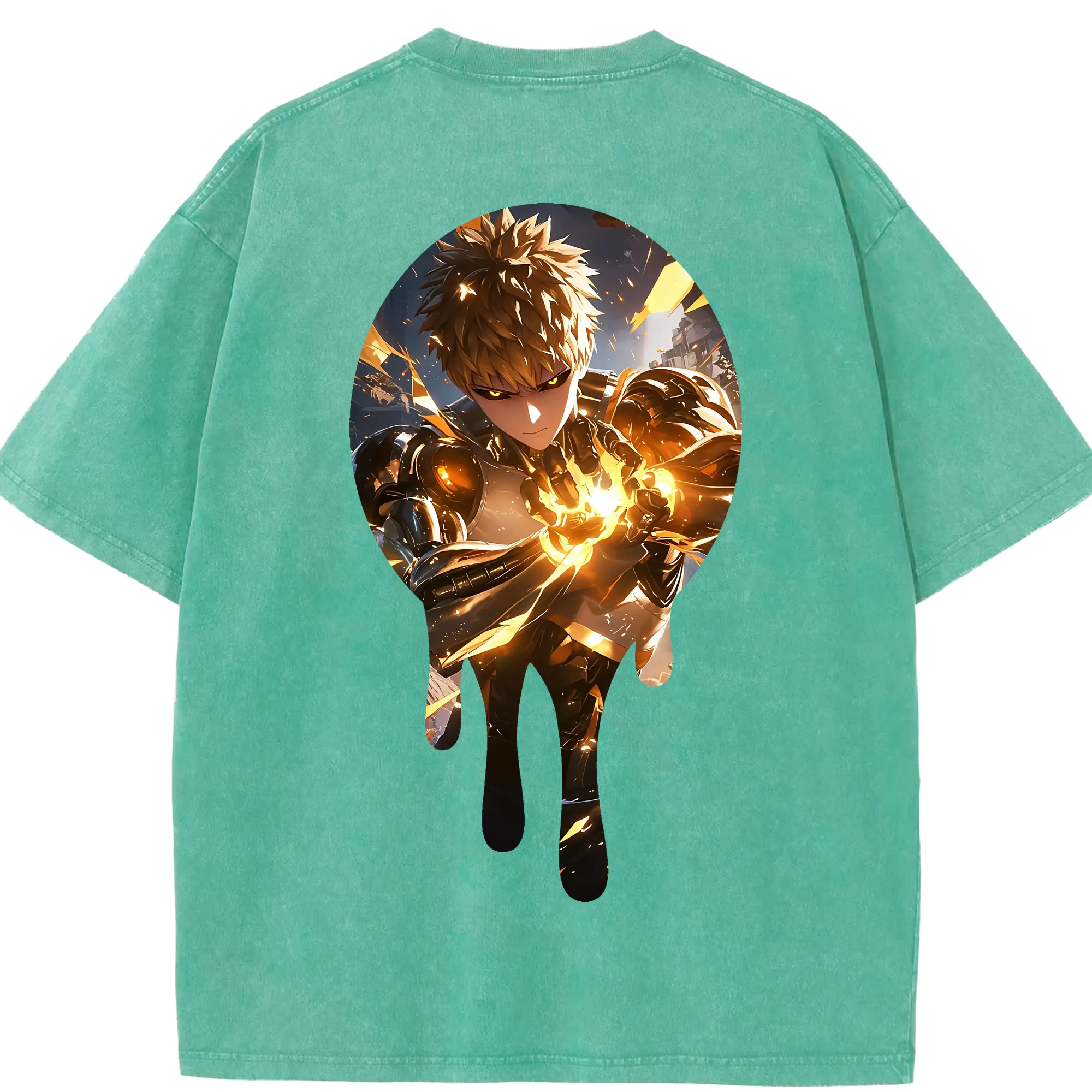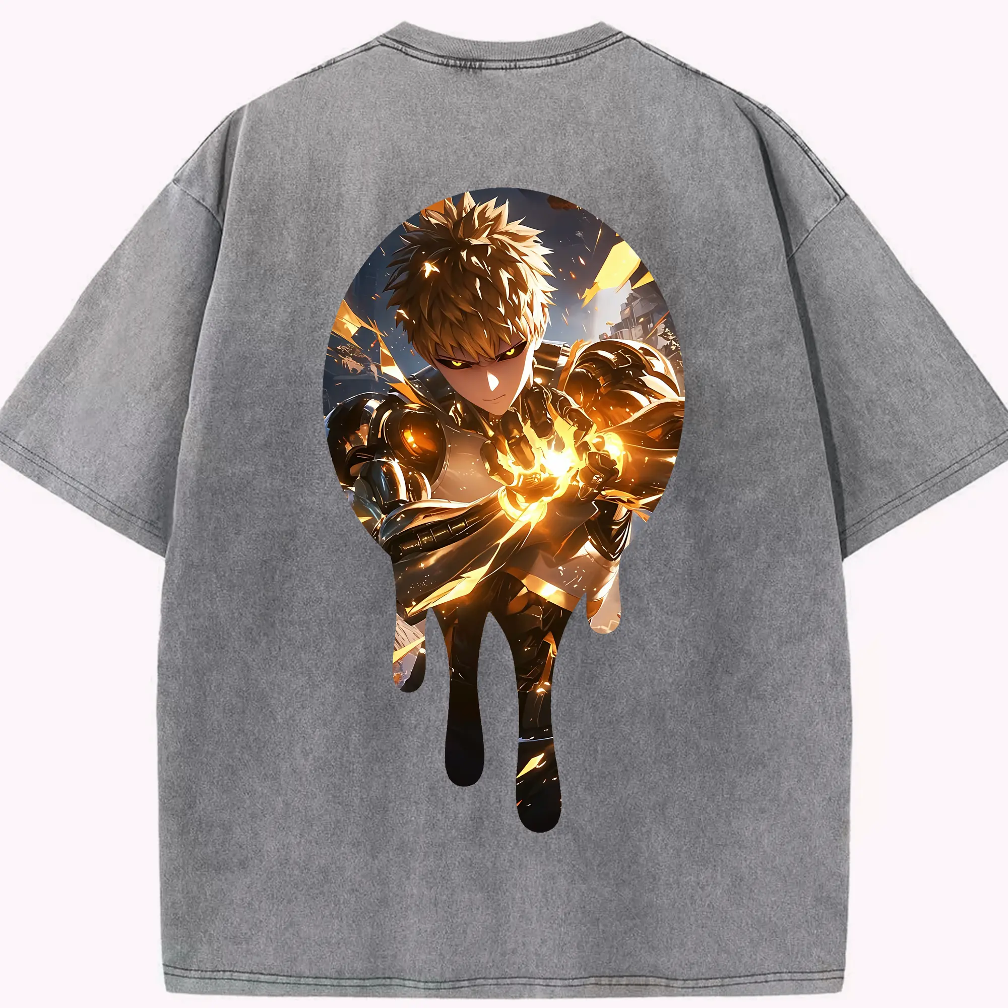 ワンパンマン グッズ ジェノス - 綿100% ヴィンテージ風 半袖Tシャツ ・ フロントプリント ・ 柔らか肌触り ・ 通気性 快適 ・ スポーツ カジュアル 外出用