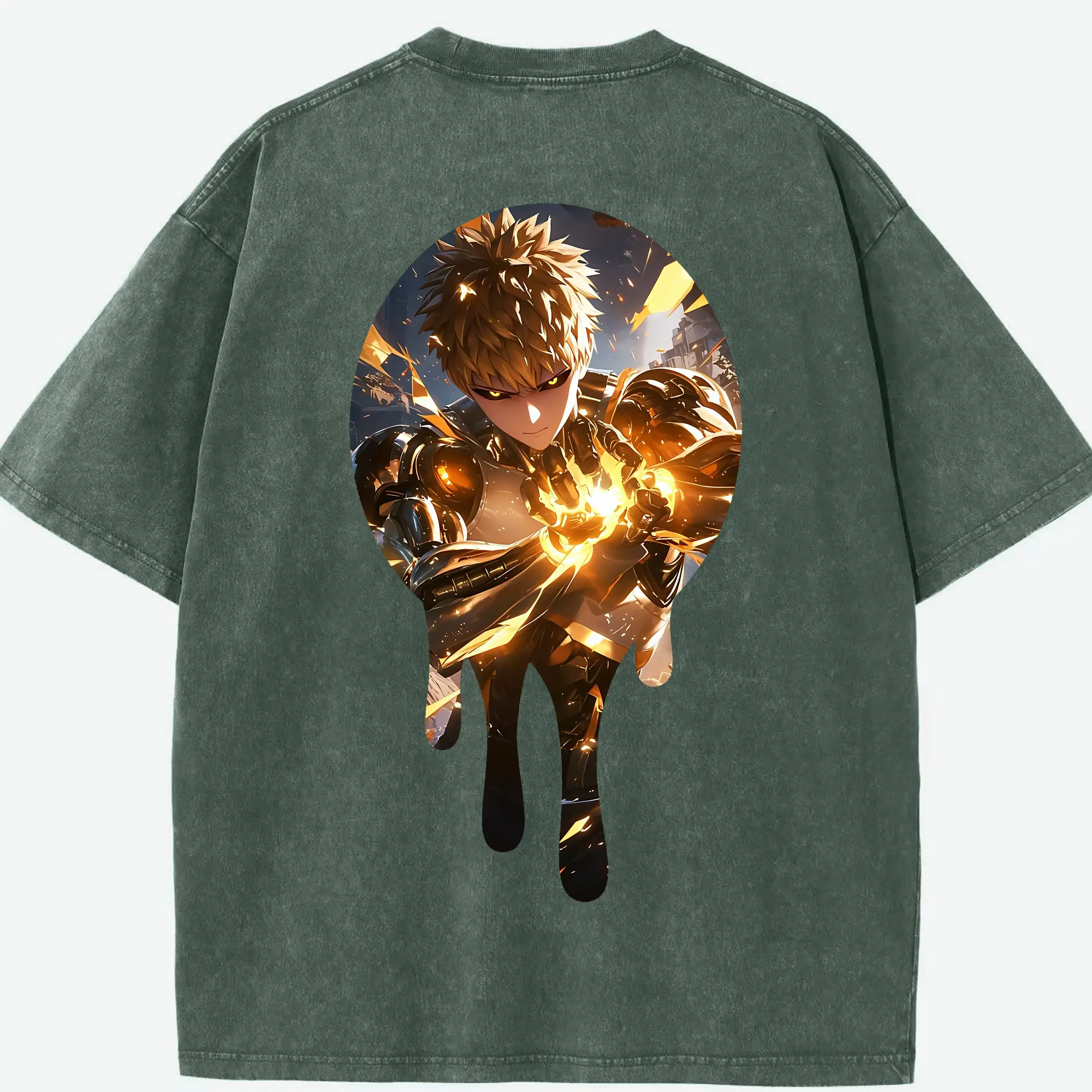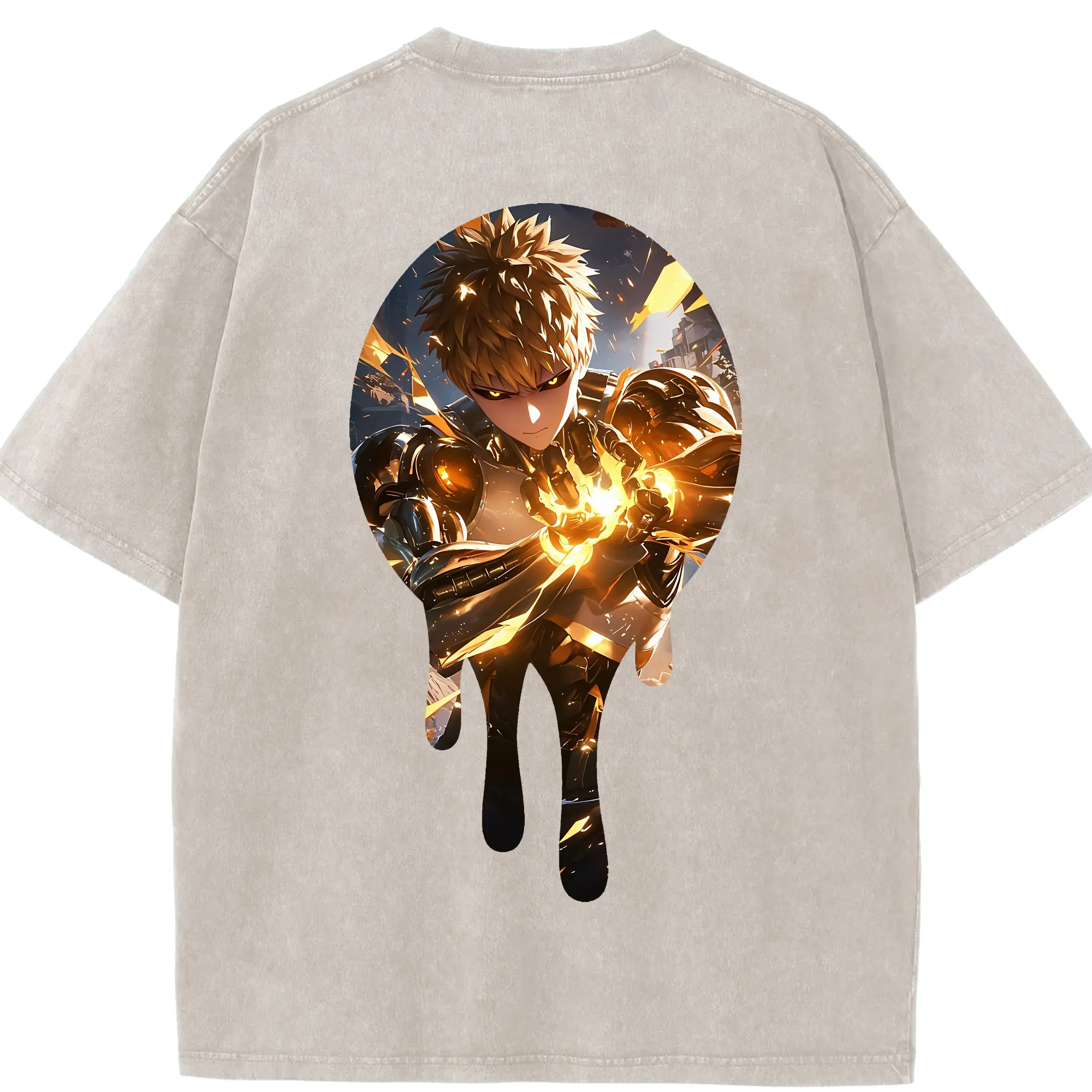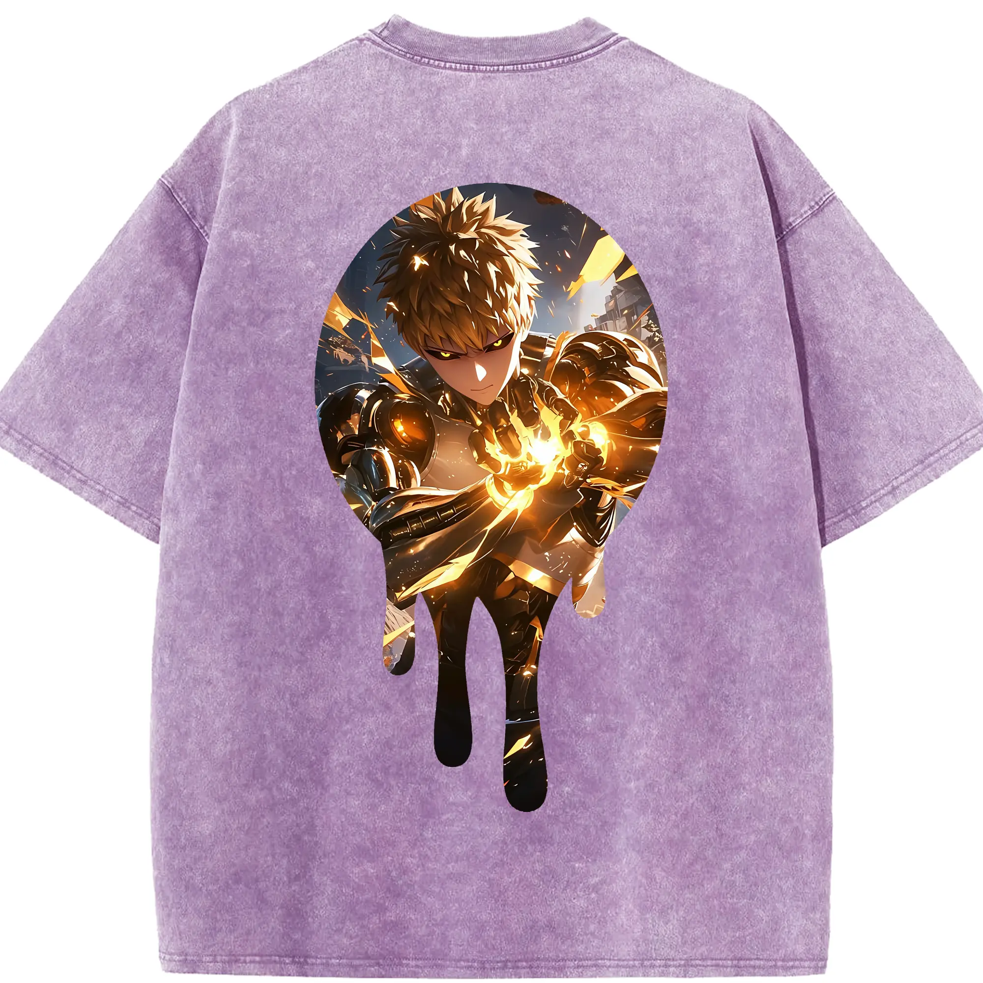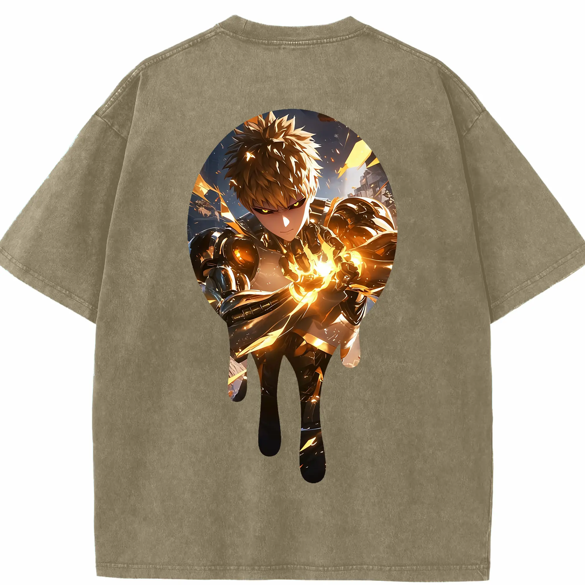 ワンパンマン グッズ ジェノス - 綿100% ヴィンテージ風 半袖Tシャツ ・ フロントプリント ・ 柔らか肌触り ・ 通気性 快適 ・ スポーツ カジュアル 外出用