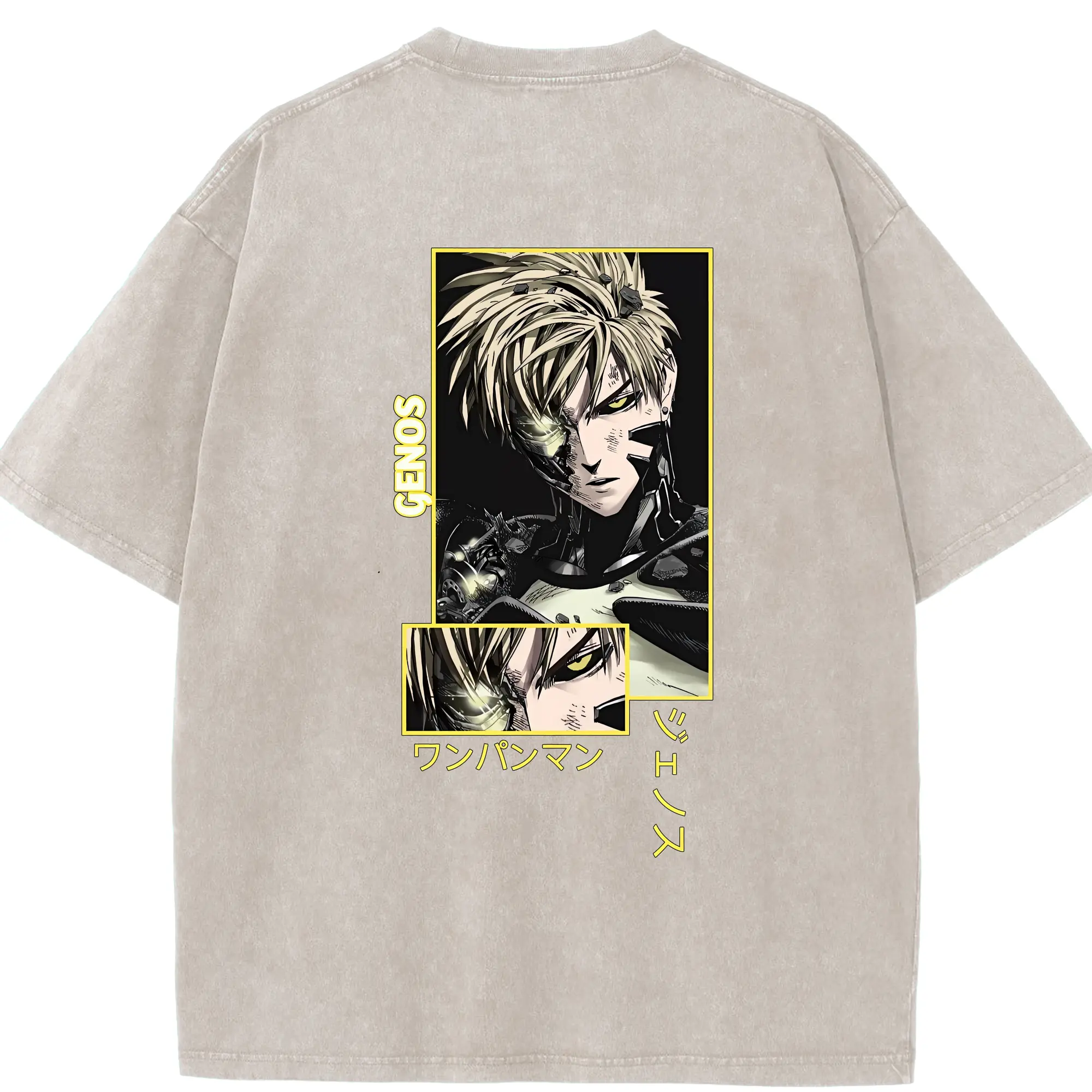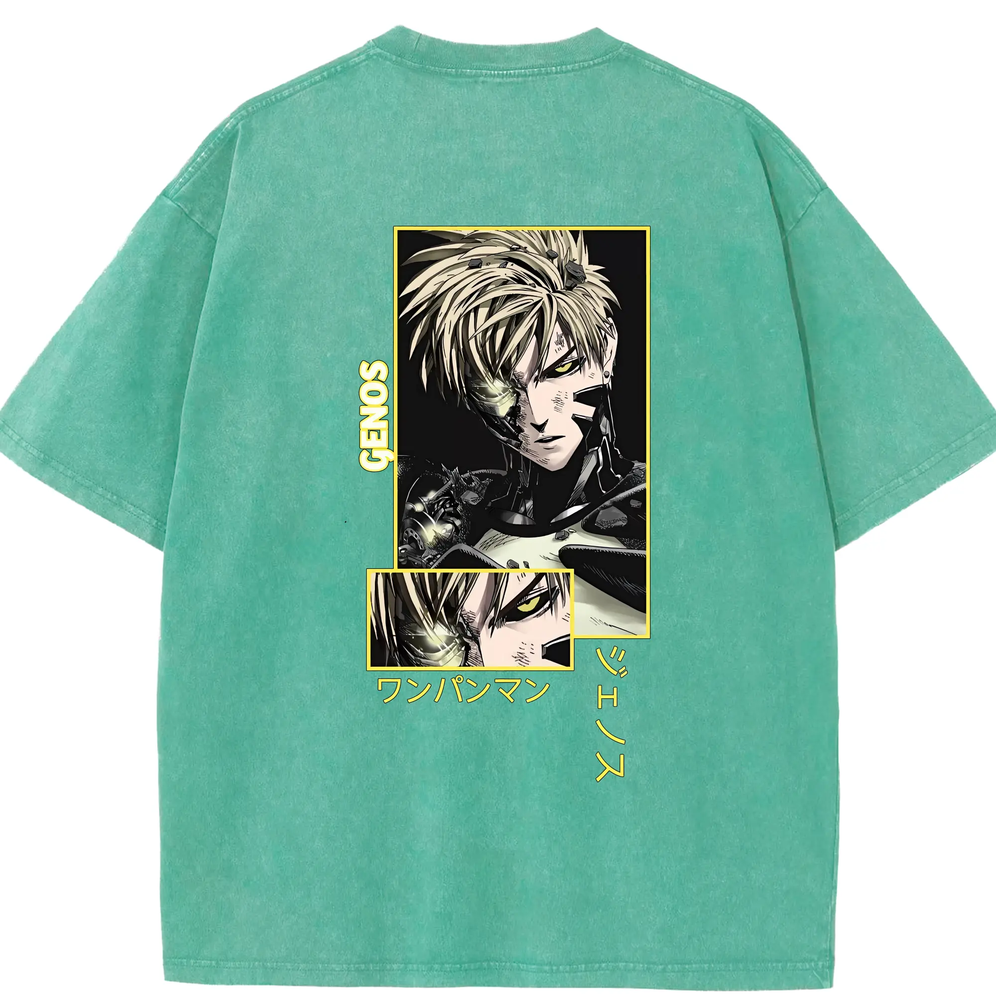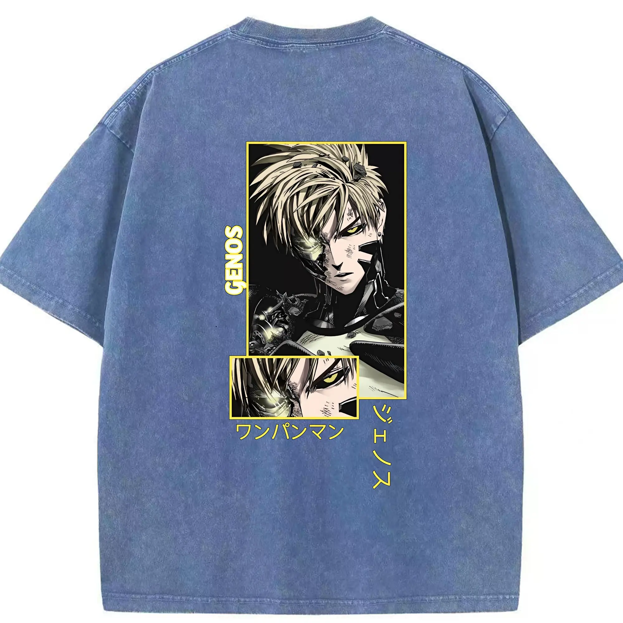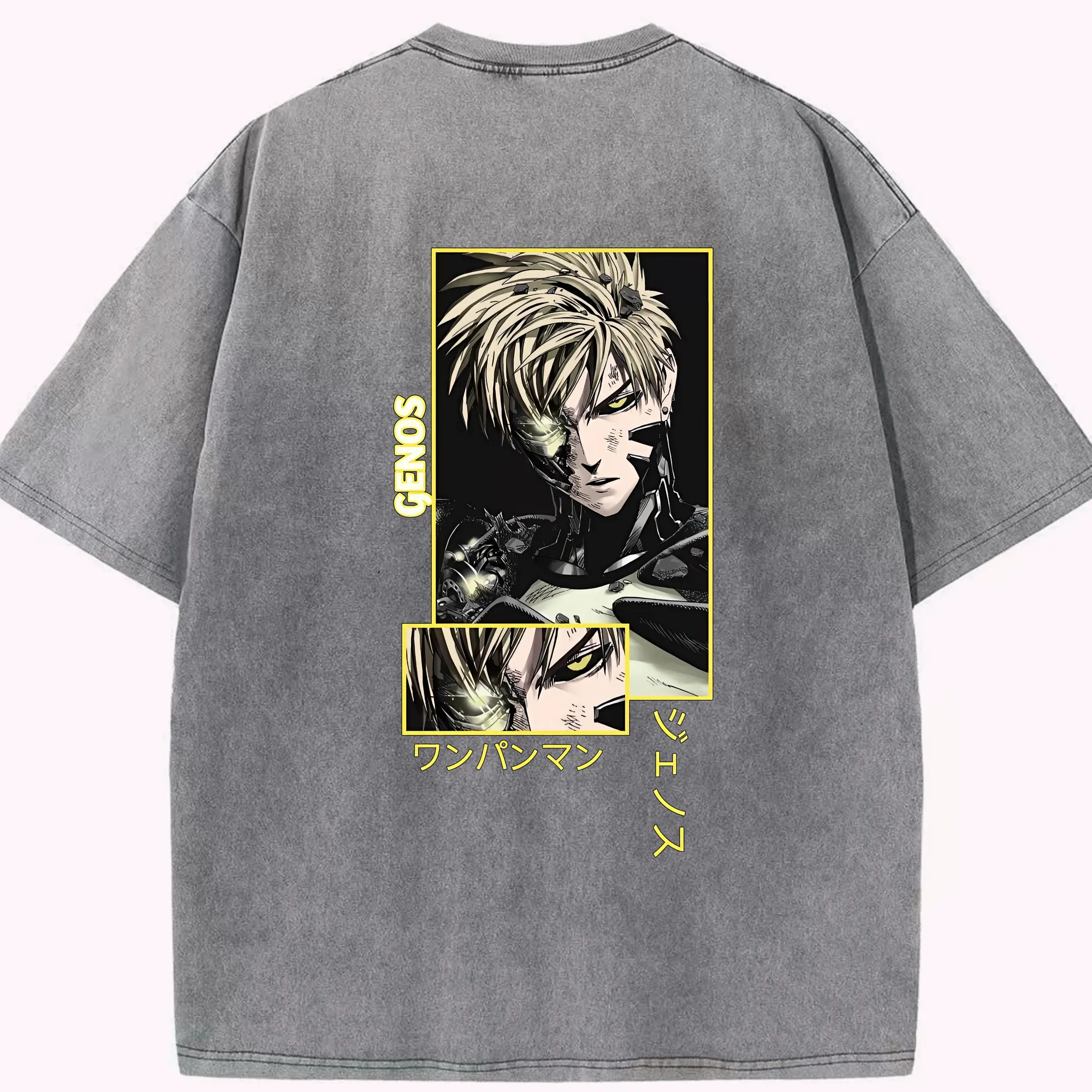ワンパンマン グッズ ジェノス - 綿100% ヴィンテージ風 半袖Tシャツ ・ フロントプリント ・ 柔らか肌触り ・ 通気性 快適 ・ スポーツ カジュアル 外出用