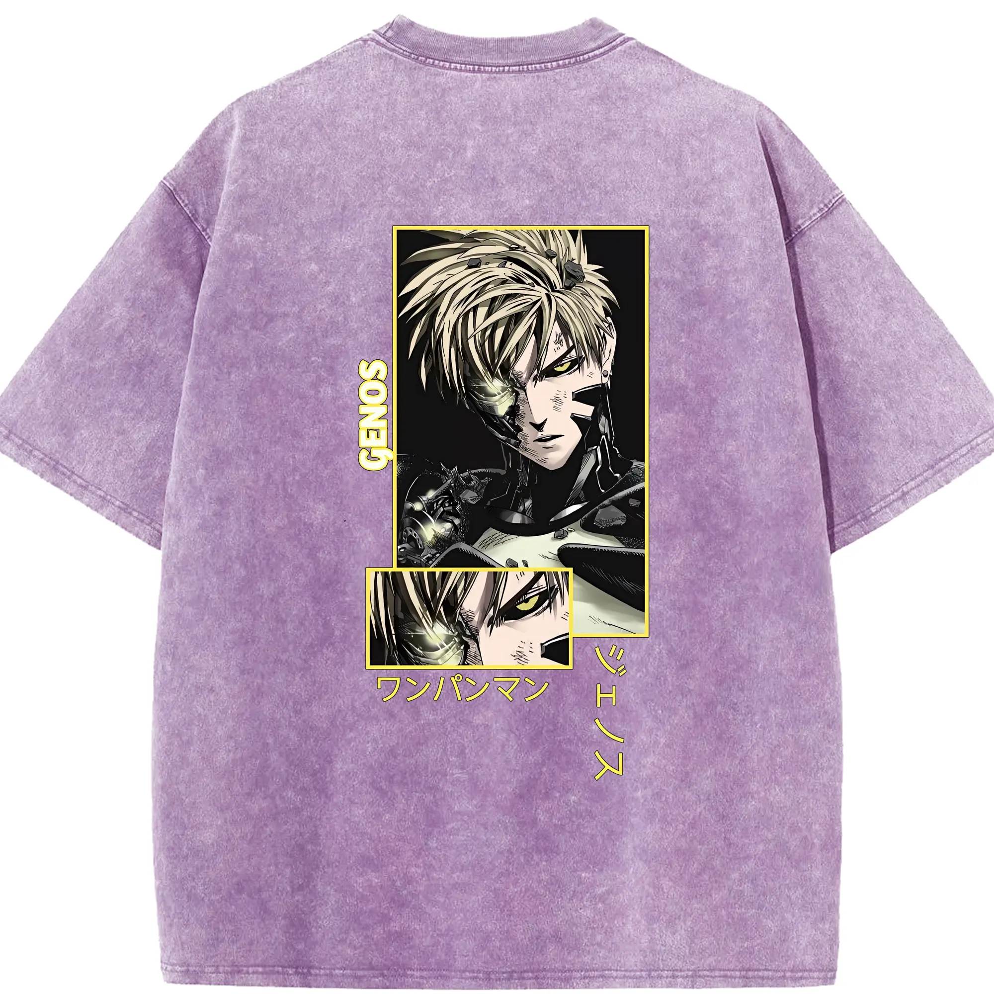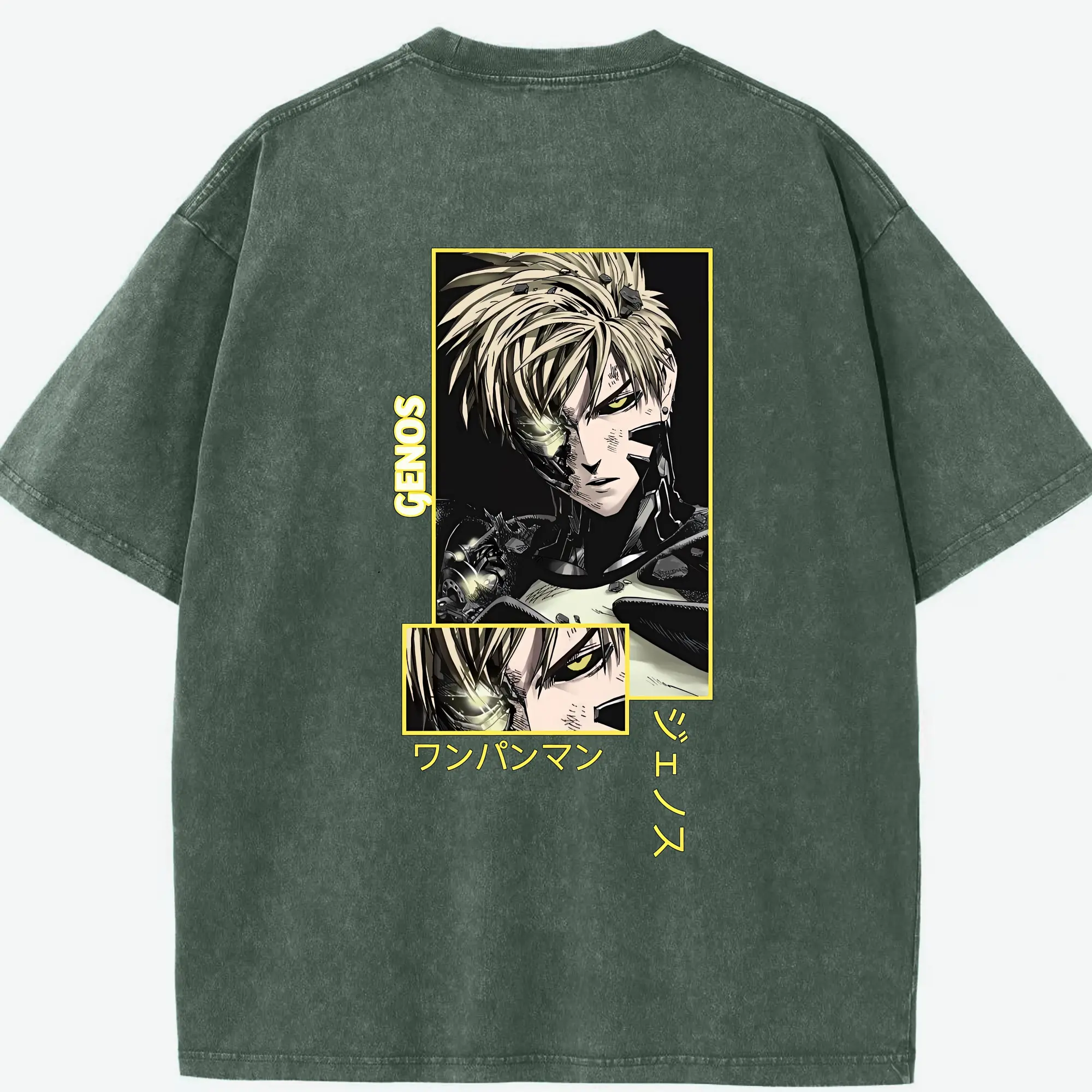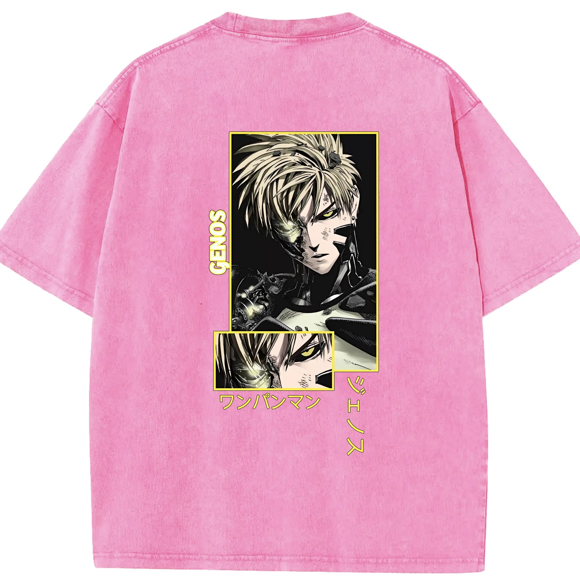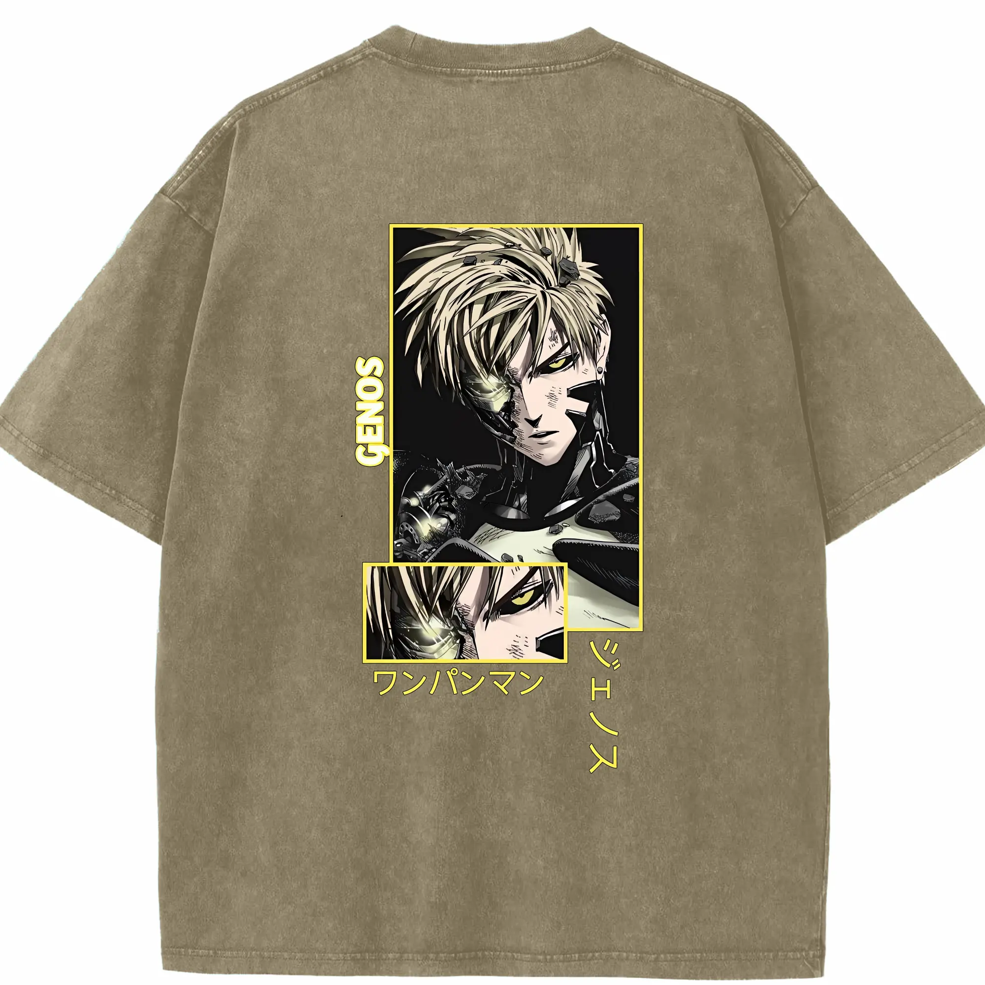 ワンパンマン グッズ ジェノス - 綿100% ヴィンテージ風 半袖Tシャツ ・ フロントプリント ・ 柔らか肌触り ・ 通気性 快適 ・ スポーツ カジュアル 外出用