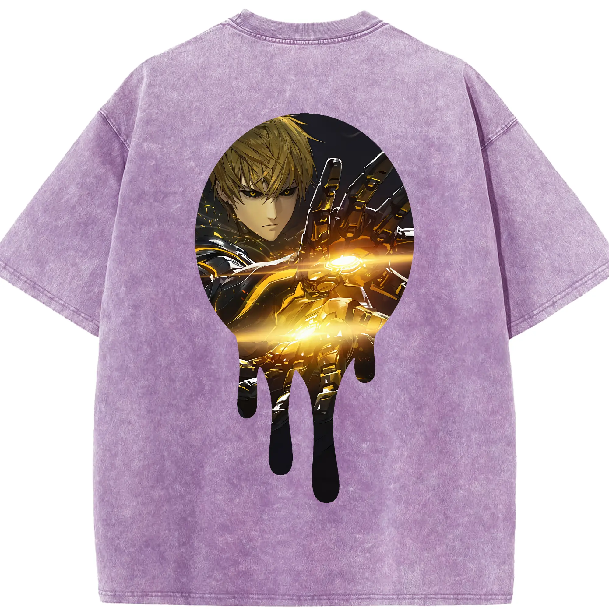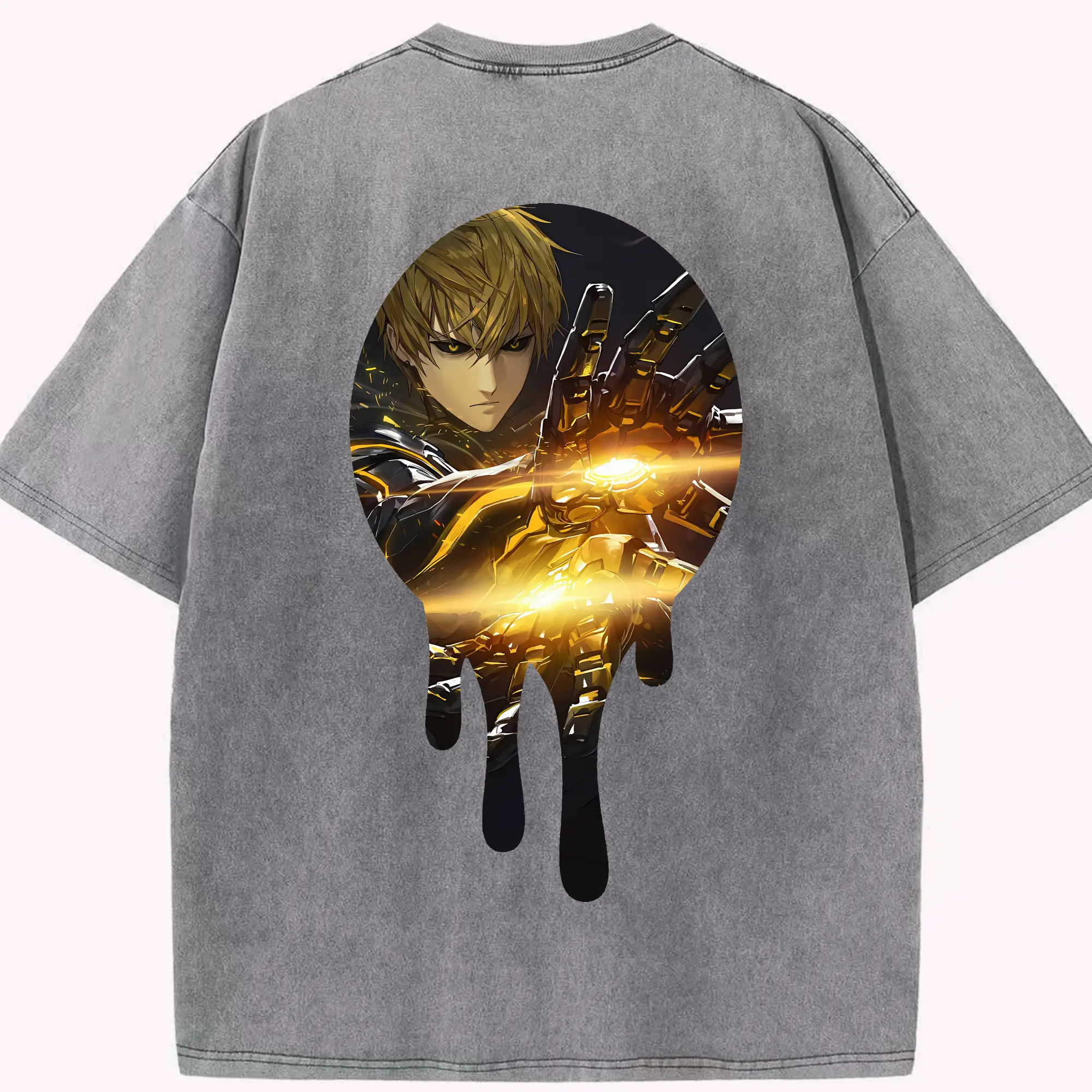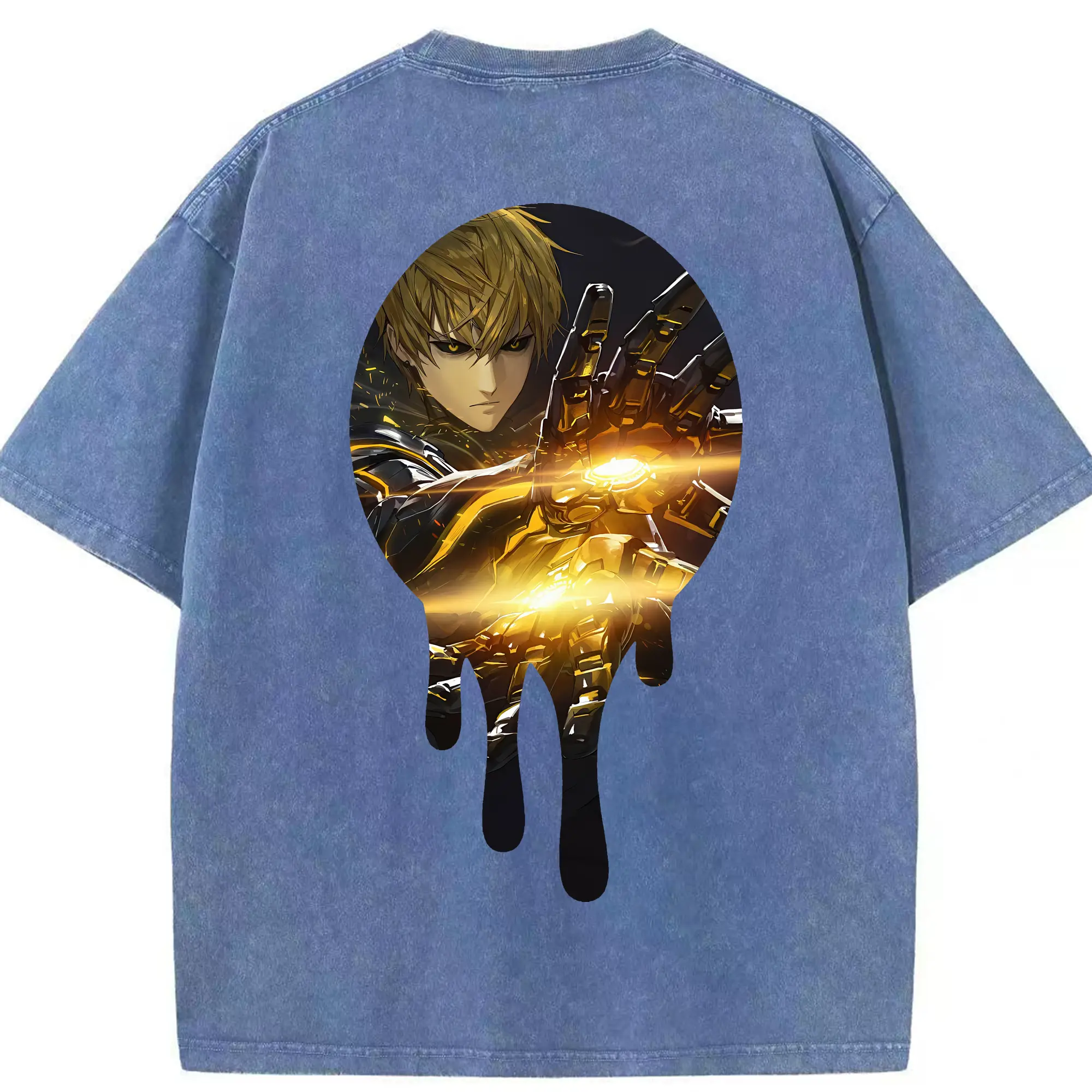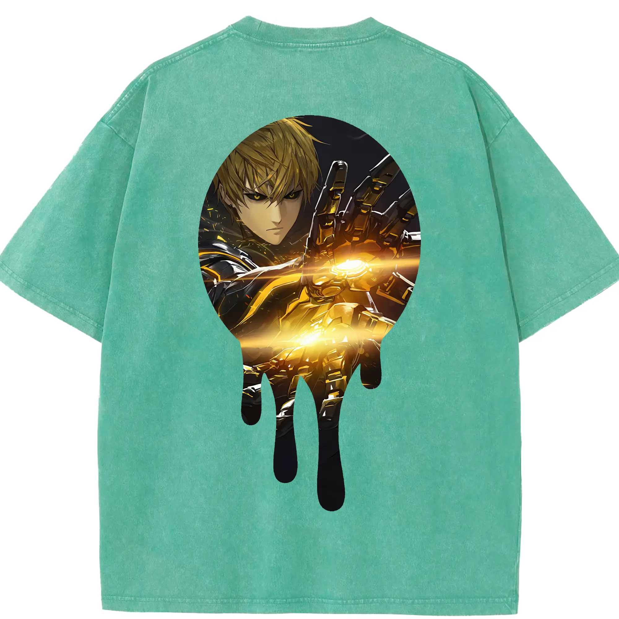 ワンパンマン グッズ ジェノス - 綿100% ヴィンテージ風 半袖Tシャツ ・ フロントプリント ・ 柔らか肌触り ・ 通気性 快適 ・ スポーツ カジュアル 外出用