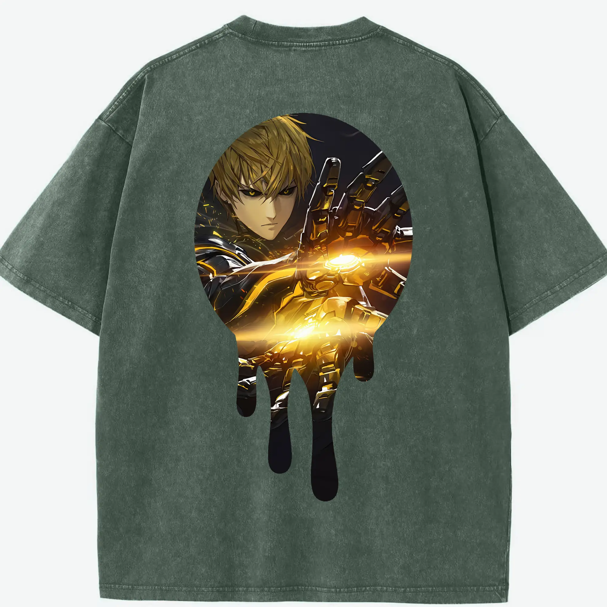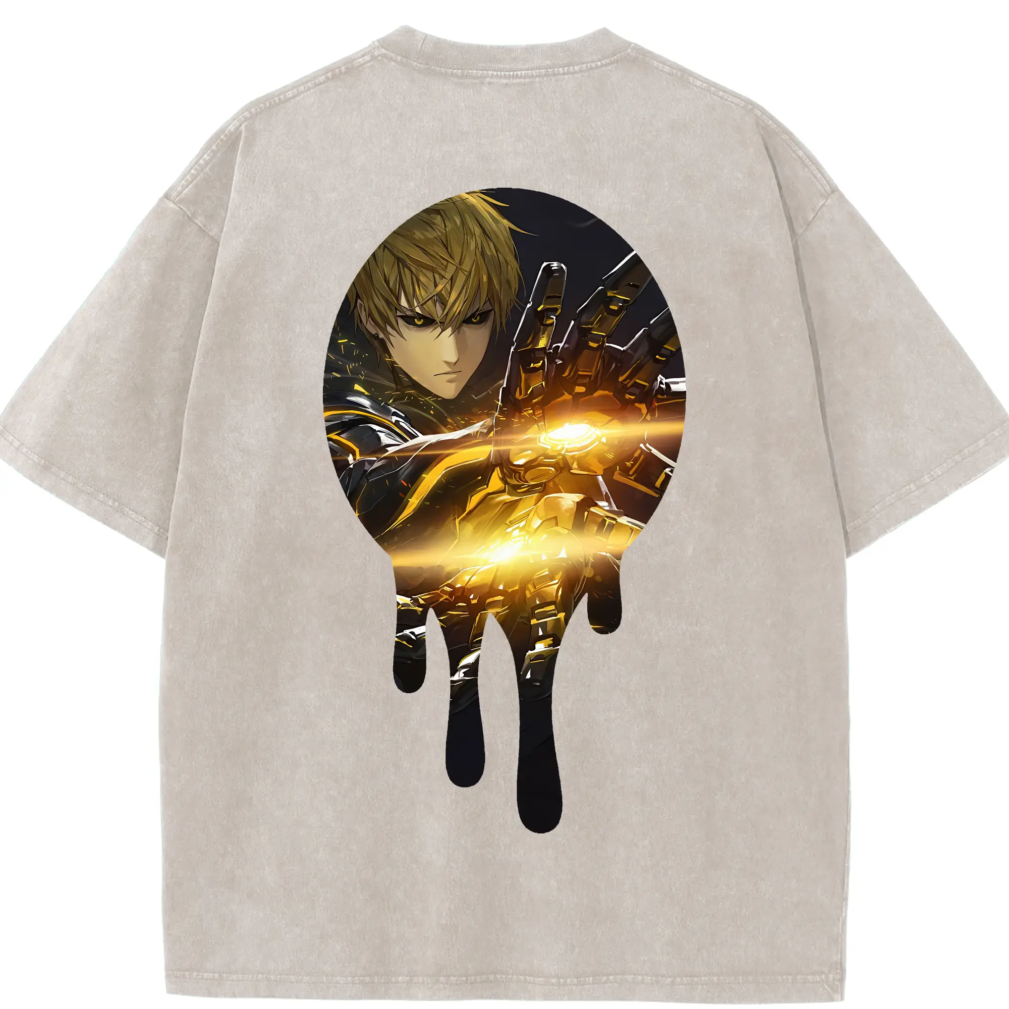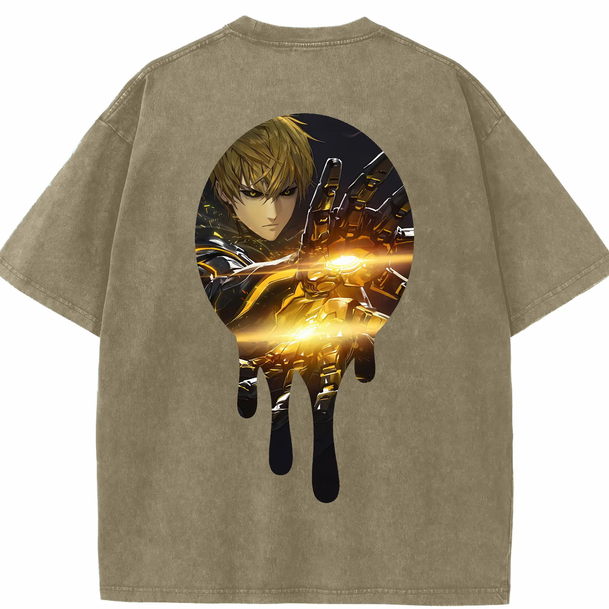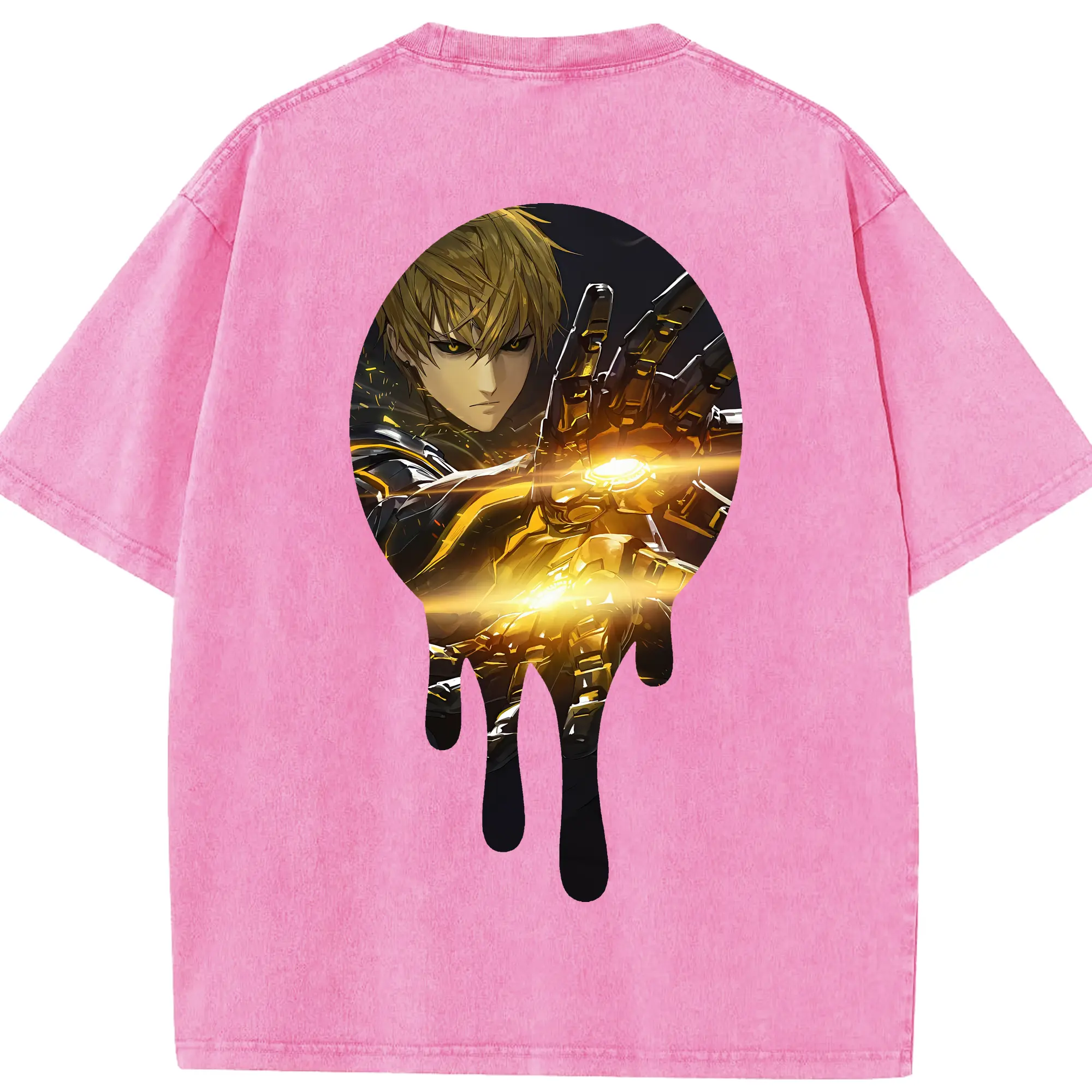 ワンパンマン グッズ ジェノス - 綿100% ヴィンテージ風 半袖Tシャツ ・ フロントプリント ・ 柔らか肌触り ・ 通気性 快適 ・ スポーツ カジュアル 外出用