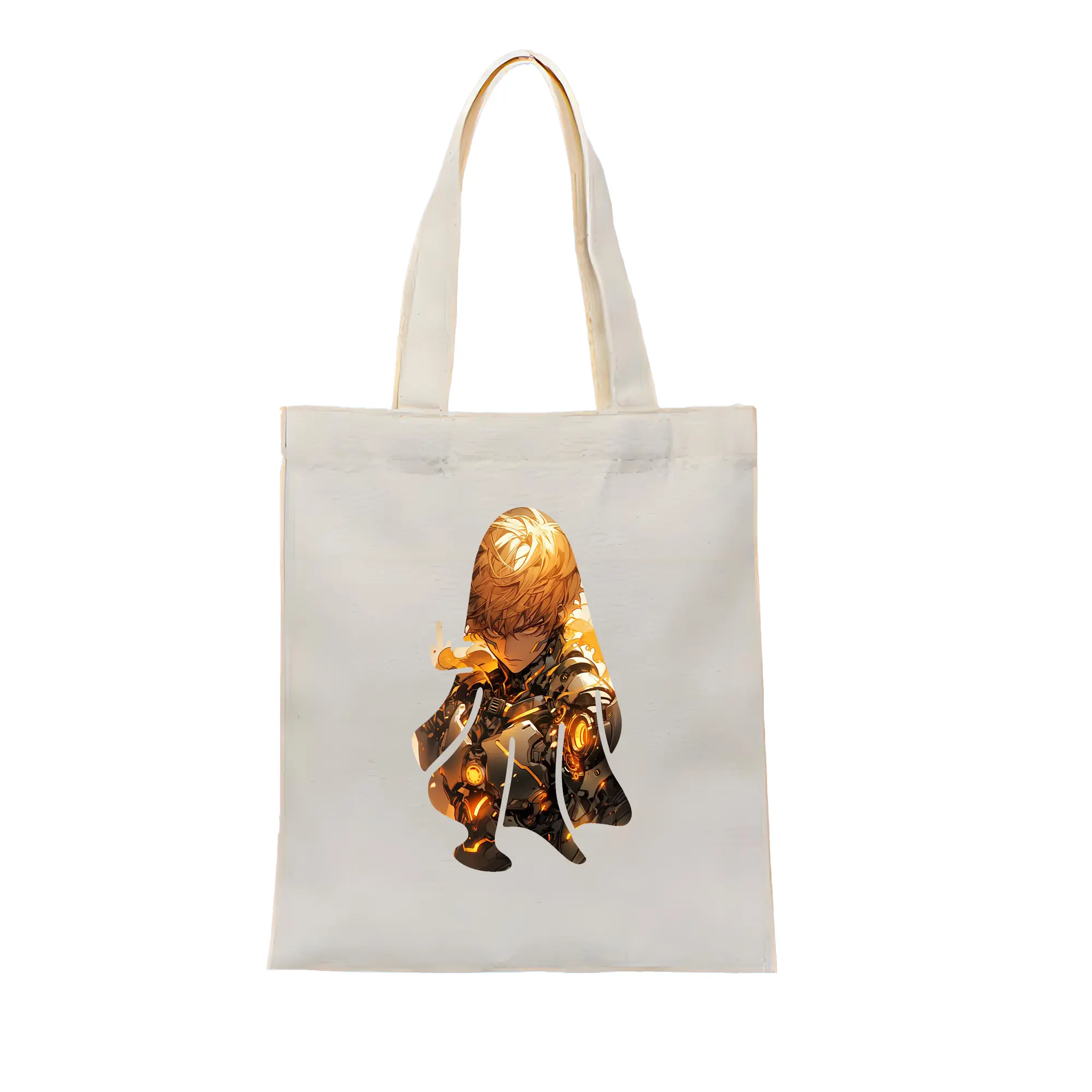 ワンパンマン グッズ ジェノス - 縦型キャンバス手提げバッグ(トートバッグ) ・ キャンバス素材 ・ ショッピング用 ・ 軽量 丈夫 お手入れ簡単